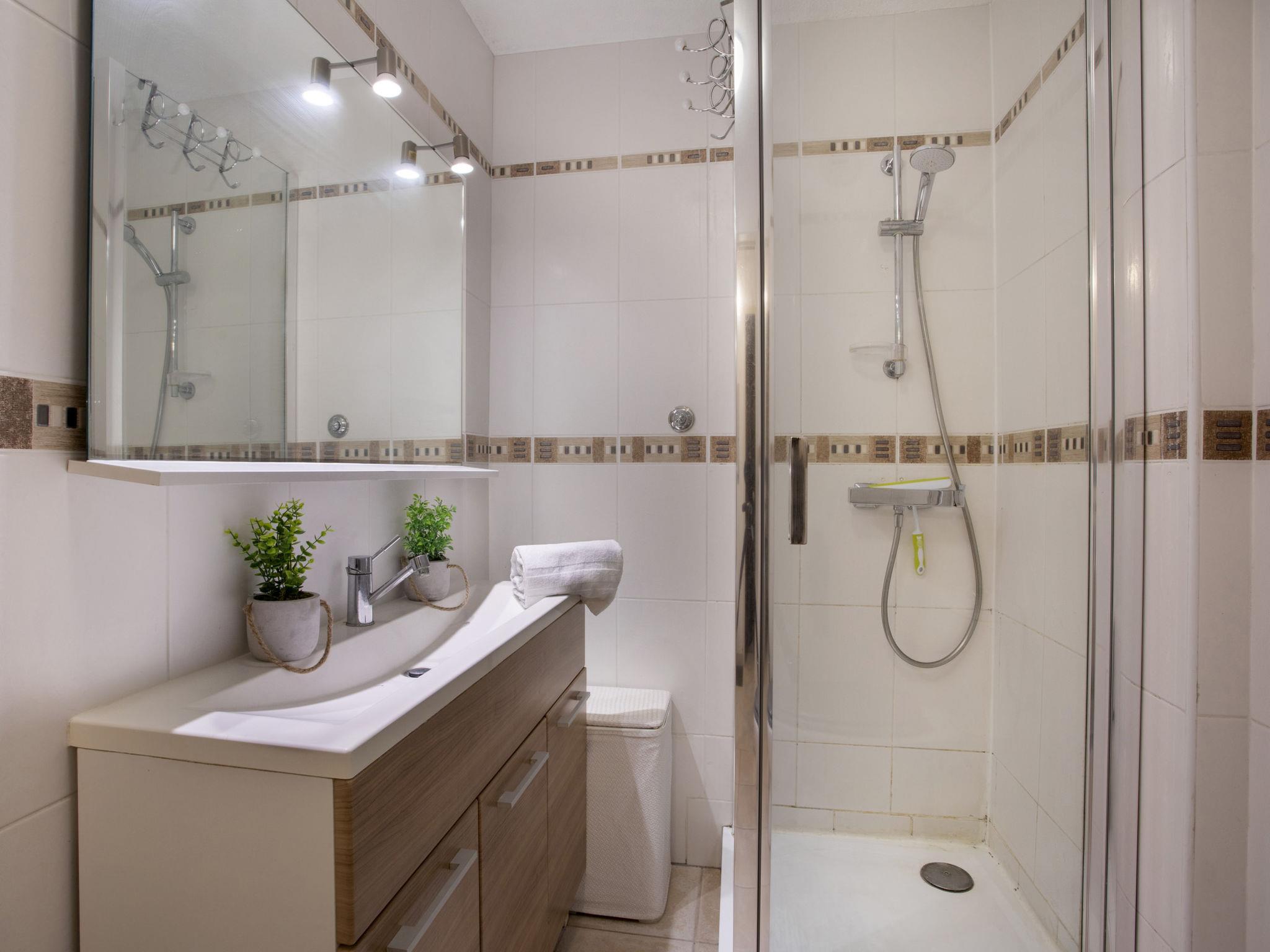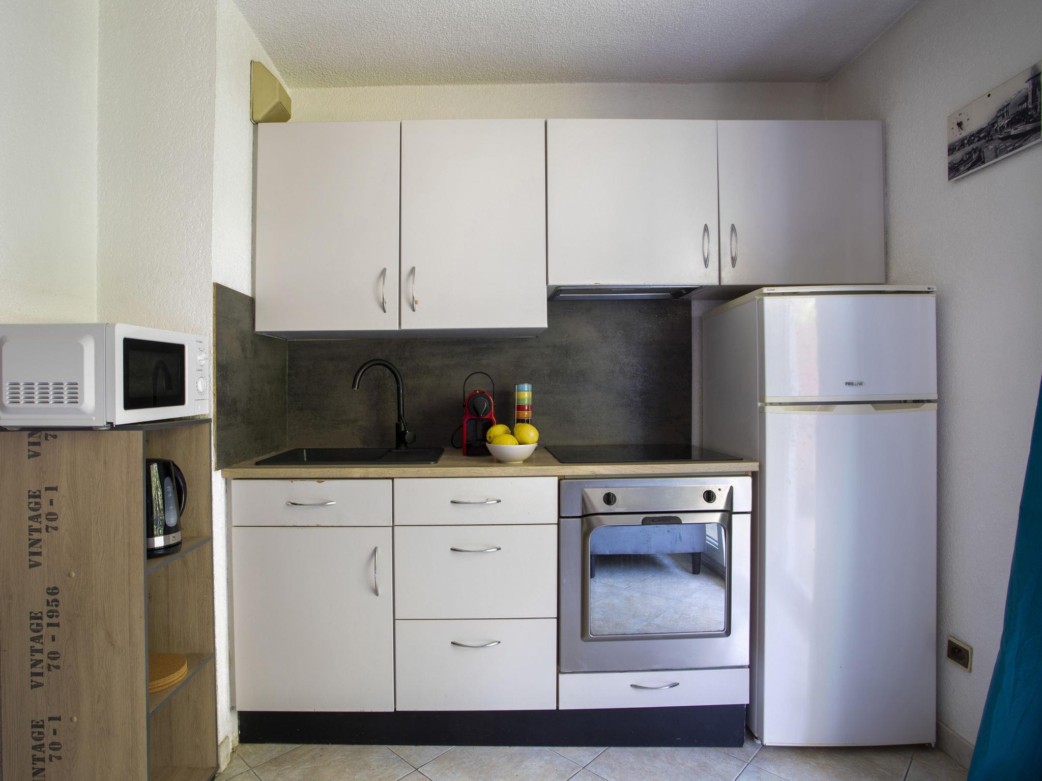 1-room studio 26 m2 on 1st floor. Simple furnishings: living/dining room with 1 double fold-away bed (1 x 140 cm, length 190 cm), TV (flat screen). Exit to the balcony. Kitchenette (oven, 3 induction hot plates, toaster, kettle, microwave, electric coffee machine). Exit to the balcony. Shower/WC. Heating, air-conditioning. Balcony 8 m2. Balcony furniture. View of the garden. Facilities: washing machine, iron, hair dryer. Internet (WiFi, free). Please note: non-smoking house. Maximum 1 pet/ dog allowed. Smoke alarm. Offer by a private individual according to Art. 155, IV of CGI. 06027038570HT