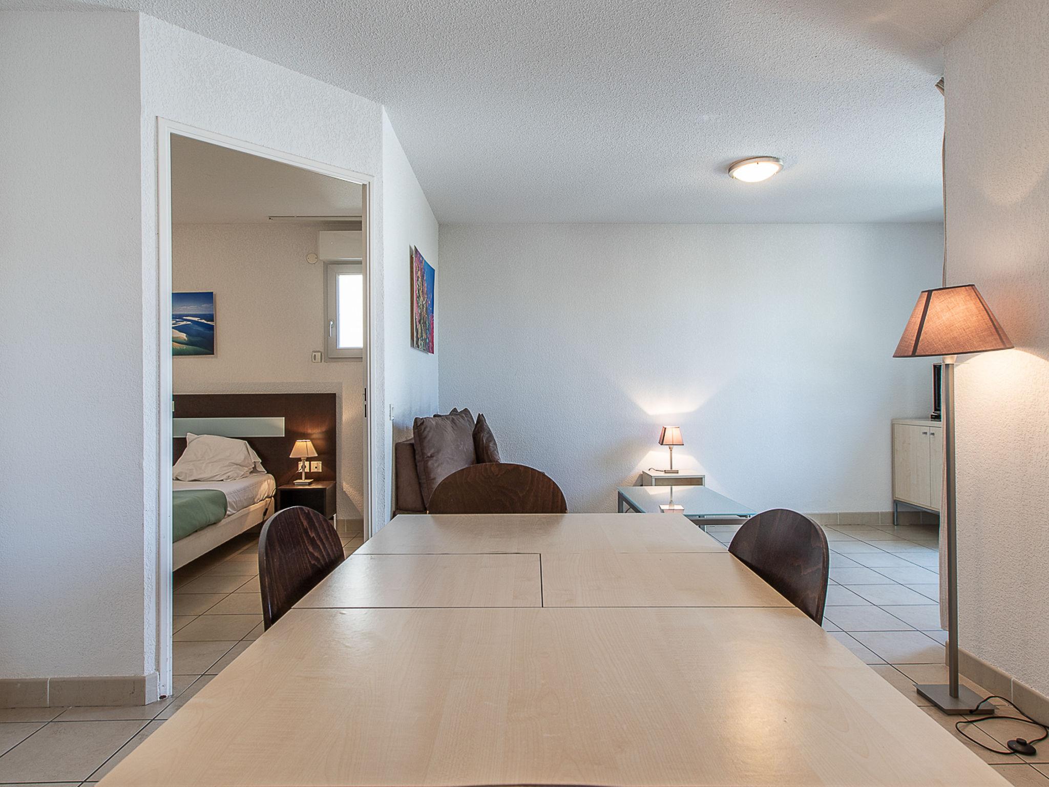 "Le Crystal", 2-room apartment 32 m2. Bright, modern furnishings: living/sleeping room with 1 sofabed, 1 pull-out bed, dining table and TV. 1 room with 2 sleeping facilities. Open kitchen (dishwasher, 4 ceramic glass hob hotplates, kettle, electric coffee machine, combination microwave). Bath/WC. Heating, air-conditioning. Balcony. Balcony furniture. Facilities: iron. Internet (WiFi, free). Please note: maximum 1 small pet/ dog allowed. Smoke alarm, fire extinguisher.