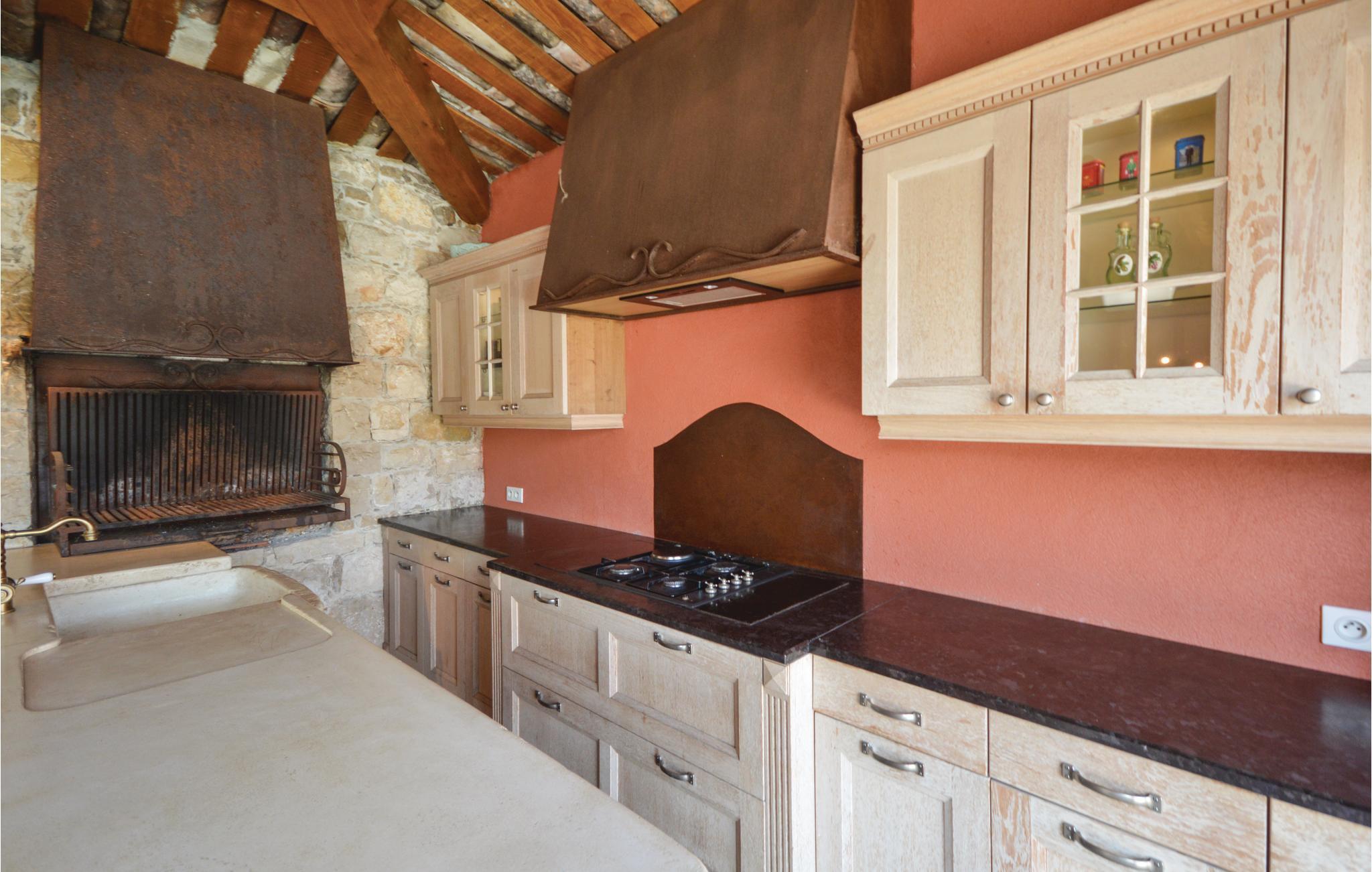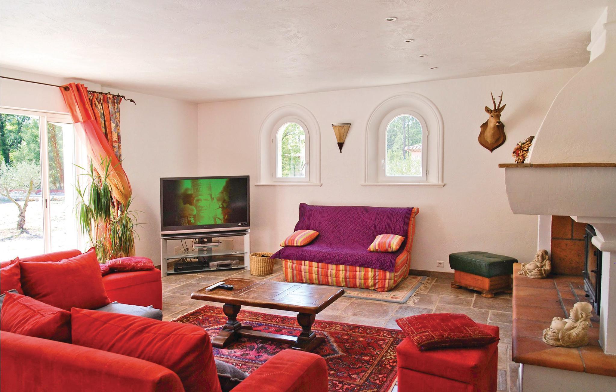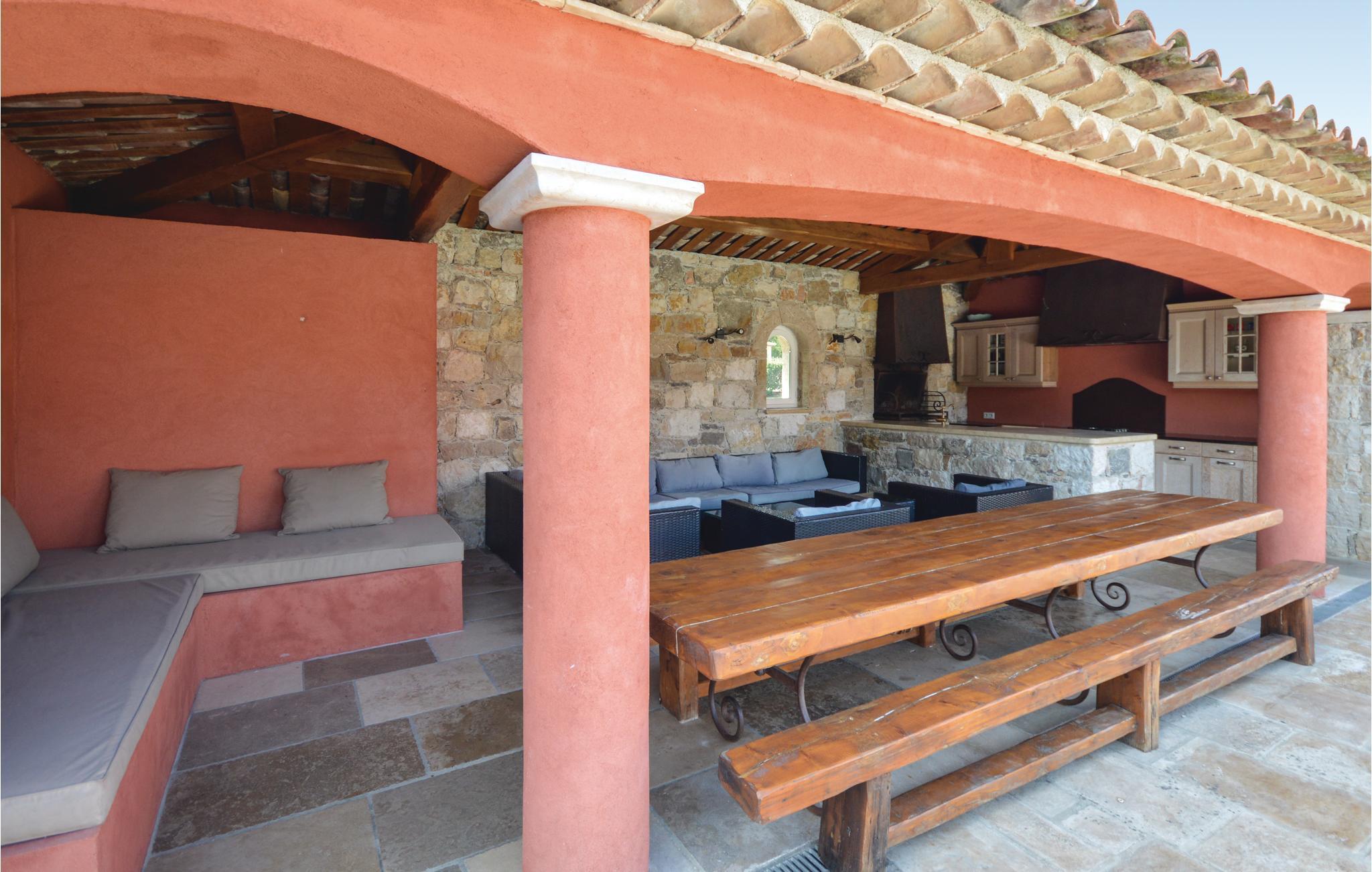 Denne middelhavsvilla er holdt i en varm rød farve. Den har mange buer, der understreger den originale arkitektur, og åbner sine døre mod en stor grund uden for en charmerende landsby. Her er en elektrisk port der vogter grunden mod uønskede gæster. Den 80 m² store stue med imponerende kamin er kombineret med et smart køkken. Herfra er der udgang til en delvist overdækket terrasse, som er bygget som en buegang, og en meget stor og komplet indhegnet pool. Her har I skønne omgivelser til en vellykket ferie. Callian ligger kun få kilometer fra Fayence og ikke langt fra Cannes med sine mange filmstjerner, skønne strande, eksklusive butikker og restauranter hvor selv de mest kræsen, kan få lige det, de ønsker sig på tallerkenen.