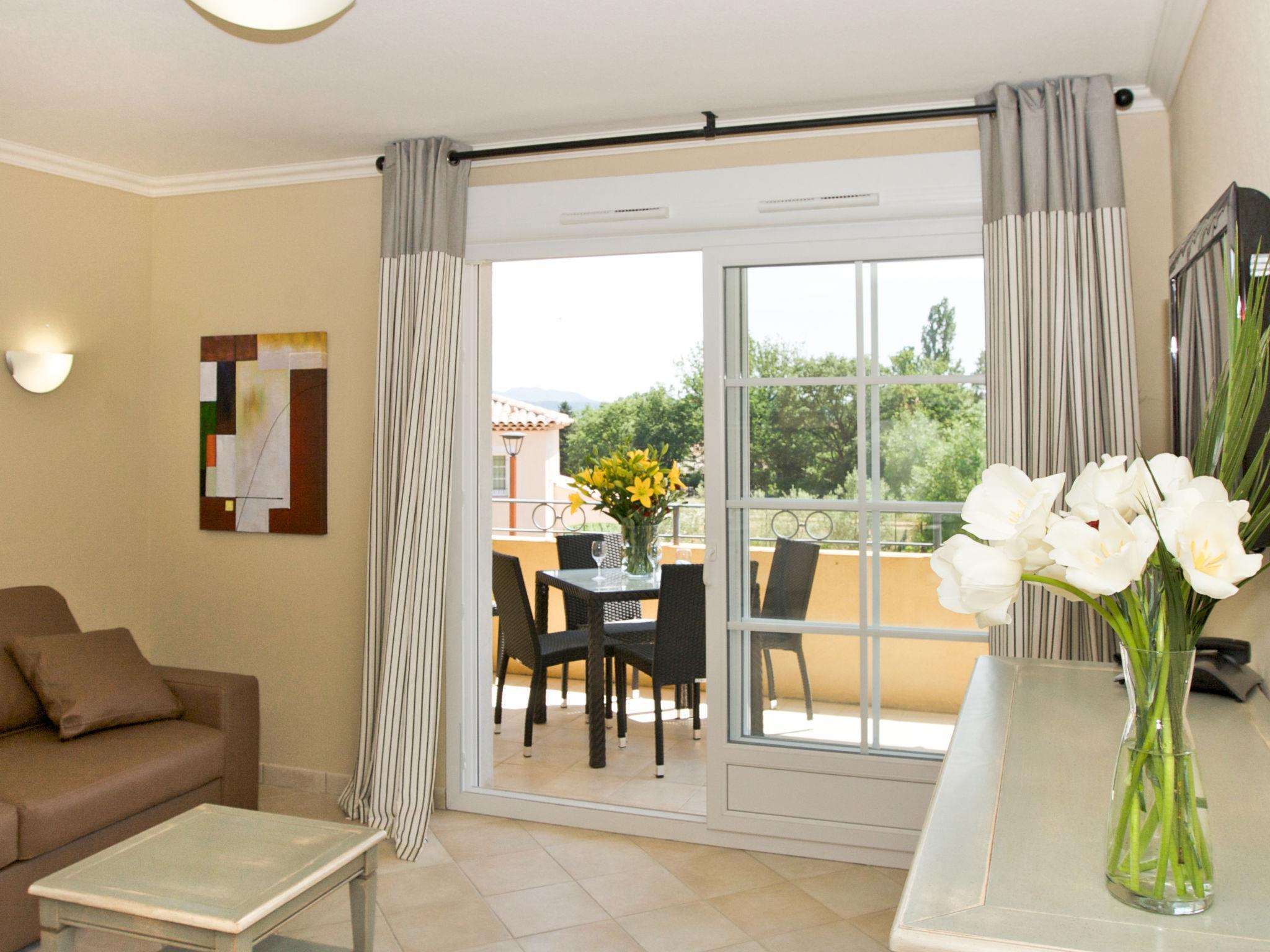 "Domaine de Camiole", 1-room apartment 20 m2. Tasteful furnishings: living/sleeping room with 2 sleeping facilities, dining table and satellite TV. Open kitchen (dishwasher, 2 ceramic glass hob hotplates, electric coffee machine, combination microwave). Bath or shower/WC. Heating, air-conditioning. Balcony. Balcony furniture. Facilities: Internet (WiFi, free). Please note: non-smokers only. Maximum 1 pet/ dog allowed. Smoke alarm, fire extinguisher. The property is one of a type of property or apartment.