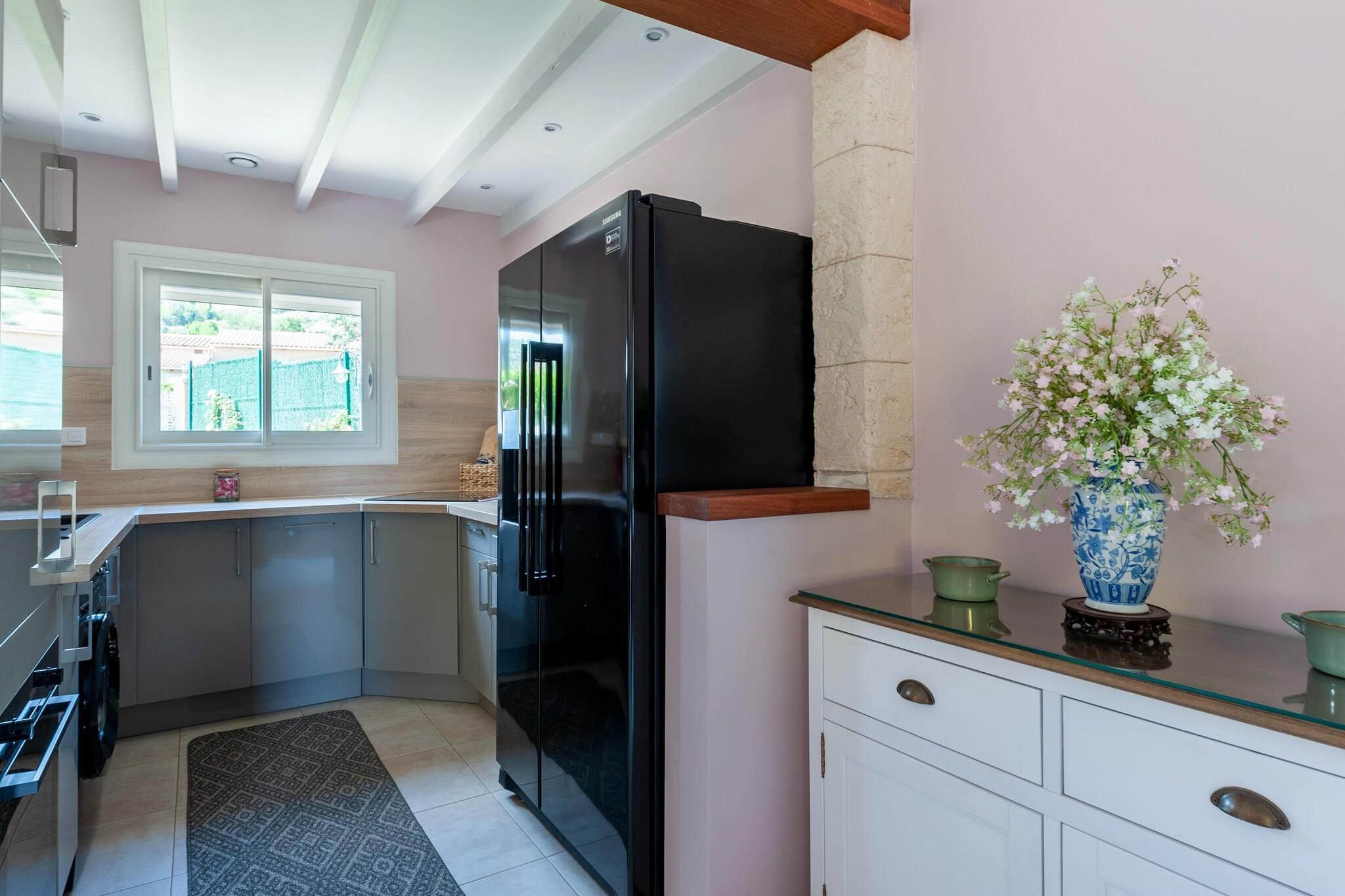 Villa Cannelle, en del af det eksklusive Tom's Villas, er et fantastisk familie-retræte med 3 soveværelser med aircondition, komfortabelt med plads til 6 gæster. Villaen har en rummelig terrasse med en utrolig udsigt over de omkringliggende bakker og landsbyen. Nyd din private swimmingpool, som kan opvarmes til 23°C (ekstra gebyr, tilgængelig fra oktober til maj med 10 dages varsel). Beliggende kun 950 meter fra byens centrum, nærliggende restauranter, ridning (3,9 km), vandsport og en storslået golfbane under 8 km væk, tilbyder denne villa den perfekte blanding af afslapning og eventyr. Indvendigt har villaen et elegant, rummeligt interiør med et luksuriøst køkken, der har udsigt over den maleriske landsby. Bliv underholdt med Netflix og højhastighedsfiberinternet. Udenfor er den store terrasse ideel til nydelse året rundt, komplet med liggestole og en parasol. Sikker privat parkering og en gratis ladestation til elbiler (afhængig af bilkompatibilitet) bidrager til dit opholds bekvemmelighed og komfort. Villa Cannelle er en del af 'Villas de Tom'-gruppen på samme gade, perfekt til familier eller venner, der rejser sammen, og som ønsker at booke flere villaer. For en ekstra særlig godbid tilbyder ejeren en dagstur på en 9 meter lang QuickSilver 855-båd fra Antibes havn, hvis vejret tillader det (mod ekstra gebyr). Det er en perfekt base for at udforske den franske riviera med stil.