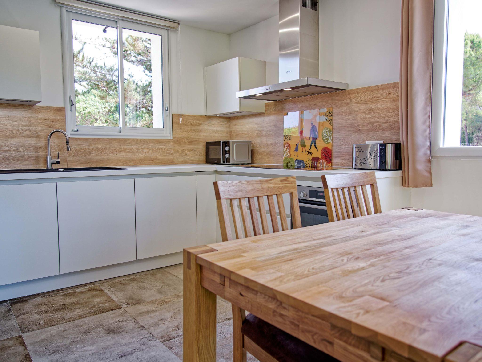 A living room/kitchen. Fully equipped kitchen with cooker, oven, microwave, toaster, dishwasher, washing machine, coffee machine, kettle and dining area.