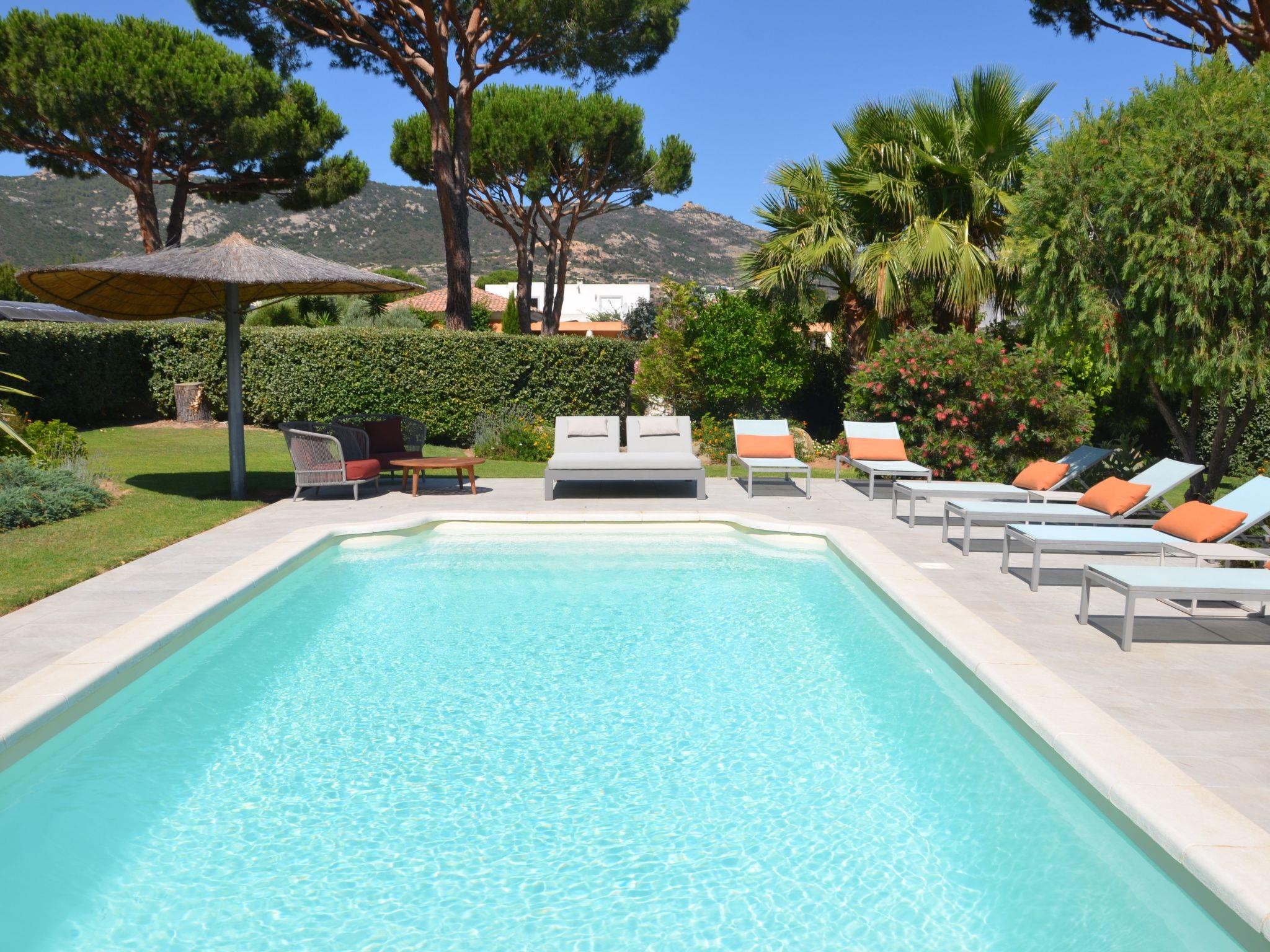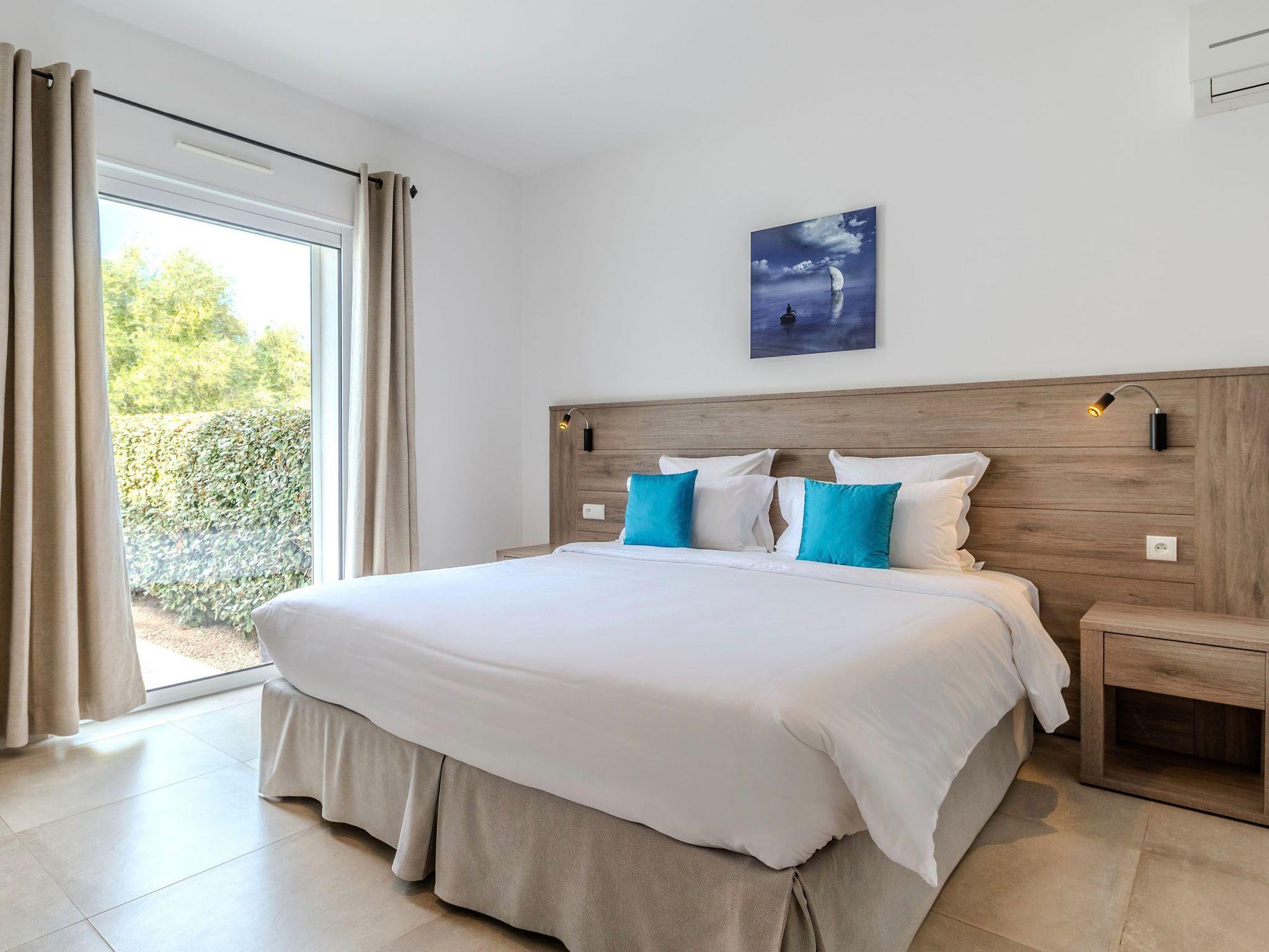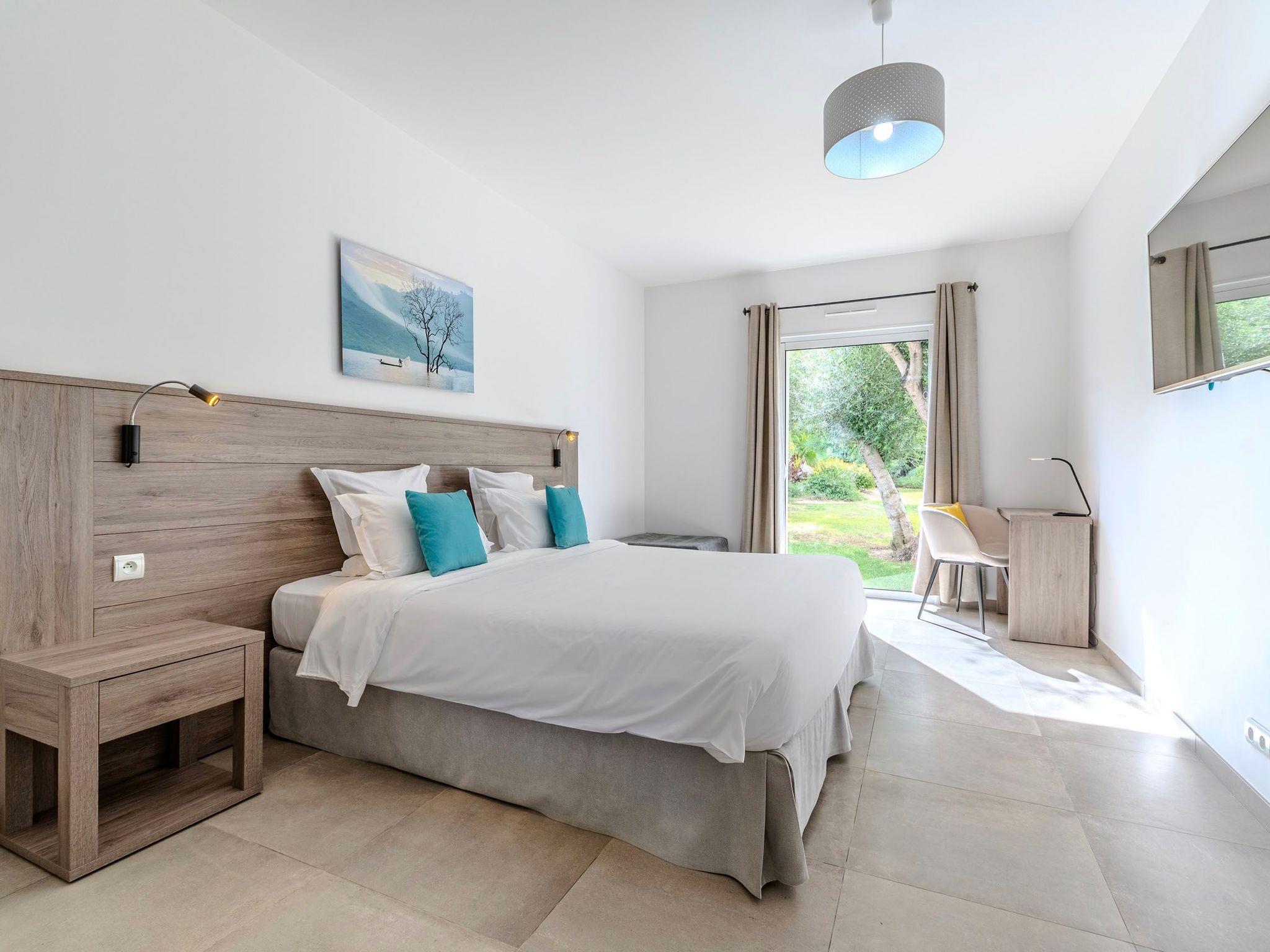 Elegant villa for 6 people in Calvi, within the Domaine Villas Mandarine, 900 m from the beach. Ideal for families or couples, it offers 3 en-suite bedrooms, air conditioning, a private pool, an enclosed garden and hotel services including housekeeping, linen, Wi-Fi and concierge service.