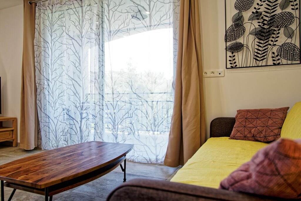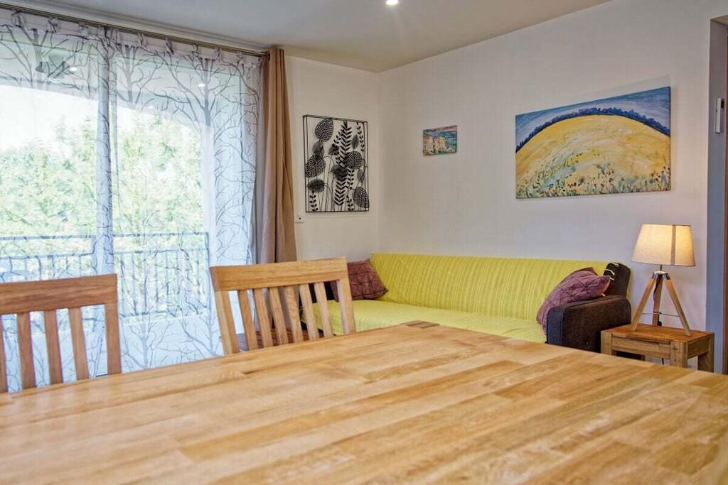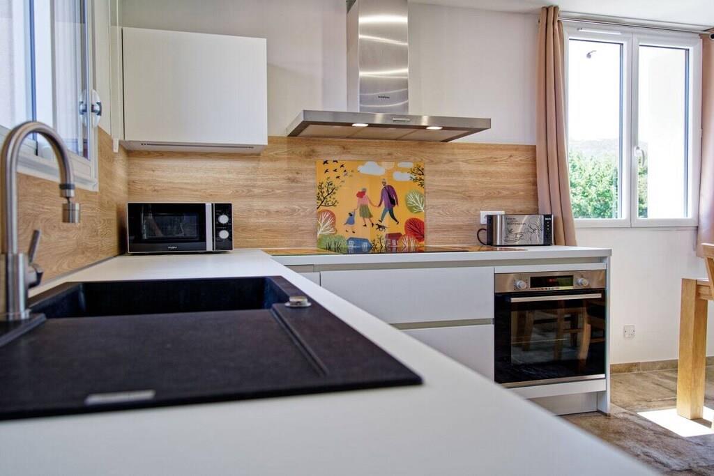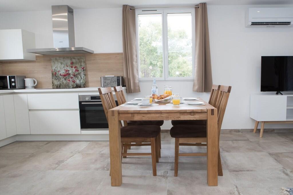 På 1. etage: (Køkken(, , , Grill center, spisebord, kakkelovn, elkedel, brødrister, komfur, kaffemaskine, ovn, mikrobølgeovn, opvaskemaskine , køleskab, fryser, fryser, klimaanlæg, Foodprocessor), stue / spisestue(, Fjernsyn, spisebord, klimaanlæg), soveværelse(, dobbeltseng, klimaanlæg), soveværelse(, køjeseng, køjeseng, klimaanlæg), badeværelse(, , toilet, bruser, bruser, håndvask, vaskemaskine, føntørrer)) , , , Internetadgang, vaskemaskine, terrasse(havemøbler), parkering, strygebræt, strygejern, tørreskab