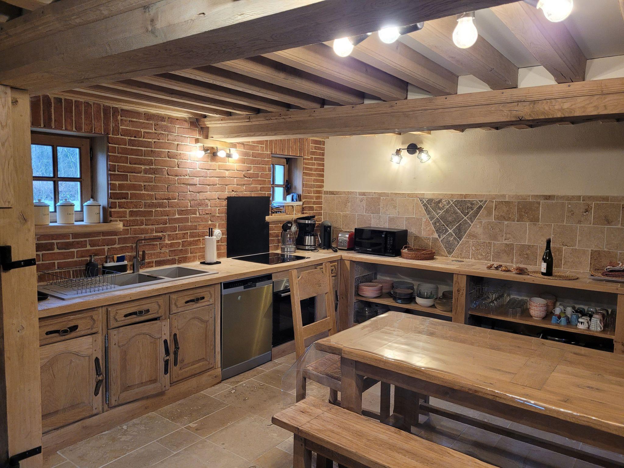 Situated on the edge of a wood, this half-timbered house invites guests to immerse themselves in the calm and serenity of the surrounding countryside. The spacious terrace provides a pleasant setting for al fresco dining or simply relaxing in the fresh air.