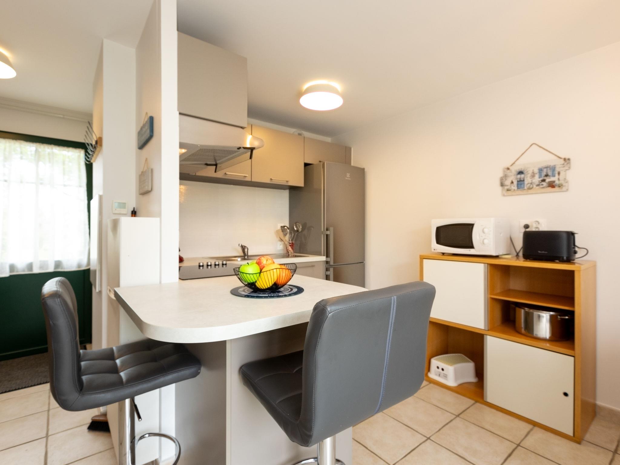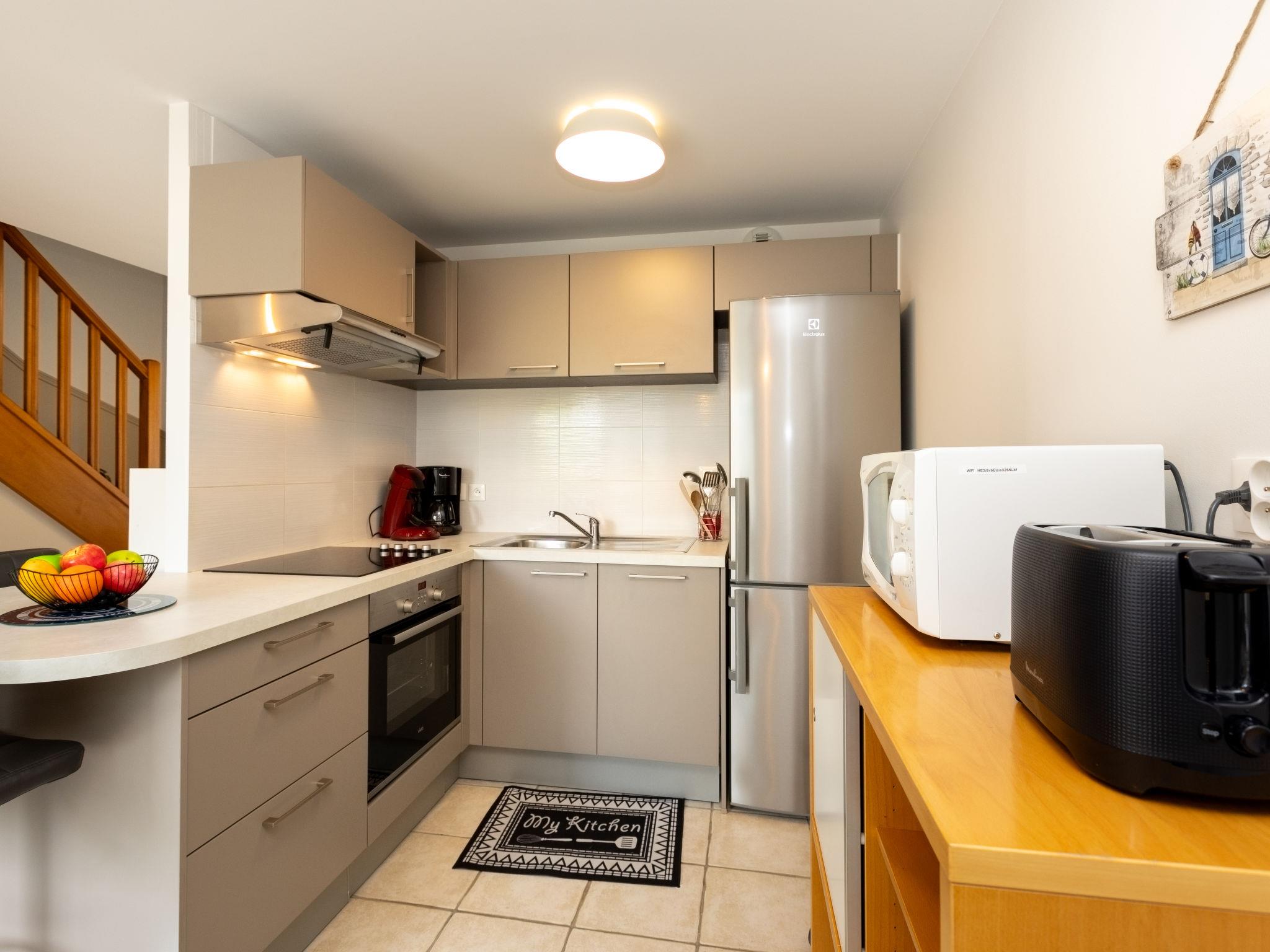 3-room terraced house 40 m2 on 2 levels. Comfortable and tasteful furnishings: large living/dining room with TV (flat screen). Exit to the garden. Open kitchen (oven, dishwasher, 4 induction hot plates, toaster, kettle, microwave, freezer, electric coffee machine, Capsules for coffee machine (Senseo) extra). Exit to the garden. Sep. WC. Upper floor: 2 rooms, each room with 1 french bed (1 x 140 cm, length 190 cm). Shower/WC. Electric heating. Small patio 20 m2, south facing position. Terrace furniture, barbecue. Facilities: washing machine, hair dryer. Internet (WiFi, free). Please note: smoke alarm. Offer by a private individual according to Art. 155, IV of CGI.