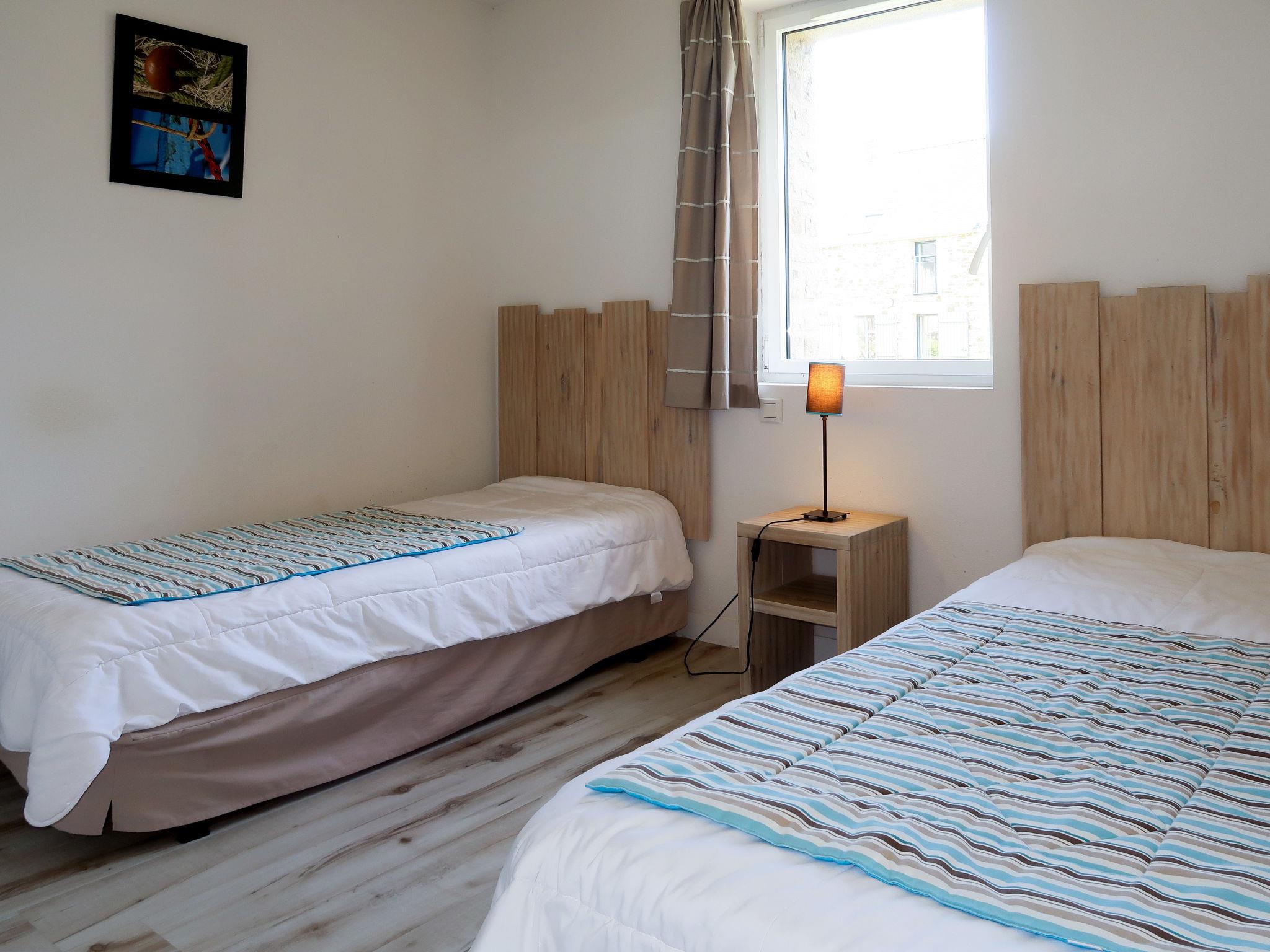 Cosy resort "Les Hauts de la Houle", 2 storeys. 50 apartments in the residence. Above Baie du Mont-Saint-Michel 600 m from the centre of Cancale, 22 km from the centre of Saint-Malo, in an elevated position, 700 m from the sea. For shared use: property, well-kept garden with lawn and plants, swimming pool heated (15 x 6 m, depth 145 cm, seasonal availability: 01.Jan. - 31.Dec. pool opening hours: 09:30-19:45). Hot tub, terrace. In the complex: sauna (extra). Storage room for bicycles, washing machine (for shared use, extra). Grocery 600 m, bus stop "Cancale Eglise" 700 m, railway station "Saint-Malo" 22 km, sandy beach 4 km. Please note: the photograph shows a typical example. The holiday properties may differ in living space, floorplan, equipment and furnishing.