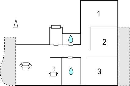 Badeværelse (nr. 1) - Varmt og koldt vand. Bruser og badekar