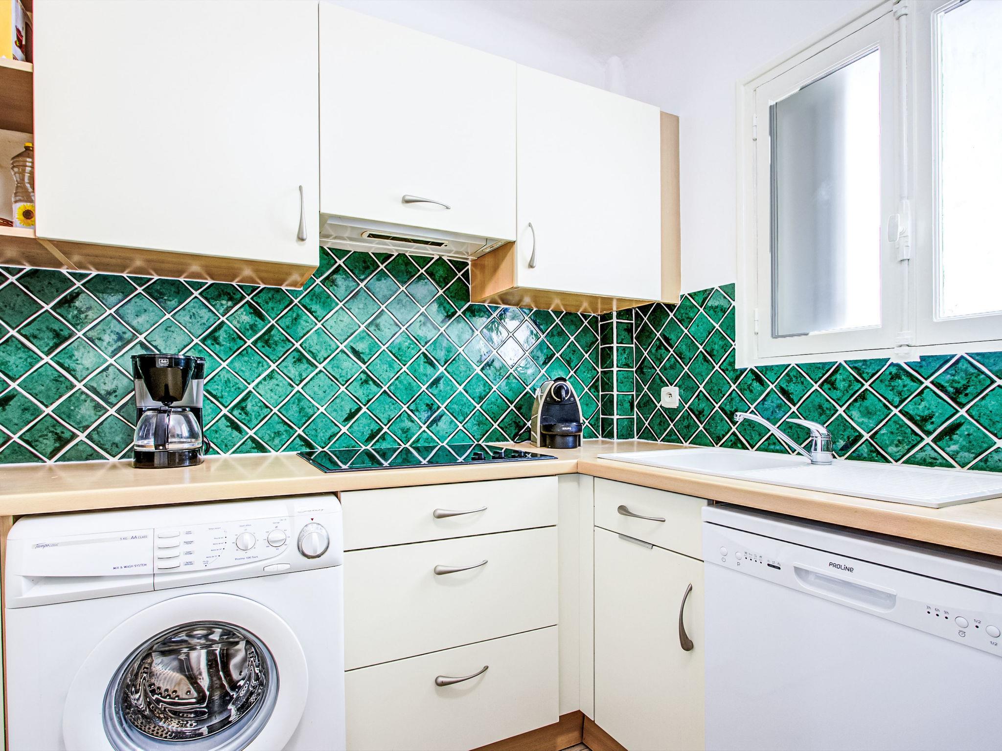 1-room apartment 35 m2 on 1st floor, north-west facing position. Fully renovated: living/sleeping room with 1 fold-away bed (140 cm, length 190 cm), dining table and TV (flat screen). Exit to the balcony. Kitchenette (dishwasher, 4 ceramic glass hob hotplates, toaster, kettle, microwave, freezer, electric coffee machine, Capsules for coffee machine (Krups) extra). Shower, bidet, sep. WC. Electric heating. Small balcony 6 m2. Balcony furniture. Facilities: washing machine, children's high chair, baby cot (extra). Internet (WiFi, extra). Parking at 220 m. Please note: non-smokers only. Smoke alarm. Parking space available only from 01.07 to 31.08 (public parking with subscription). Offer by a private individual according to Art. 155, IV of CGI.
