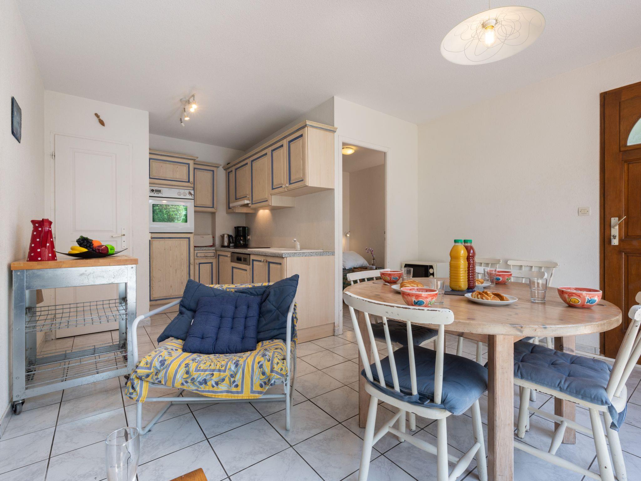 4-room terraced house 65 m2 on 2 levels. Very practical furnishings: living/dining room with TV (flat screen), fan. Exit to the terrace. 1 room with 1 french bed (140 cm, length 190 cm), fan. Kitchenette (oven, dishwasher, 4 induction hot plates, toaster, kettle, electric coffee machine). Sep. WC. Heating, electric heating, air-conditioning. Upper floor: 1 room with 1 x 2 bunk beds (90 cm, length 190 cm), fan. 1 room with 1 sofabed (140 cm, length 190 cm), fan. Shower/WC, sep. WC. Large terrace 20 m2. Terrace furniture, barbecue. Facilities: washing machine. Internet (WiFi, free). Parking. Please note: smoke alarm.