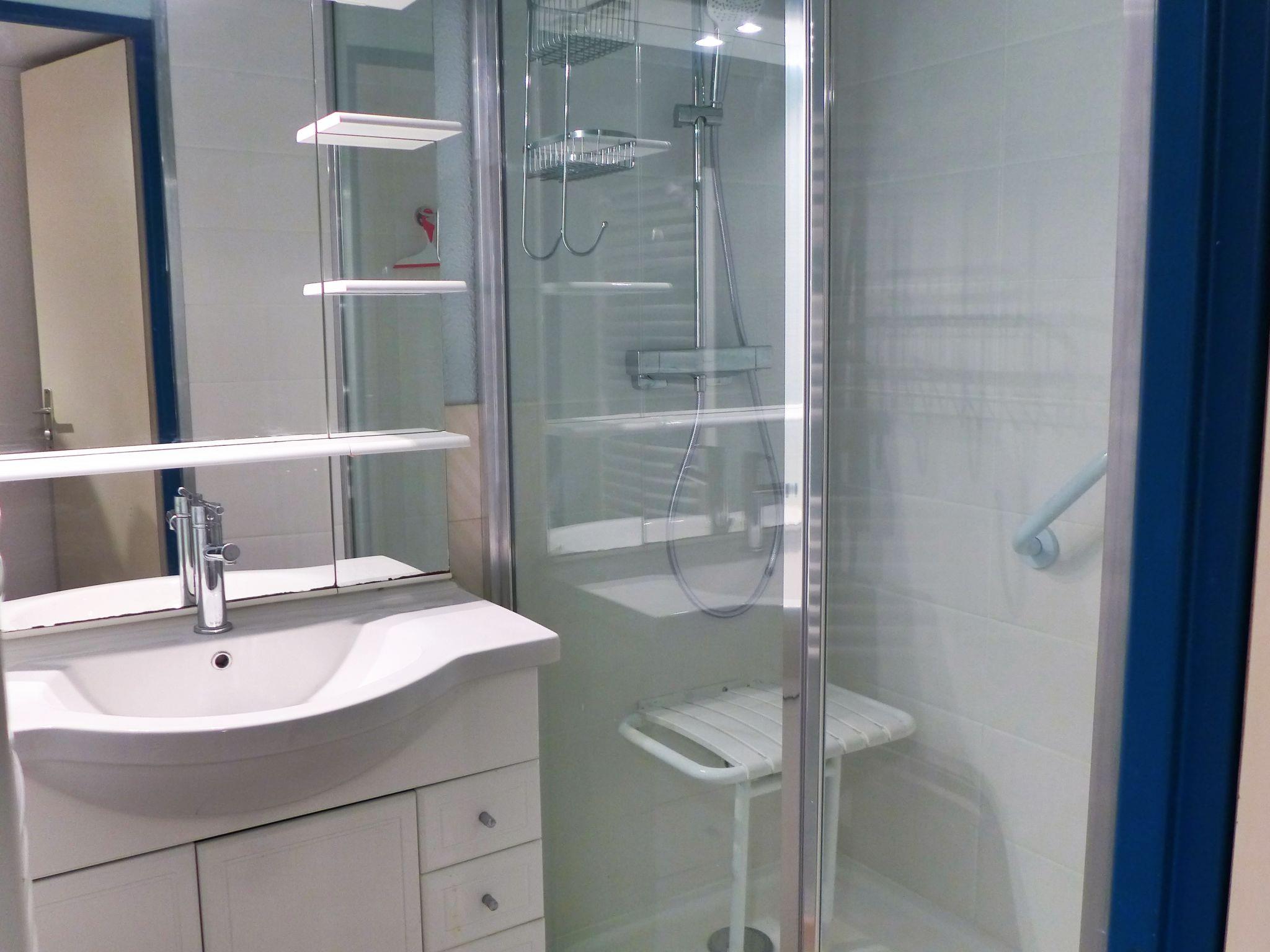 3-room apartment 46 m2 on 4th floor. Living/dining room 25 m2 with 1 double sofabed (140 cm, length 190 cm), TV (flat screen), DVD, fan and electric shutters. Exit to the terrace. 1 room with 1 french bed (140 cm, length 190 cm). 1 room with 1 bed (90 cm, length 190 cm). Kitchenette (oven, dishwasher, 4 induction hot plates, kettle, microwave, freezer, electric coffee machine). Shower, sep. WC. Heating, electric heating. Small terrace 10 m2. Balcony furniture, electric barbecue. Beautiful view of the sea. Facilities: washing machine, iron, hair dryer. Internet (WiFi, extra). Garage. Please note: non-smokers only. Smoke alarm. Garage (Height 1.70 m, width 2.20 m, Length 4.70 m).