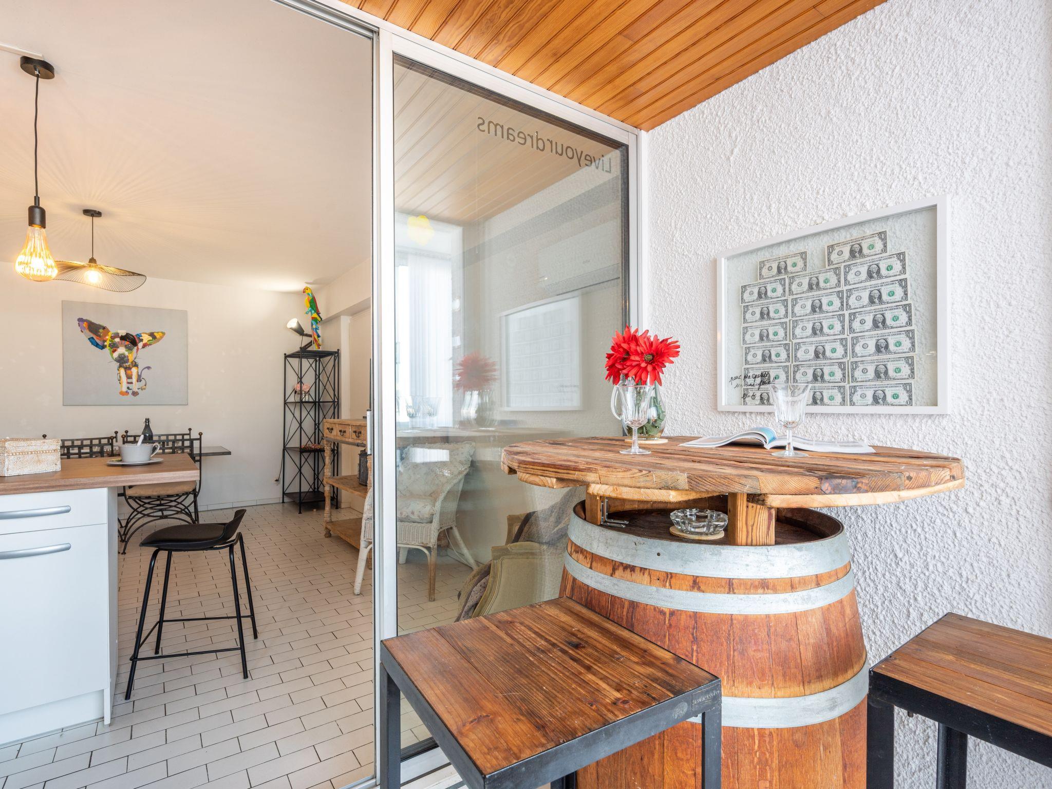"Hacienda 3", 2-room apartment 52 m2 on 1st floor. Spacious: living/dining room with 1 sofabed (110 cm, length 170 cm), dining table, TV and flat screen. Exit to the loggia. 1 large room with 1 french bed (1 x 160 cm, length 200 cm). Exit to the loggia. Kitchen (3 ceramic glass hob hotplates, kettle, microwave, electric coffee machine) with bar. Bathroom, sep. WC. Air-conditioning, forced-air heating. Balcony furniture, covered balcony. Facilities: washing machine, iron. Internet (WiFi, extra). Parking. Please note: maximum 1 pet/ dog allowed. Smoke alarm. Parking space only from 01.06 to 30.09 (public parking with subscription).