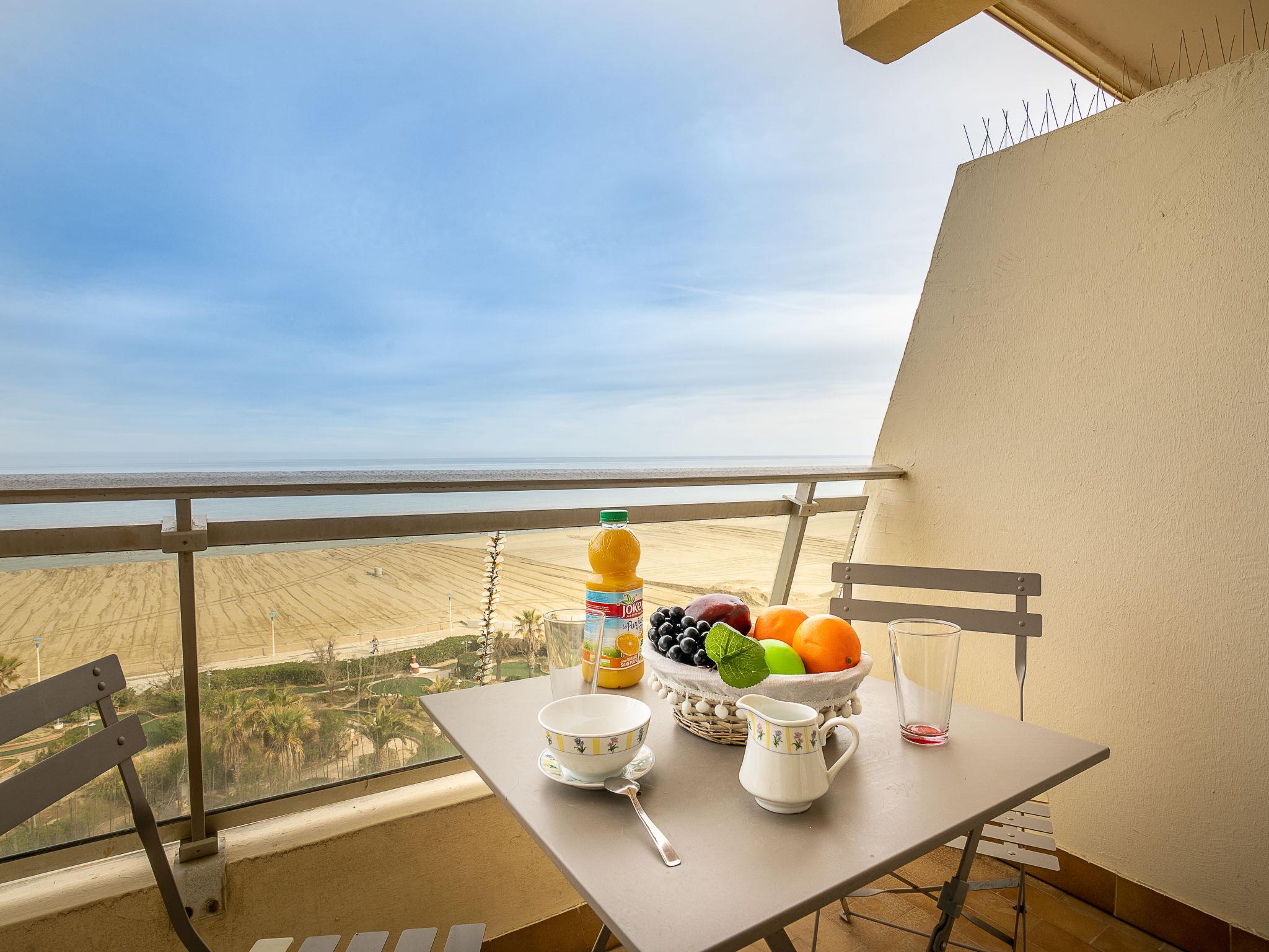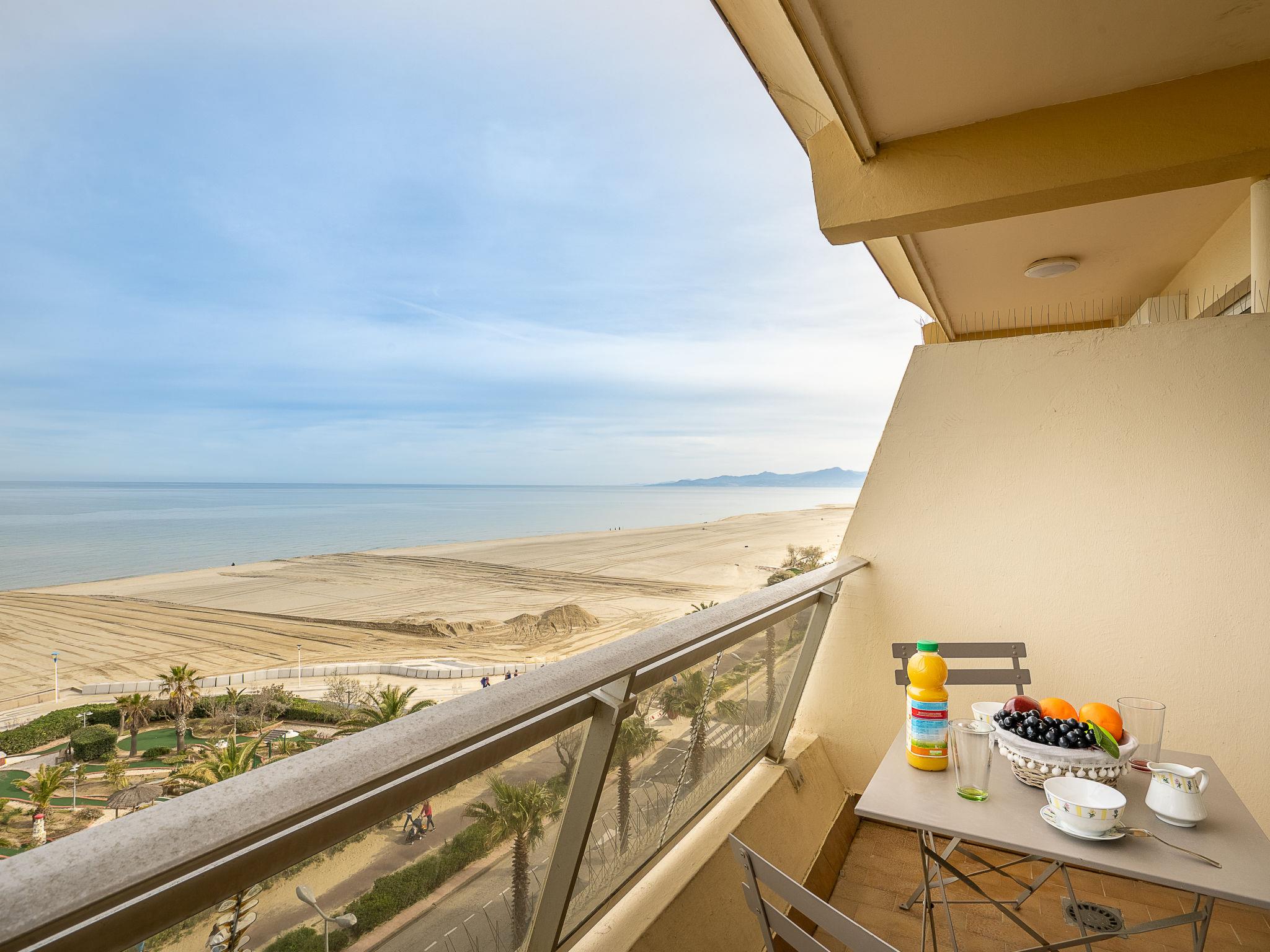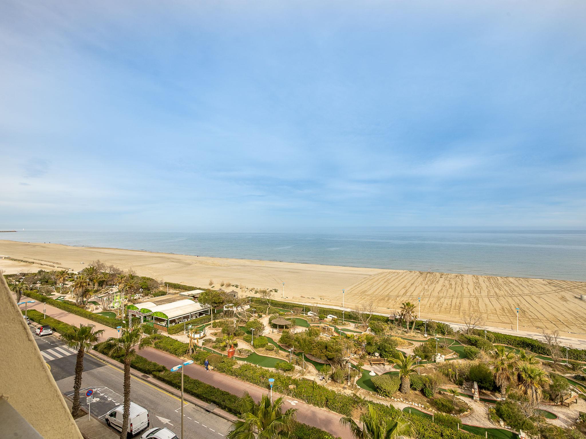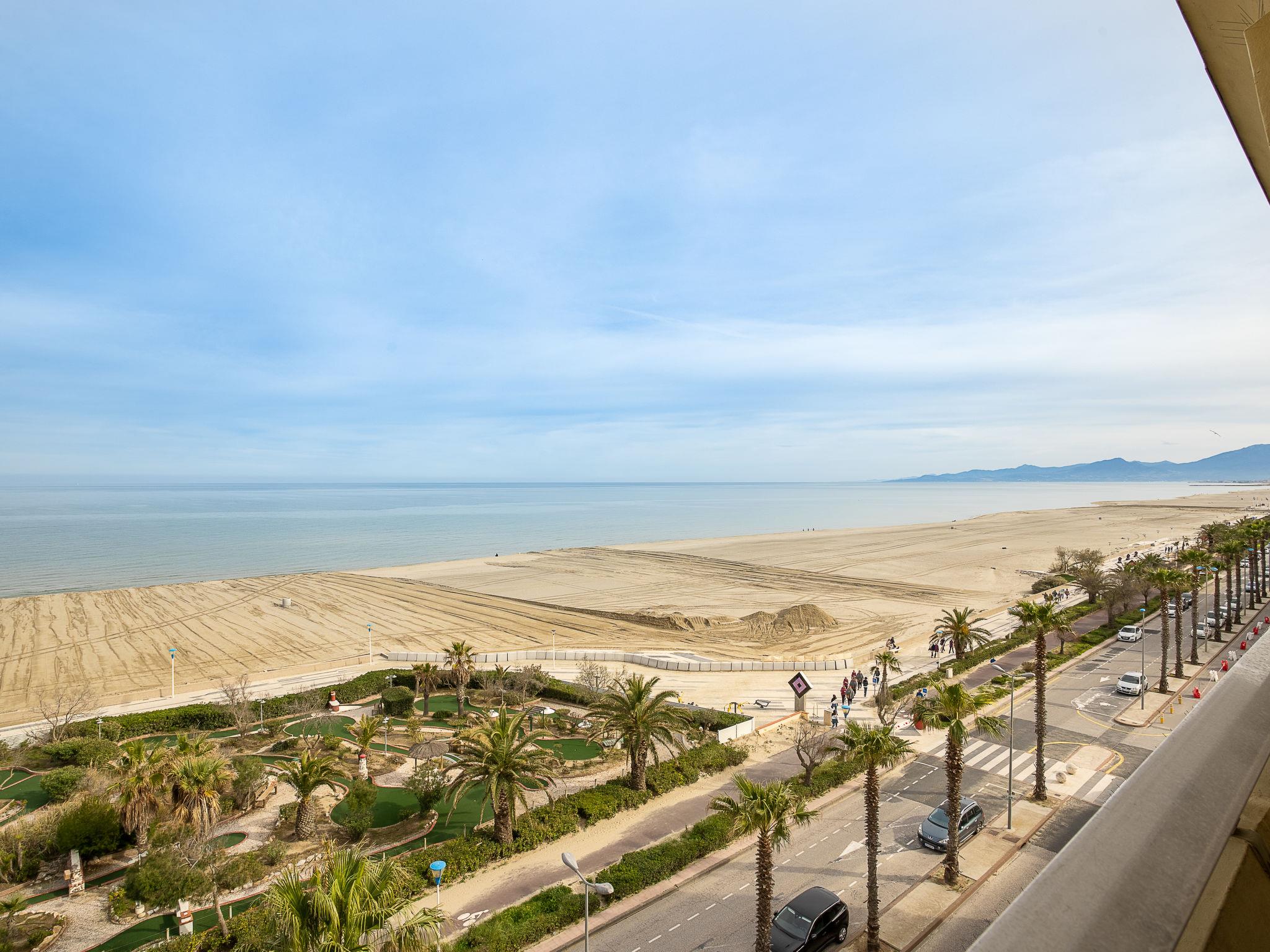 Canet Plage: Apartment house "Milos", 6 storeys, terraced. 20 m from the sea, 20 m from the beach, road to cross. In the complex: lift. Shop 20 m, grocery 50 m, supermarket 2 km, shopping centre 8 km, restaurant 50 m, bakery 50 km, bicycle rental 10 m, bus stop 150 m, railway station "Perpignan" 12 km, sandy beach 20 m, park "Aqualand Saint Cyprien" 10 km, diving center 18 km, outdoor swimming pool 1 km, indoor swimming pool 1 km, lake Etang de Canet 2 km. Sports harbour 1 km, tennis 1 km, minigolf 50 m. Nearby attractions: Perpignan 12 km, Collioure 25 km, Banyuls 37 km, Espagne 35 km, Andorre 180 km, Barcelone 200 km. Well-known lakes can easily be reached: Lac de Villeneuve de la Raho 19 km, Lac de Saint Jean Pla de Corts 39 km, Gorges du Gouleyrous 42 km. Hiking paths: Abbaye Saint Martin du Canigou 70 km, Pic du Canigou 77 km, Lac des Bouillouses 105 km.