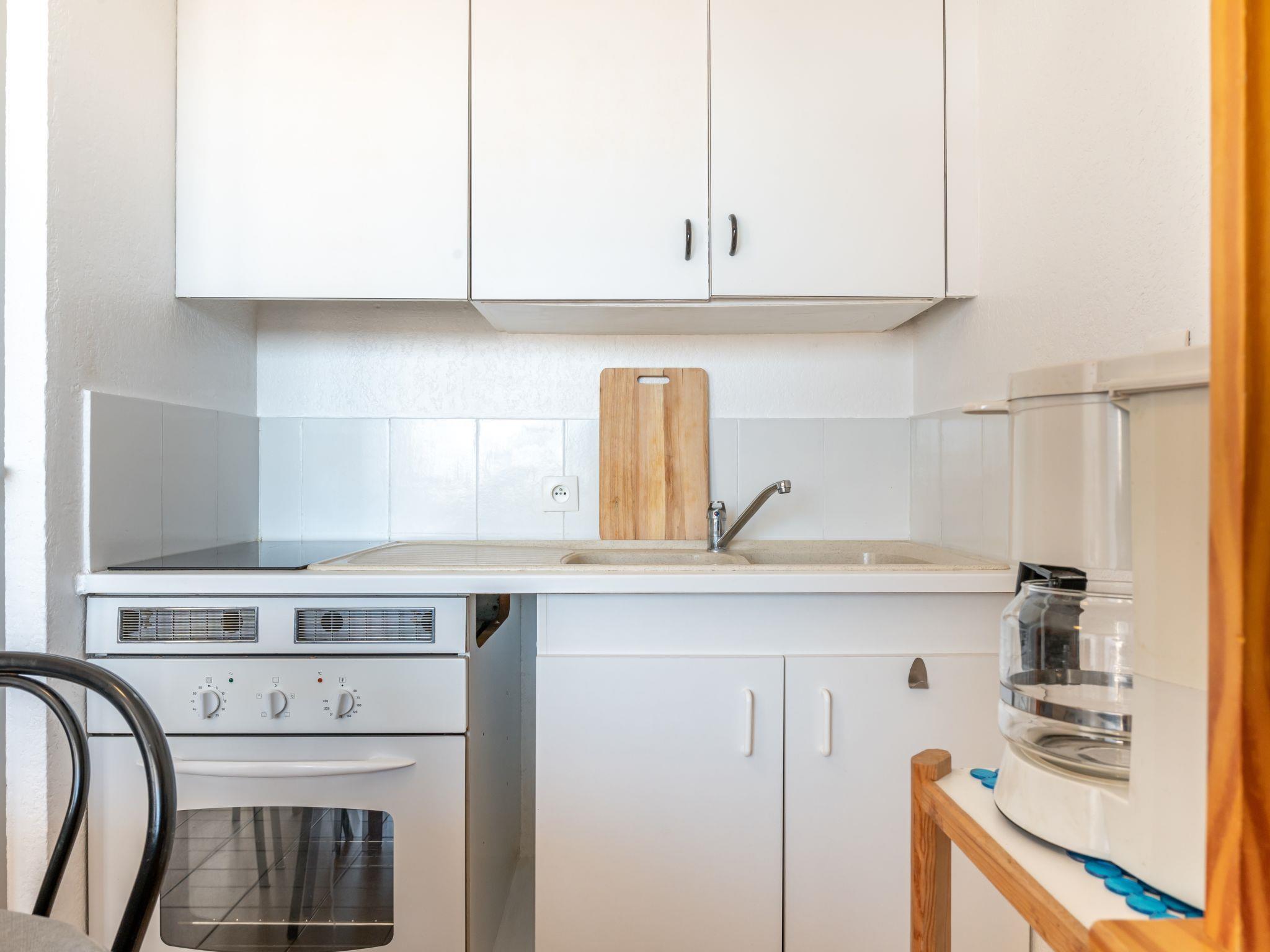 "3 Mats", 2-room apartment 28 m2 on 4th floor. Simple and practical furnishings: living/dining room with 1 double sofabed (140 cm, length 190 cm), TV (flat screen). Exit to the terrace. Sleeping alcove with 1 french bed (140 cm, length 190 cm). Exit to the terrace. Open kitchen (oven, 2 induction hot plates, toaster, microwave, freezer, electric coffee machine). Shower/WC. Small terrace 10 m2. Balcony furniture. Beautiful view of the mountains. Facilities: washing machine. Internet (WiFi, extra). Please note: 1 small pet/ dog allowed. Smoke alarm. Instead of an enclosed bedroom, some sleeping areas are located in an open-plan area (gallery, alcove, etc.).