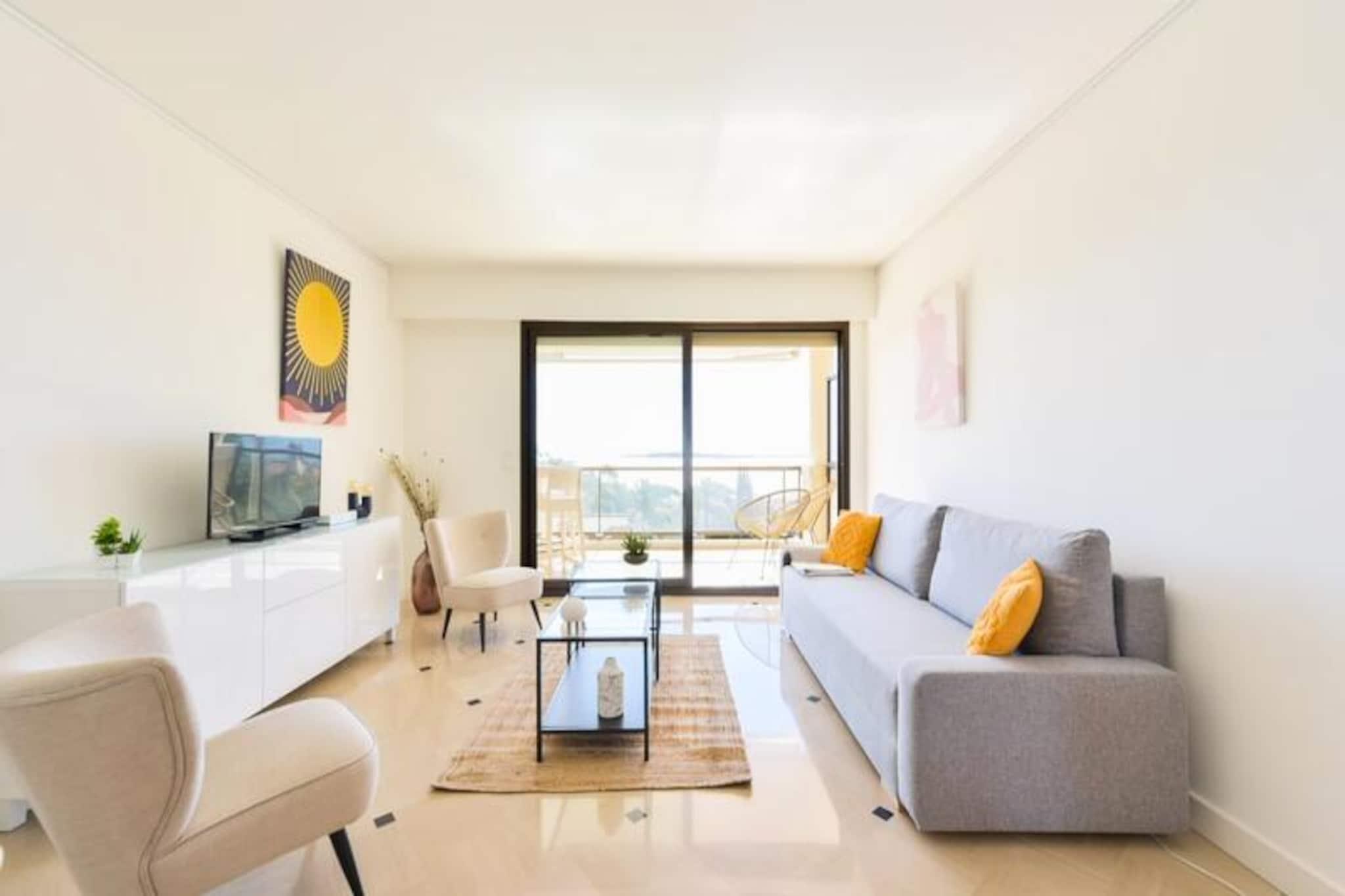 Med udsigt over det glitrende Middelhav og de fortryllende Lérinsøer tilbyder denne elegante toværelseslejlighed et roligt tilflugtssted i hjertet af den franske riviera. Beliggende på en blid bakke i en prestigefyldt residens omgivet af frodigt grønt, er dette din perfekte flugt til den solbeskinnede Côte d'Azur. Forestil dig at vågne op til den bløde havbrise, træde ud på din private sydøstvendte terrasse og kigge på den endeløse blå horisont. Dette er mere end en ferie; det er en postkort-perfekt oplevelse. Indenfor er lejligheden omhyggeligt designet til både komfort og stil. Den lyse stue med aircondition har en hyggelig spiseplads til fire personer, en blød sovesofa og et smart-tv til din underholdning. Det fuldt udstyrede køkken åbner ud til en skyggefuld terrasse, ideel til udendørs morgenmad. Det rolige dobbeltværelse med påklædningsværelse fører også ud til sin egen private terrasse, der tilbyder et roligt sted at slappe af. Et moderne badeværelse med badekar og separat toilet bidrager til bekvemmeligheden, mens termoruder sikrer fred og ro under hele dit ophold. Selve boligen kan prale af en funklende swimmingpool, perfekt til en forfriskende dukkert efter en dag på de nærliggende strande, kun 7 minutters gang væk. Inden for 5 minutters kørsel finder du lokale markeder, bagerier og supermarkeder, mens Croisettens og Palais des Congrès' glamour kun ligger 10 minutter væk i bil eller bus. For rejsende er ejendommen let tilgængelig med en privat garage og nærhed til Nice Côte d'Azur Lufthavn, kun 35 minutter væk. Uanset om du er her for at nyde solen, udforske Cannes' pulserende kultur eller blot slappe af i fredelige, grønne omgivelser, tilbyder denne lejlighed den perfekte blanding af luksus og bekvemmelighed. Lad dette idylliske tilflugtssted være dit hjem væk fra hjemmet på den franske riviera.