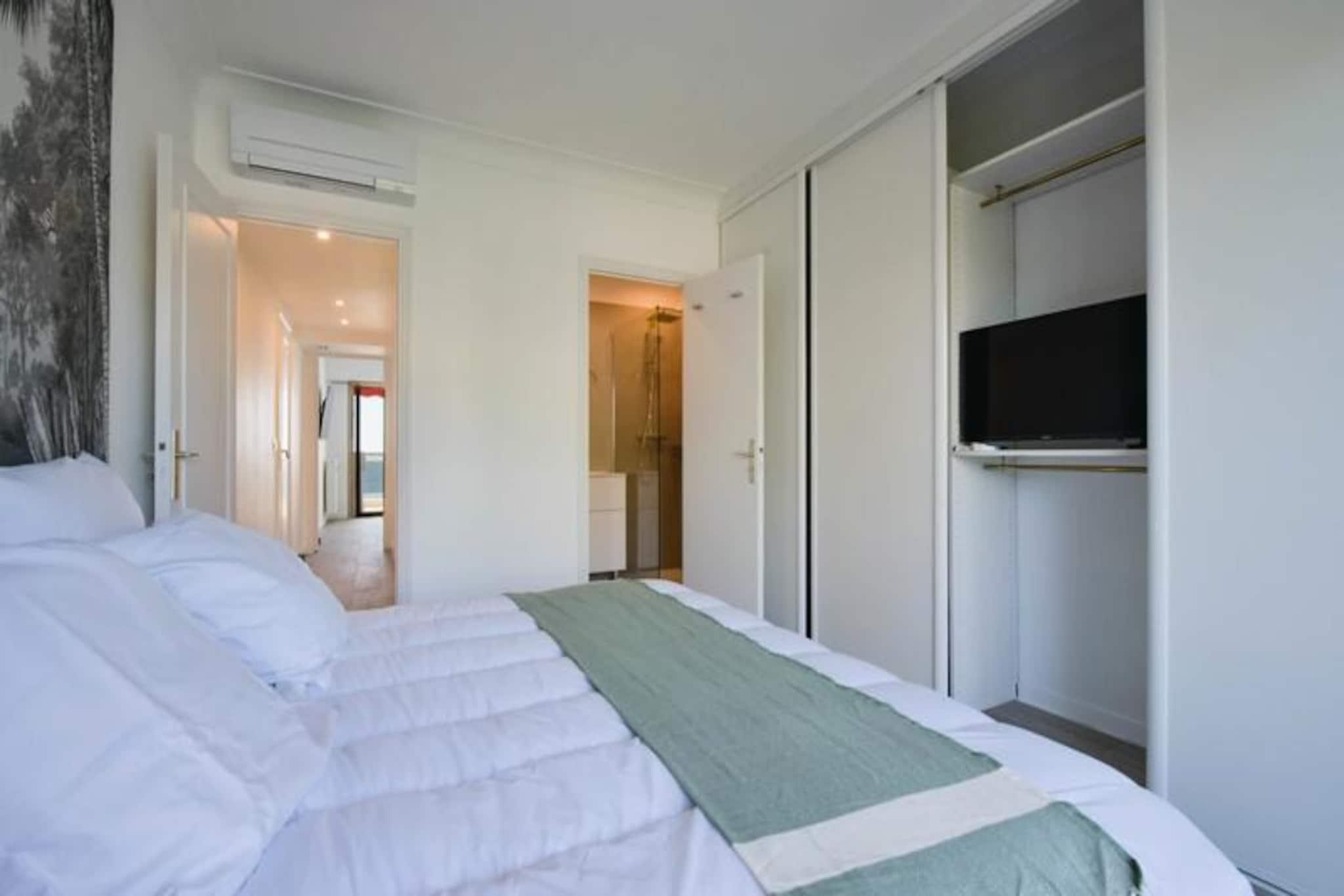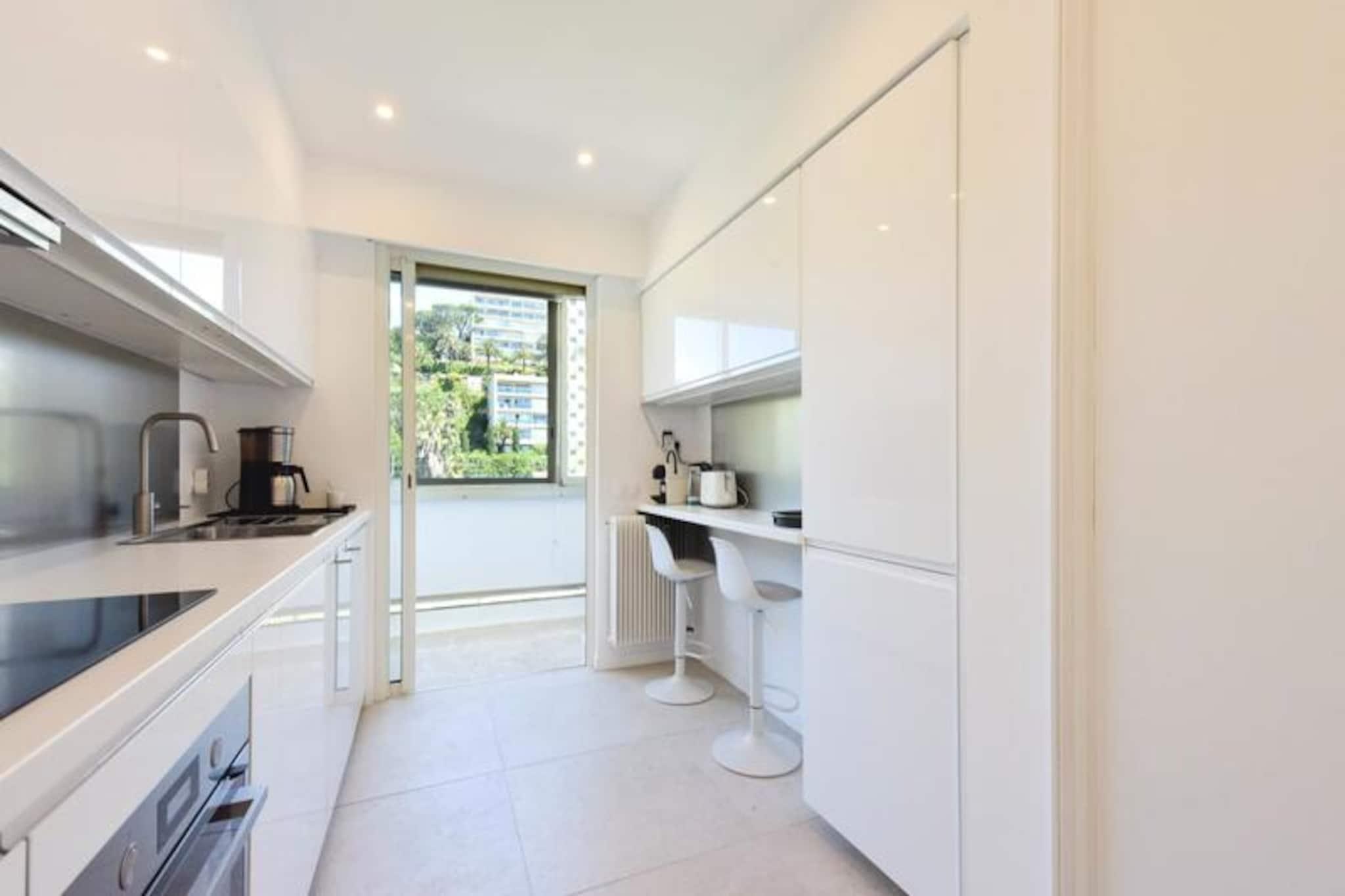 Forestil dig at vågne op til den blide lyd af bølger og træde ud på din private terrasse for at nyde den uforstyrrede udsigt over Middelhavet og de fortryllende Lérinsøer. Denne smukt renoverede lejlighed med to sider, beliggende i en prestigefyldt ejendom ved havet, tilbyder en idyllisk tilflugtssted, hvor moderne komfort møder kystro. Med sin syd-nord-orientering er lejligheden badet i naturligt lys, hvilket skaber en varm og indbydende atmosfære hele dagen. Indenfor finder du en rummelig stue med aircondition, spiseplads til seks personer, en komfortabel sofa og et smart-tv, perfekt til afslapning efter en dag ved havet. Det separate, fuldt udstyrede køkken åbner ud til en skyggefuld veranda, ideel til at tilberede måltider med friske lokale ingredienser. Begge soveværelser har queensize-senge, smart-tv'er og rigelig opbevaringsplads, hvor soveværelset tilbyder et privat brusebad, og det andet soveværelse har en fantastisk havudsigt. Yderligere bekvemmeligheder inkluderer et andet brusebad, et separat toilet og lydisolerede termoruder for at sikre et fredeligt ophold. Træd udenfor, og du er kun få minutter væk fra sandstrande, lokale markeder og charmerende butikker. Den berømte Croisetten og Palais des Congrès ligger kun en kort køretur eller bustur væk, hvilket gør denne lejlighed til en fremragende base for at udforske Cannes. Uanset om du er her for at nyde solen, den pulserende lokale kultur eller blot slappe af ved havet, lover denne ejendom en uforglemmelig middelhavsferie. Med privat parkering, højhastigheds-Wi-Fi og concierge-service til din rådighed er hver eneste detalje blevet omhyggeligt overvejet for at sikre, at dit ophold bliver lige så problemfrit, som det er mindeværdigt. Lad den franske rivieras skønhed fortrylle dig fra komforten af ??dette exceptionelle oase ved havet.