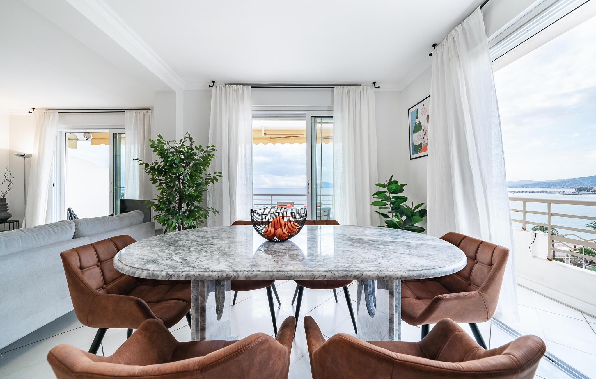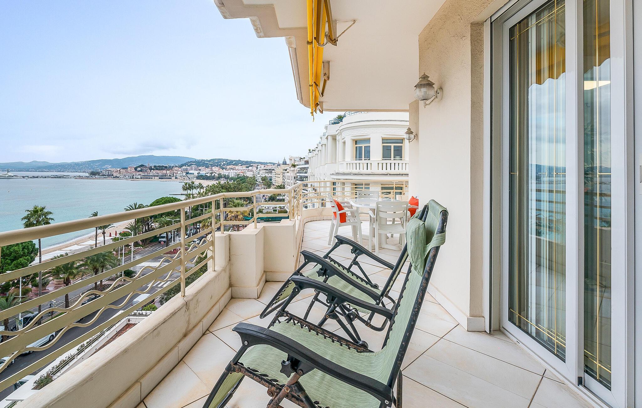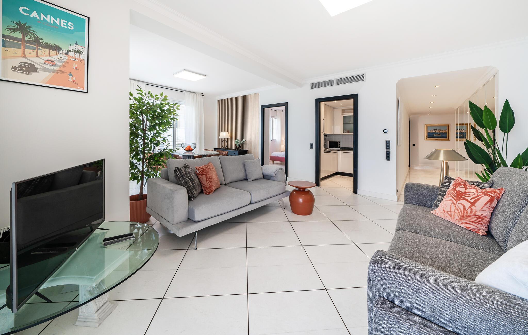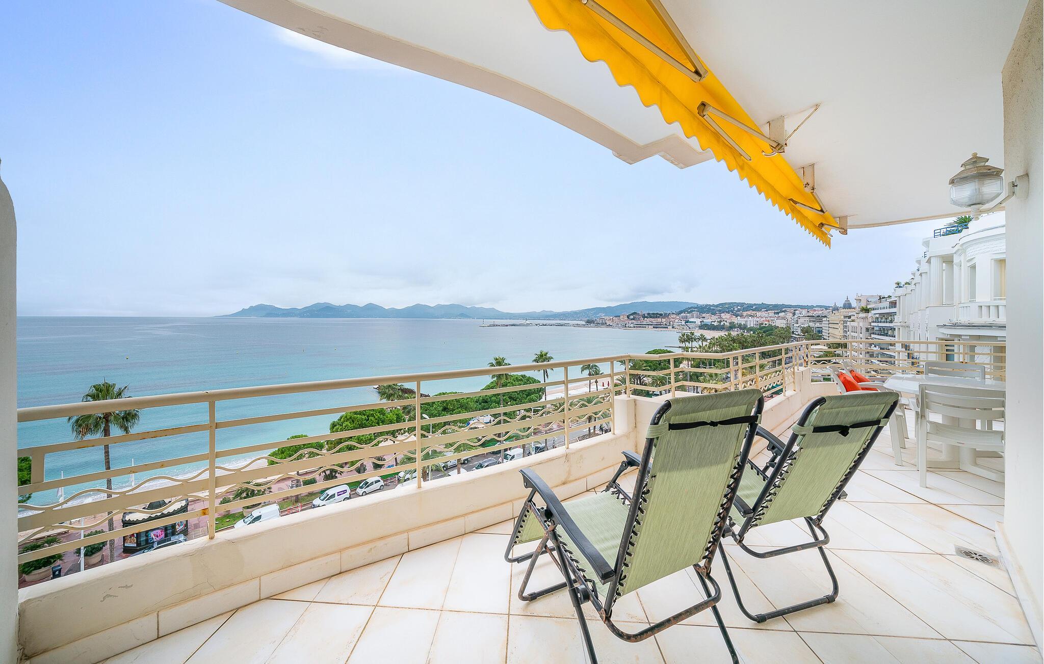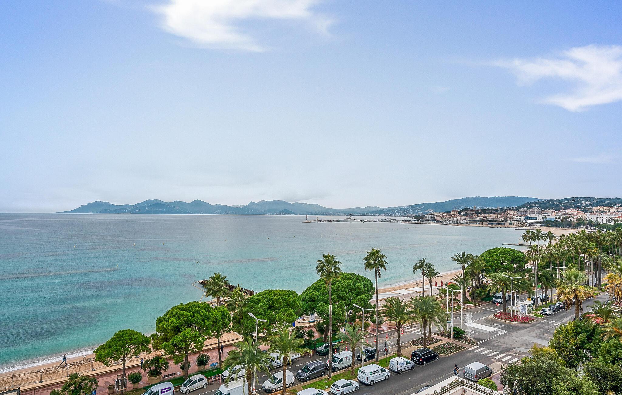 Denne rummelige lejlighed ligger på promenaden i Cannes og tilbyder en vidunderlig panoramaudsigt over kysten og havet.