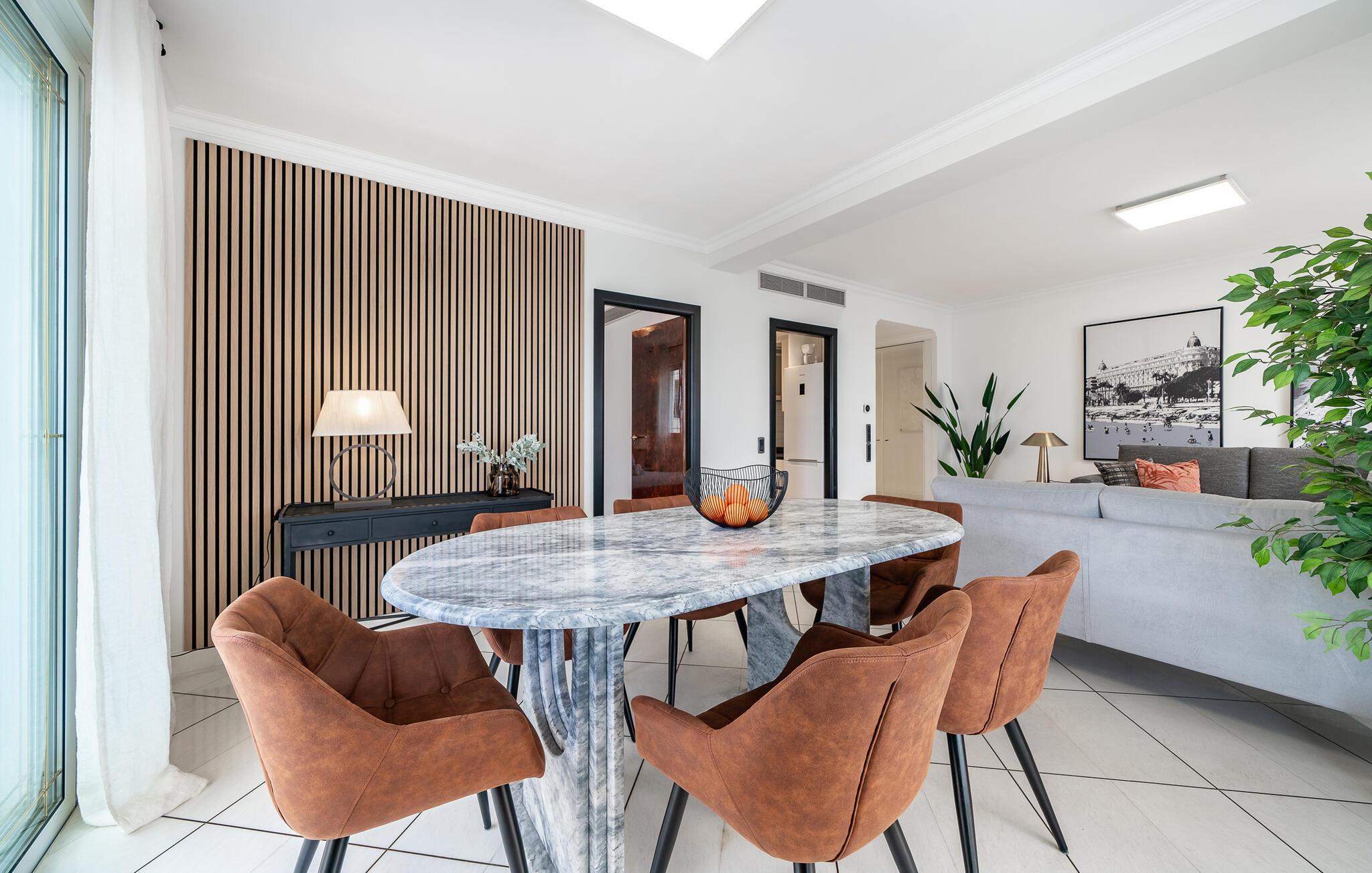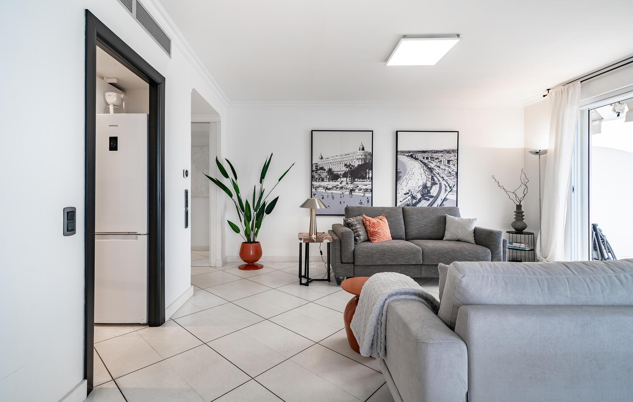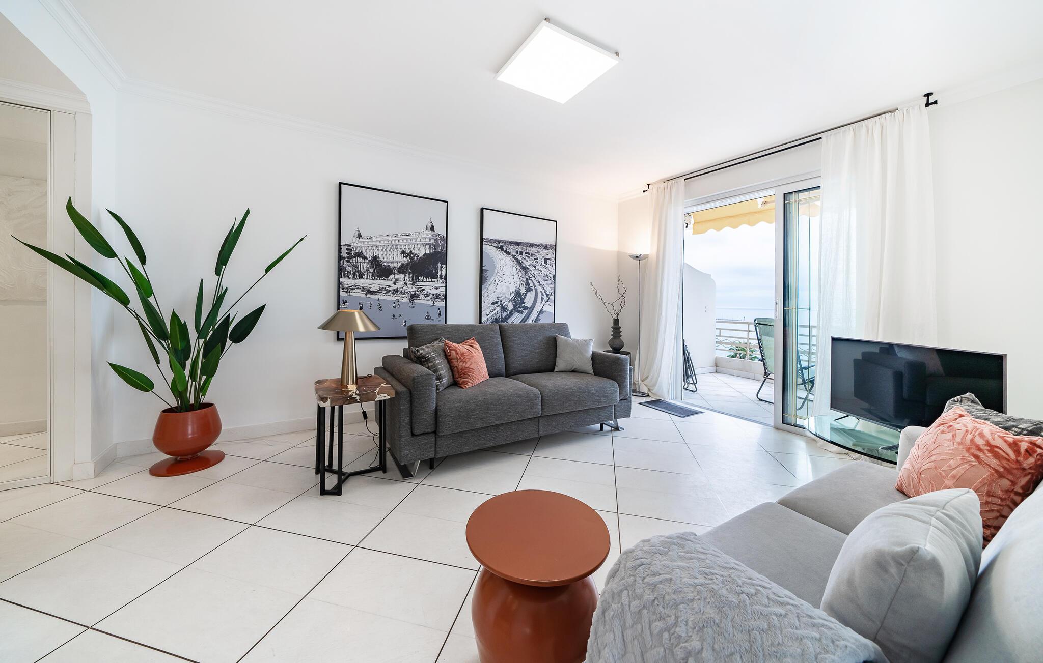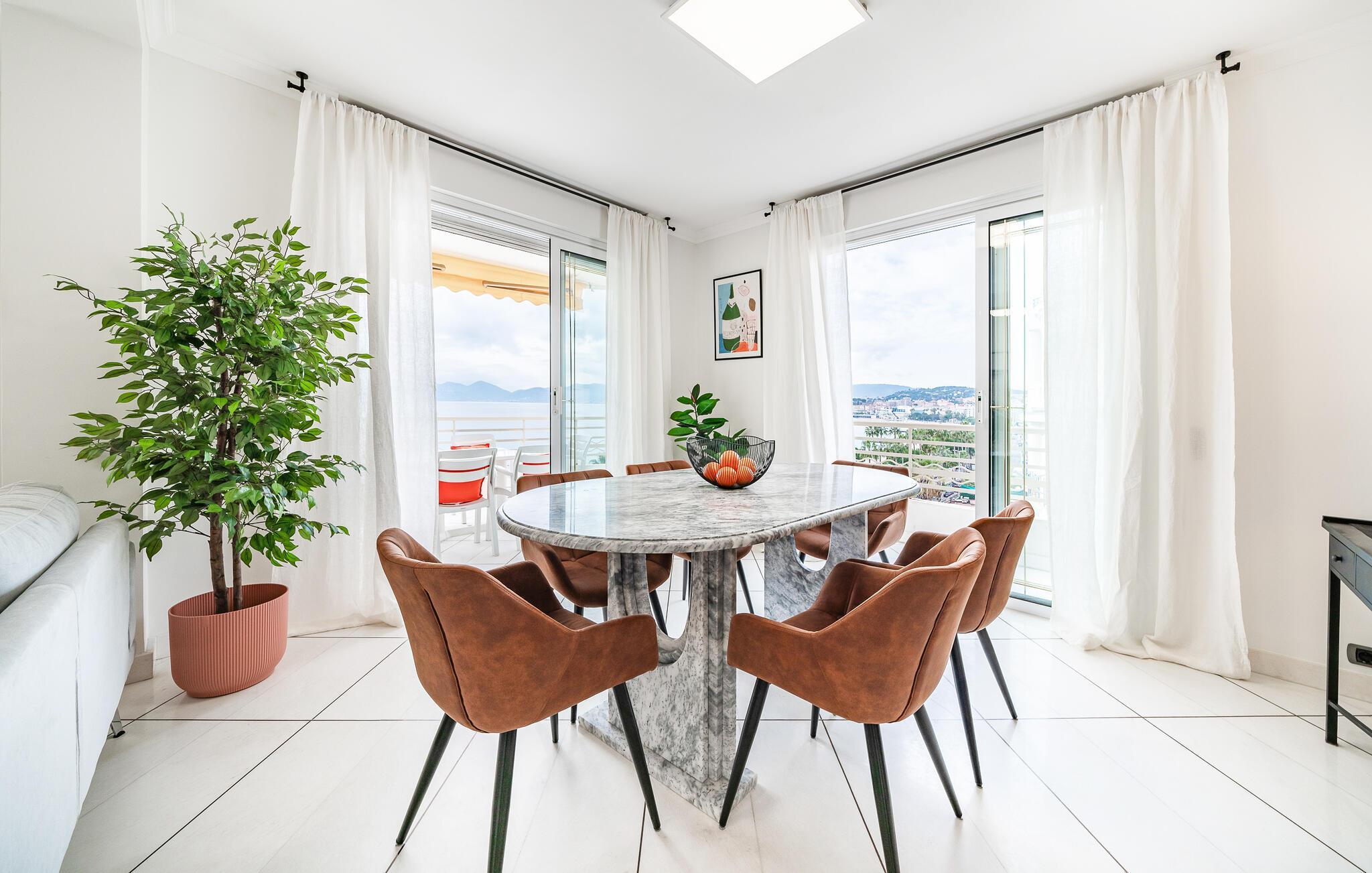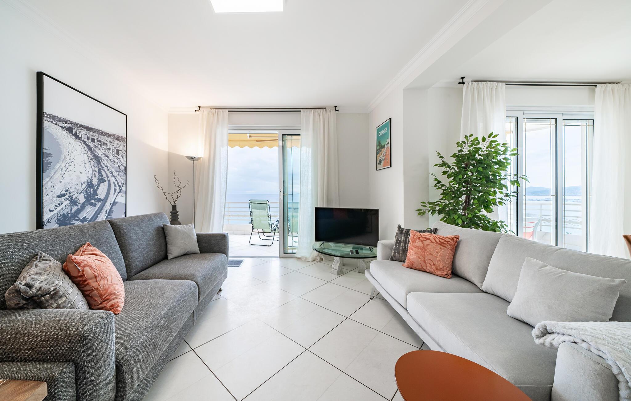 Denne rummelige lejlighed ligger på promenaden i Cannes og tilbyder en vidunderlig panoramaudsigt over kysten og havet.
