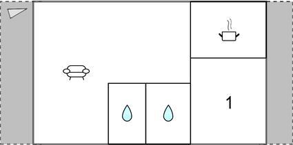 Opholdsstue 20m2 - 2 Sovepladser. (Sofa, madras eller lignende).