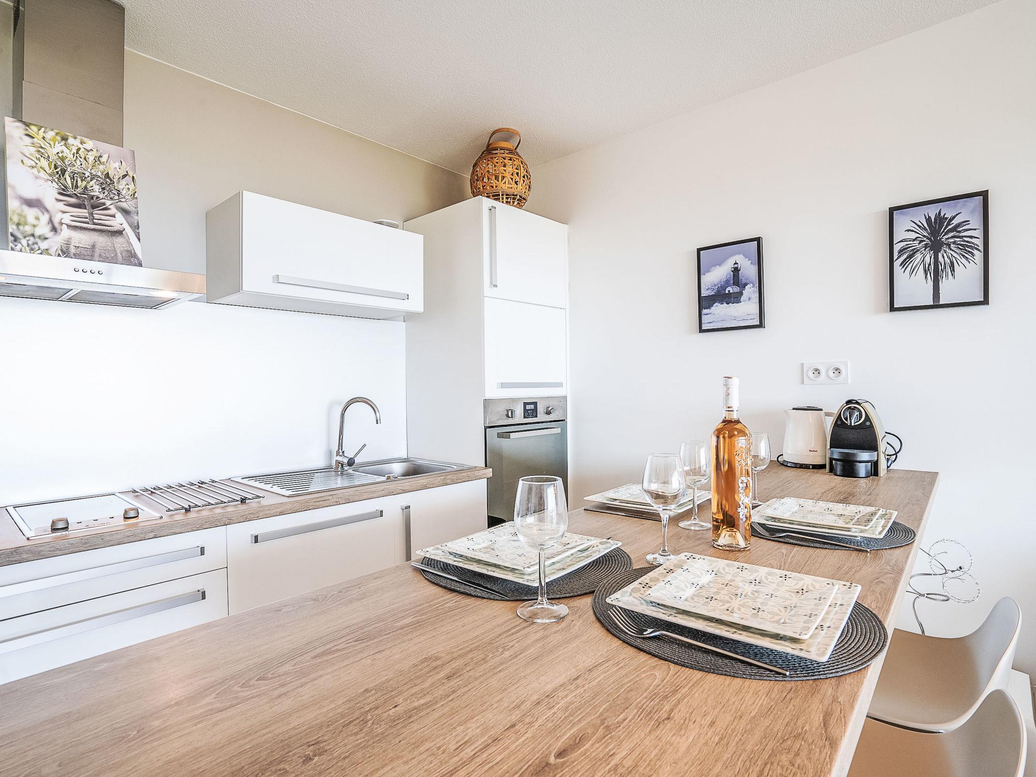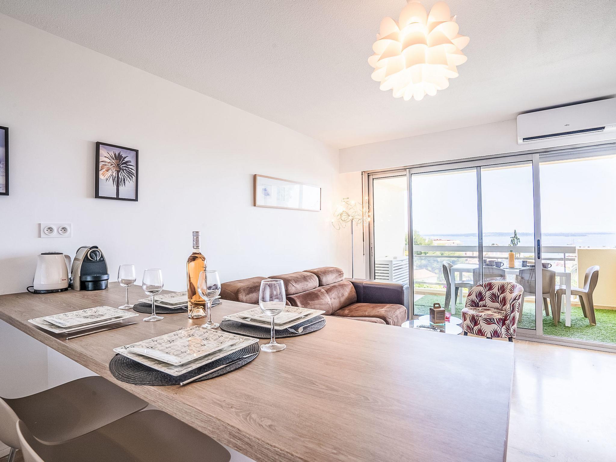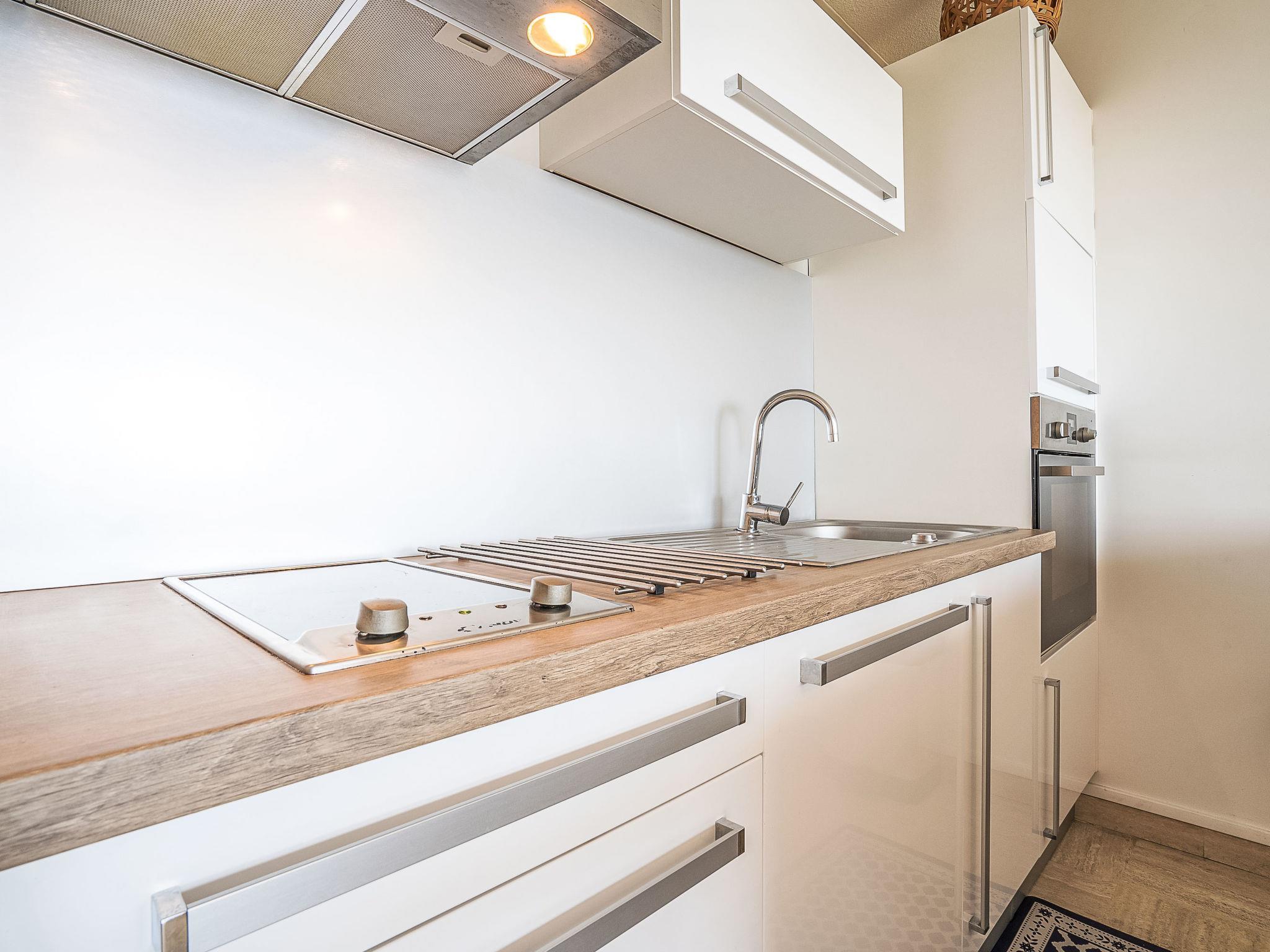 3-room apartment 55 m2 on 3rd floor. Comfortable and beautiful furnishings: living/dining room with TV (flat screen), air conditioning. Exit to the terrace. 1 room with 1 french bed (160 cm, length 200 cm). 1 small room with 1 pull-out bed (2 pers. 2 x 70 cm, length 180 cm). Open kitchen (oven, dishwasher, 2 ceramic glass hob hotplates, freezer). Shower, sep. WC. Electric heating. Terrace 10 m2, south-east facing position. Terrace furniture. Beautiful view of the sea. Facilities: washing machine. Internet (WiFi, free). Garage, height 185 cm. Please note: smoke alarm. Offer by a private individual according to Art. 155, IV of CGI. 06029031258AK