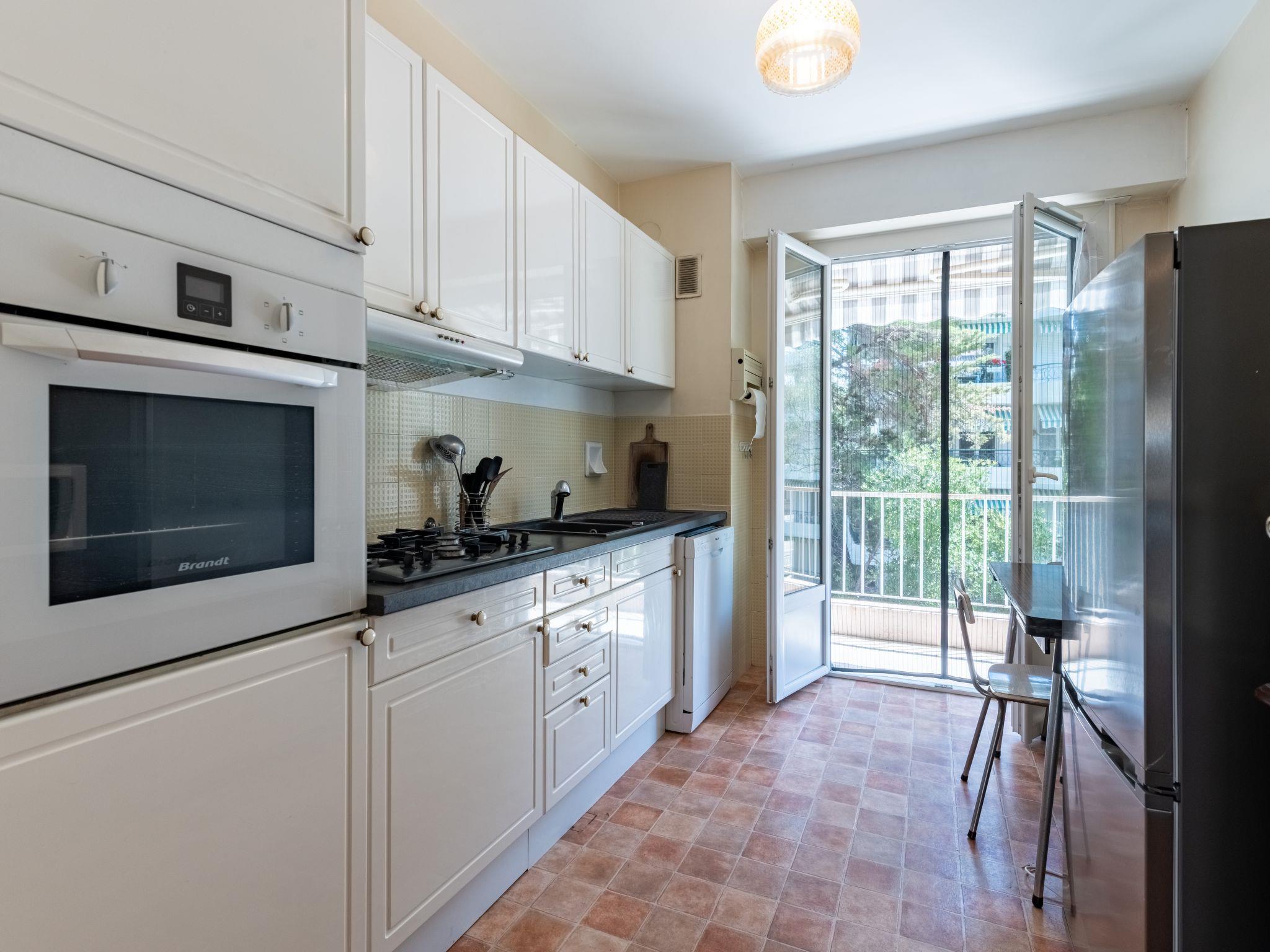 3-room apartment 75 m2 on 3rd floor. Practical furnishings: living/dining room with 1 double sofabed (1 x 140 cm, length 190 cm), TV (flat screen). Exit to the terrace. 1 room with 2 beds (90 cm, length 190 cm), TV and air conditioning. Exit to the terrace. 1 room with 1 french bed (1 x 140 cm, length 190 cm), air conditioning. Exit to the terrace. Kitchen (4 hot plates, oven, dishwasher, toaster, kettle, microwave, freezer, electric coffee machine). Exit to the terrace. Shower/WC, sep. WC. Forced-air heating. Terrace 15 m2, terrace 5 m2. Terrace furniture. Facilities: washing machine. Internet (WiFi, free). Garage. Please note: smoke alarm. Offer by a private individual according to Art. 155, IV of CGI. 06029023669DP