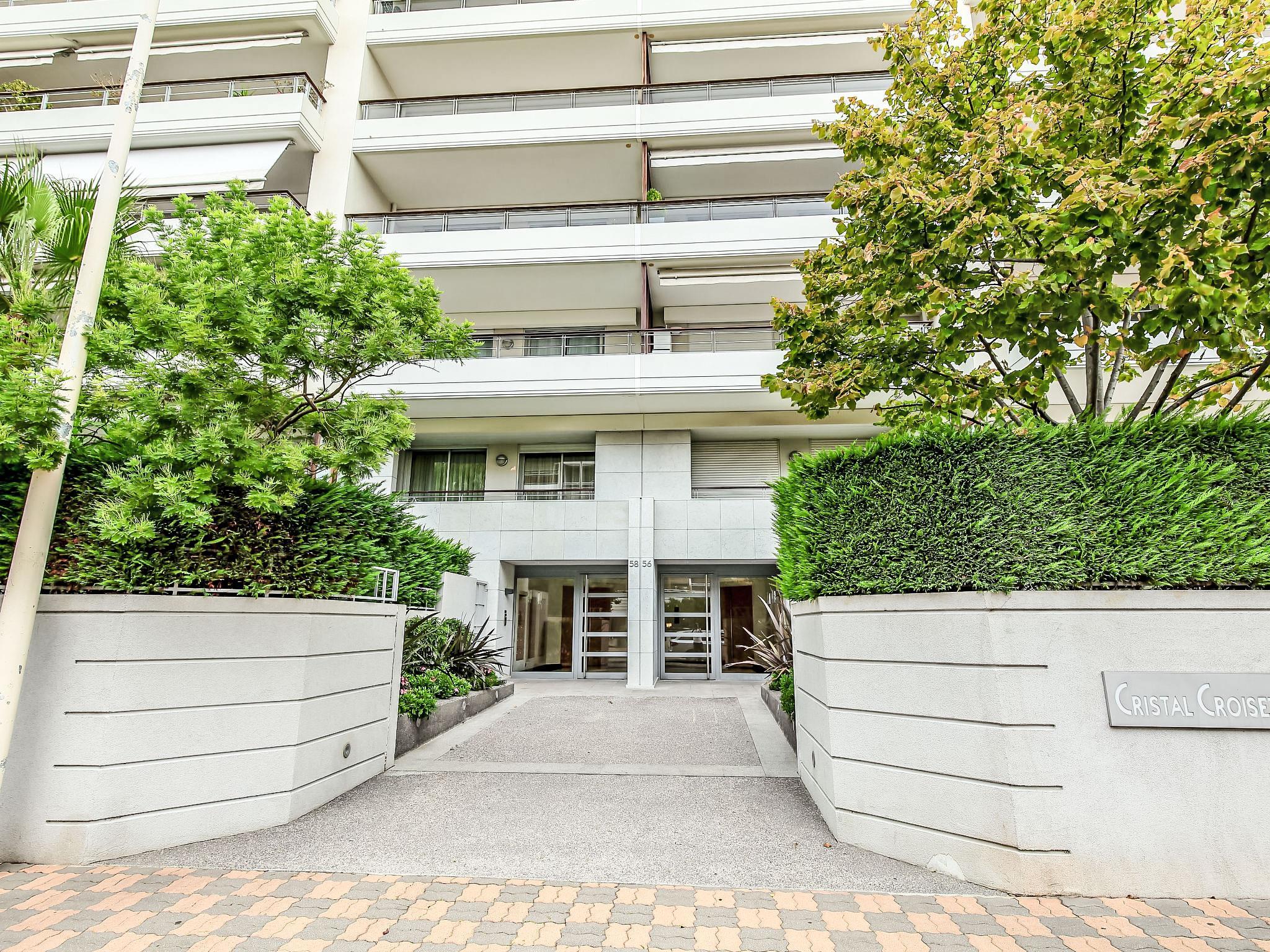 Very modern, beautiful residence "Cristal Croisette", 7 storeys, built in 2005. In the district of Palm Beach 1 km from the centre of Cannes, 200 m from the sea, 200 m from the beach. For shared use: garden (fenced) lawn and flowers. In the complex: lift. Public parking on the road. Shop 300 m, supermarket 400 m, restaurant, bus stop 50 m, railway station "Cannes" 3 km, sandy beach 200 m. Sports harbour 300 m, sailing school. Nearby attractions: Croisette 150 m, Palais des Festivals 2 km. School 100 m.