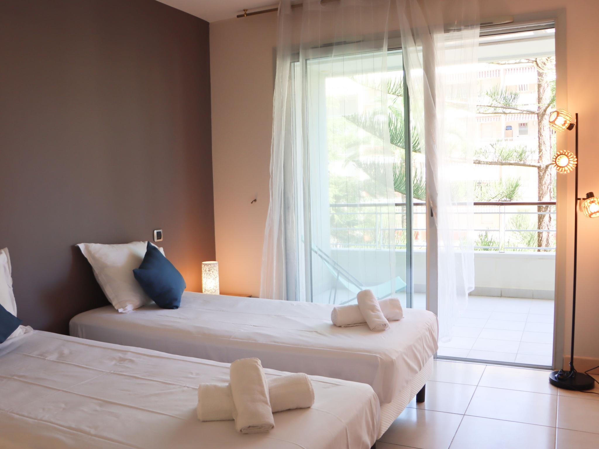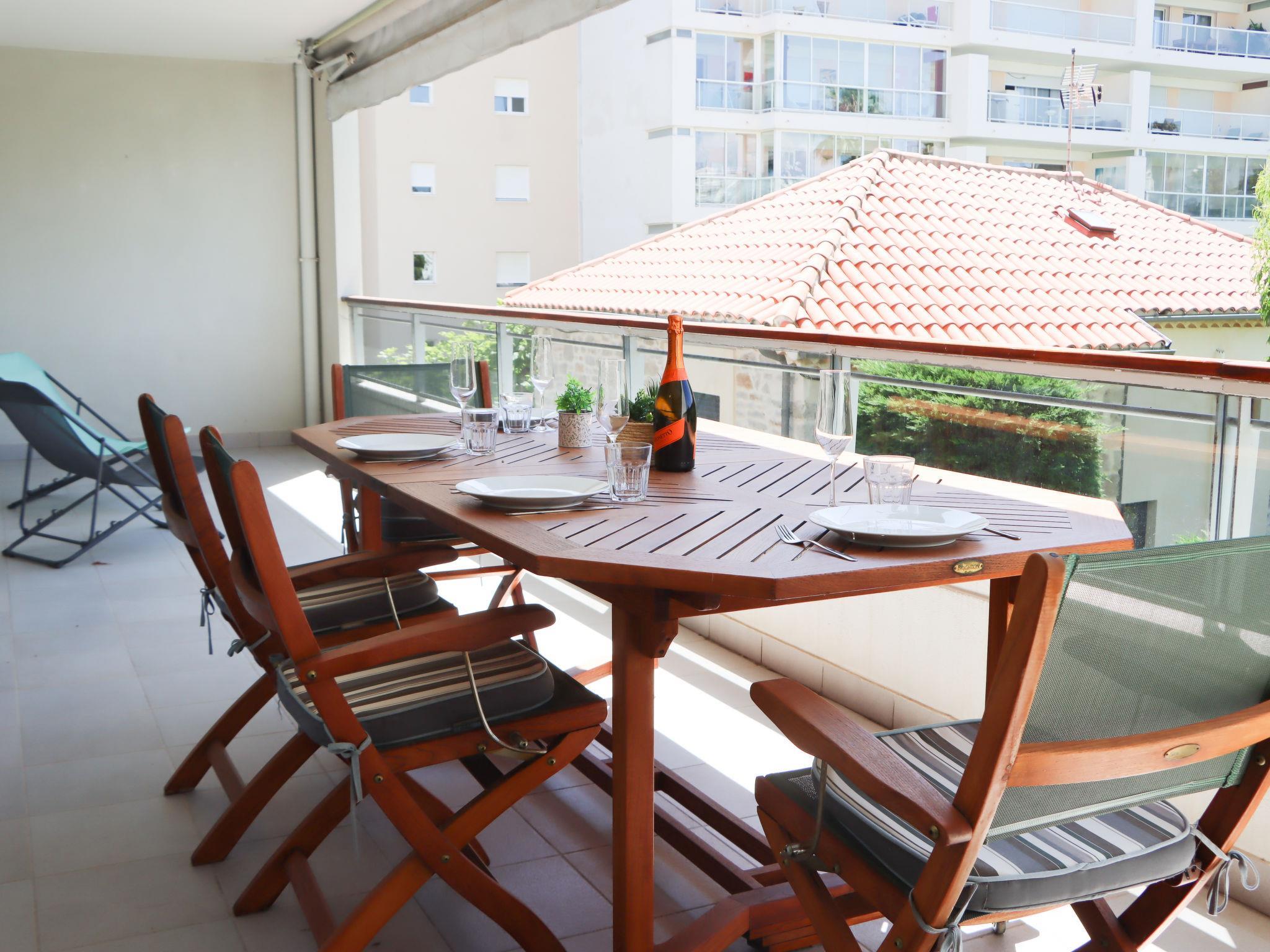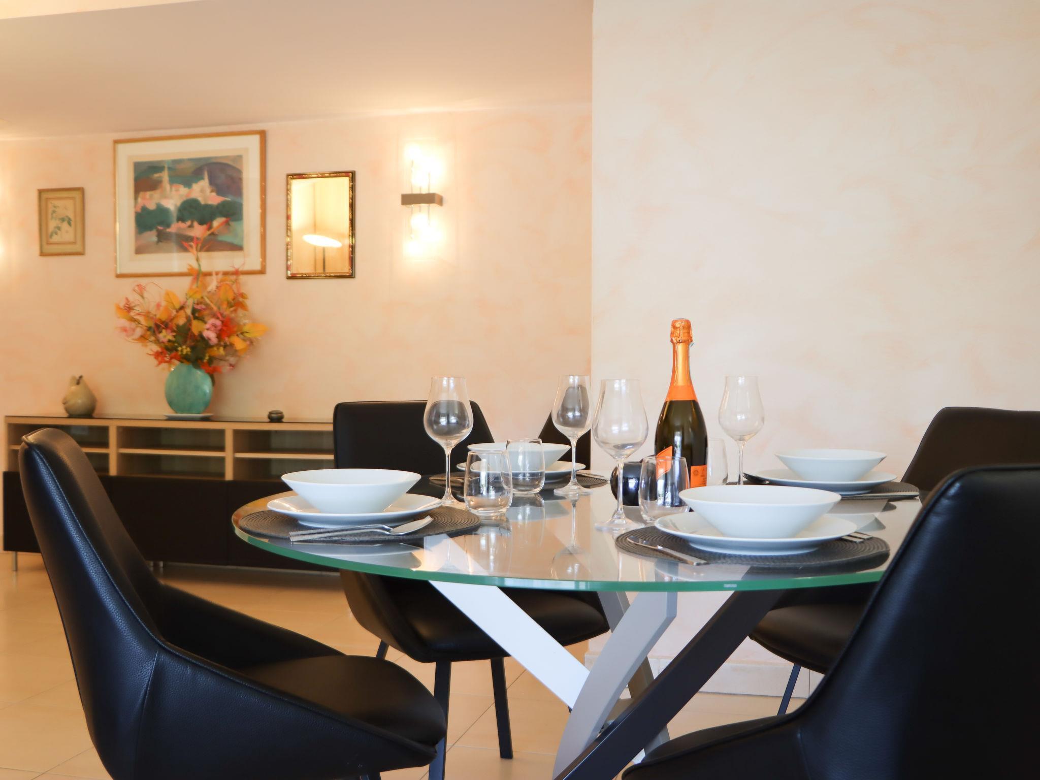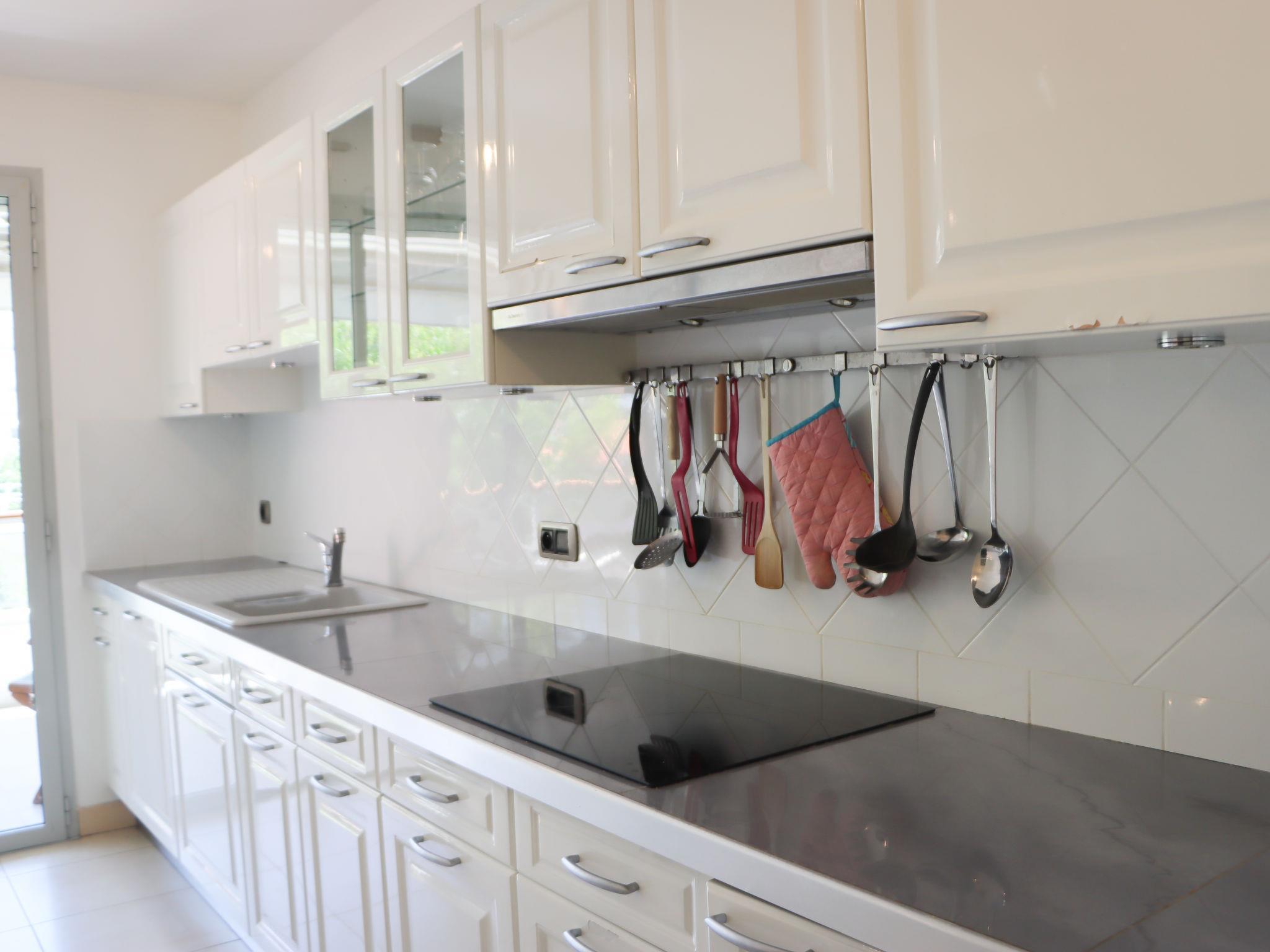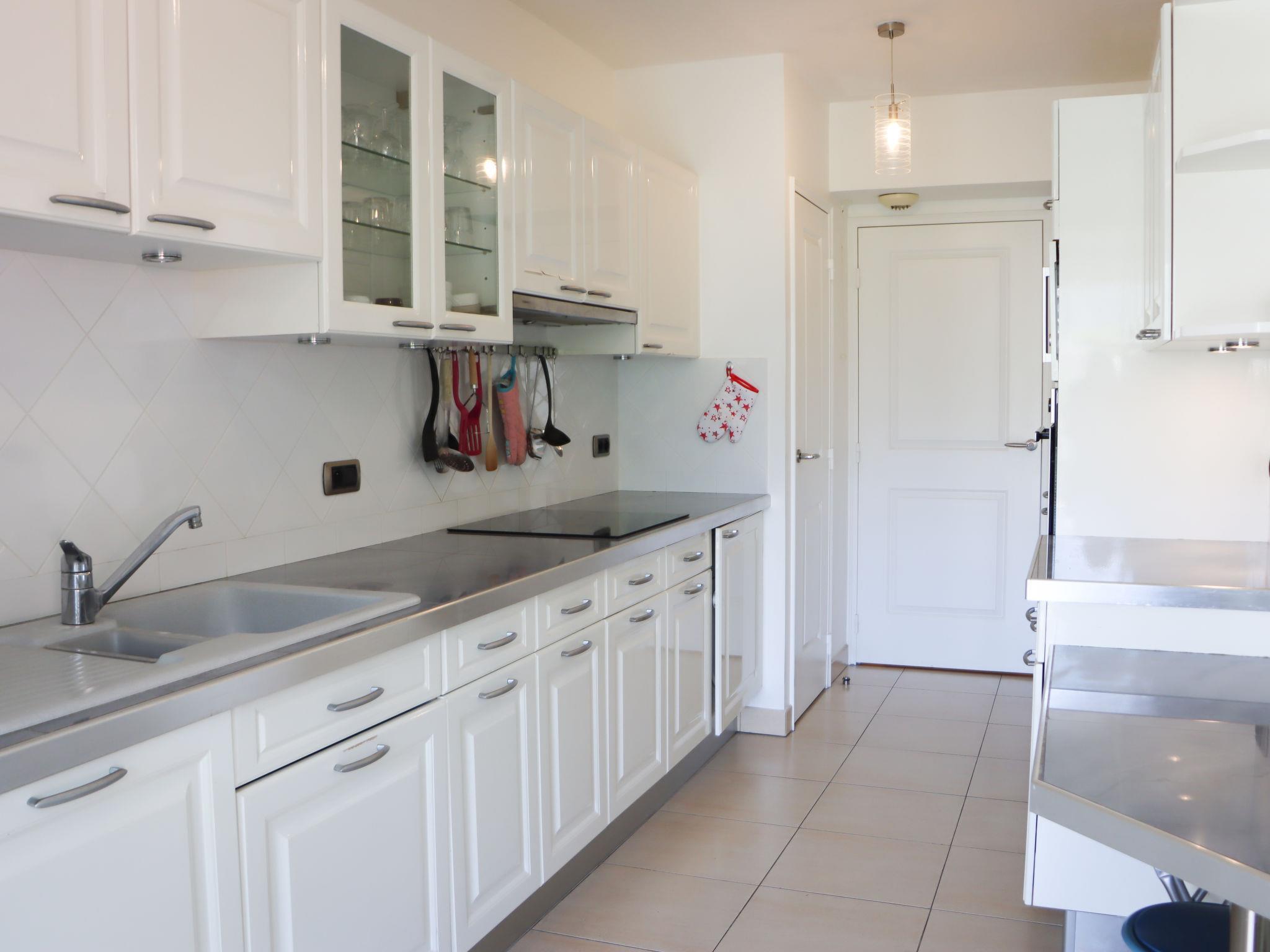 4-room apartment 114 m2 on 2nd floor. Comfortable furnishings: living/dining room with TV (flat screen), air conditioning. Exit to the terrace. 1 room with 1 french bed (160 cm, length 200 cm), air conditioning. Exit to the terrace. 1 room with 2 beds (80 cm, length 190 cm), air conditioning. Exit to the terrace. 1 room with 1 french bed (160 cm, length 200 cm), bathroom and air conditioning. Exit to the terrace. Kitchen (oven, dishwasher, 4 ceramic glass hob hotplates, toaster, kettle, microwave, freezer, electric coffee machine, Capsules for coffee machine (Senseo) extra). Shower/WC, sep. WC. Air-conditioning, forced-air heating. Terrace 30 m2, west facing position terrace 15 m2, east facing position. Terrace furniture. View of the garden. Facilities: washing machine, hair dryer. Internet (WiFi, free). Garage space n 15. Please note: non-smokers only. Smoke alarm. Offer by a private individual according to Art. 155, IV of CGI. 06029031071WF