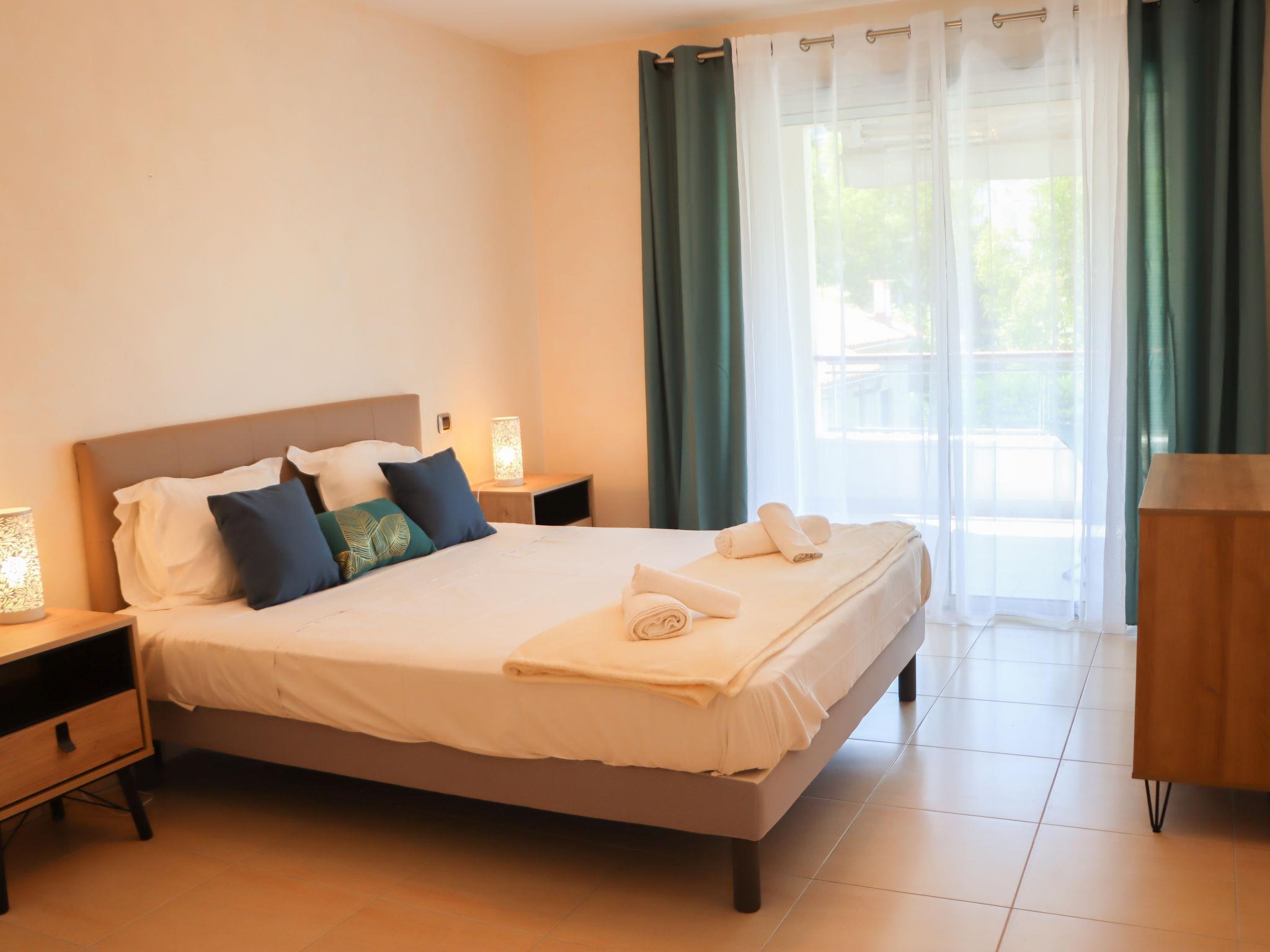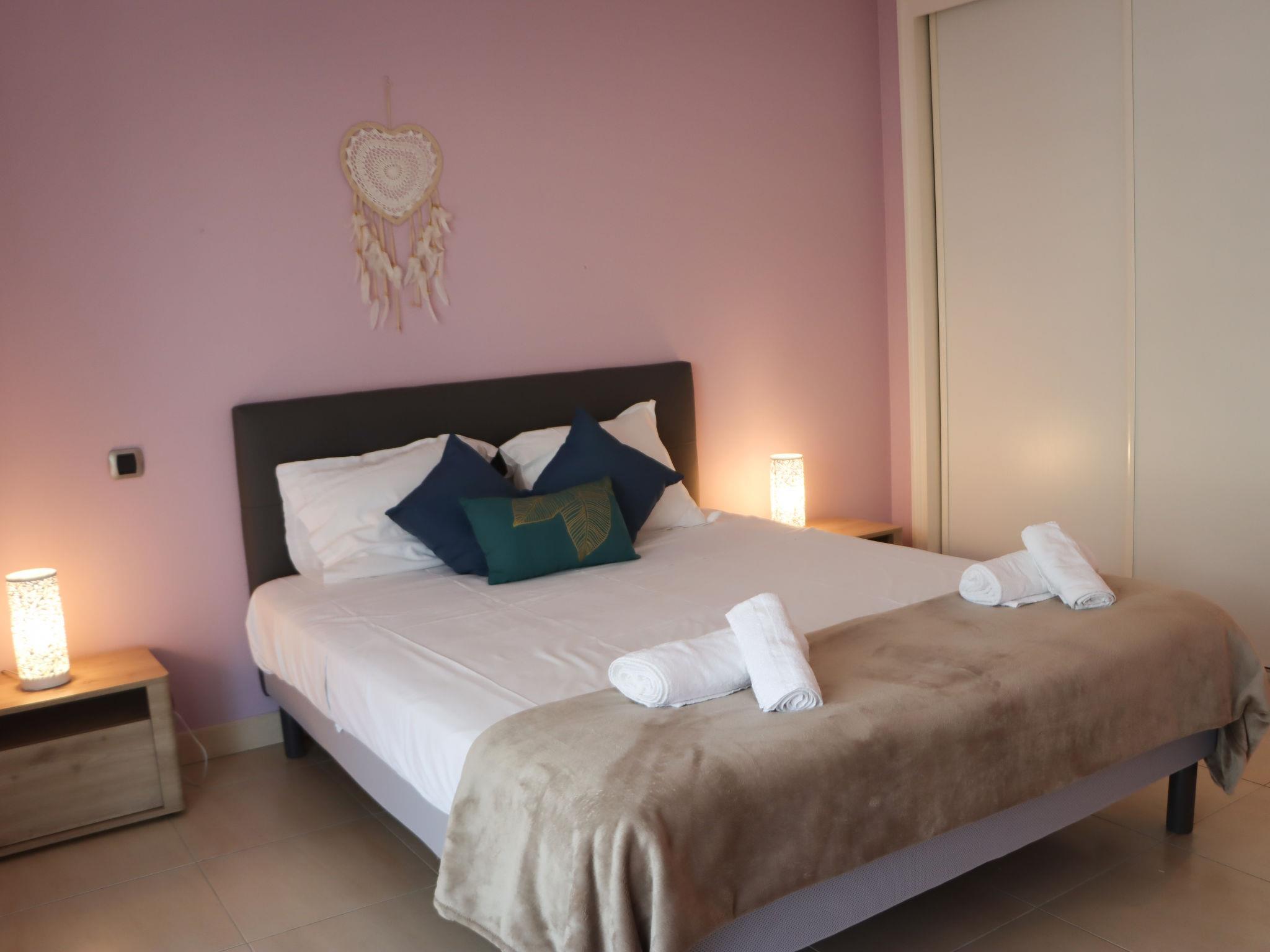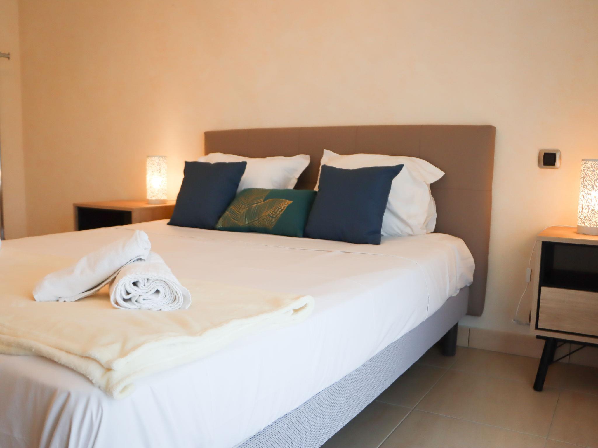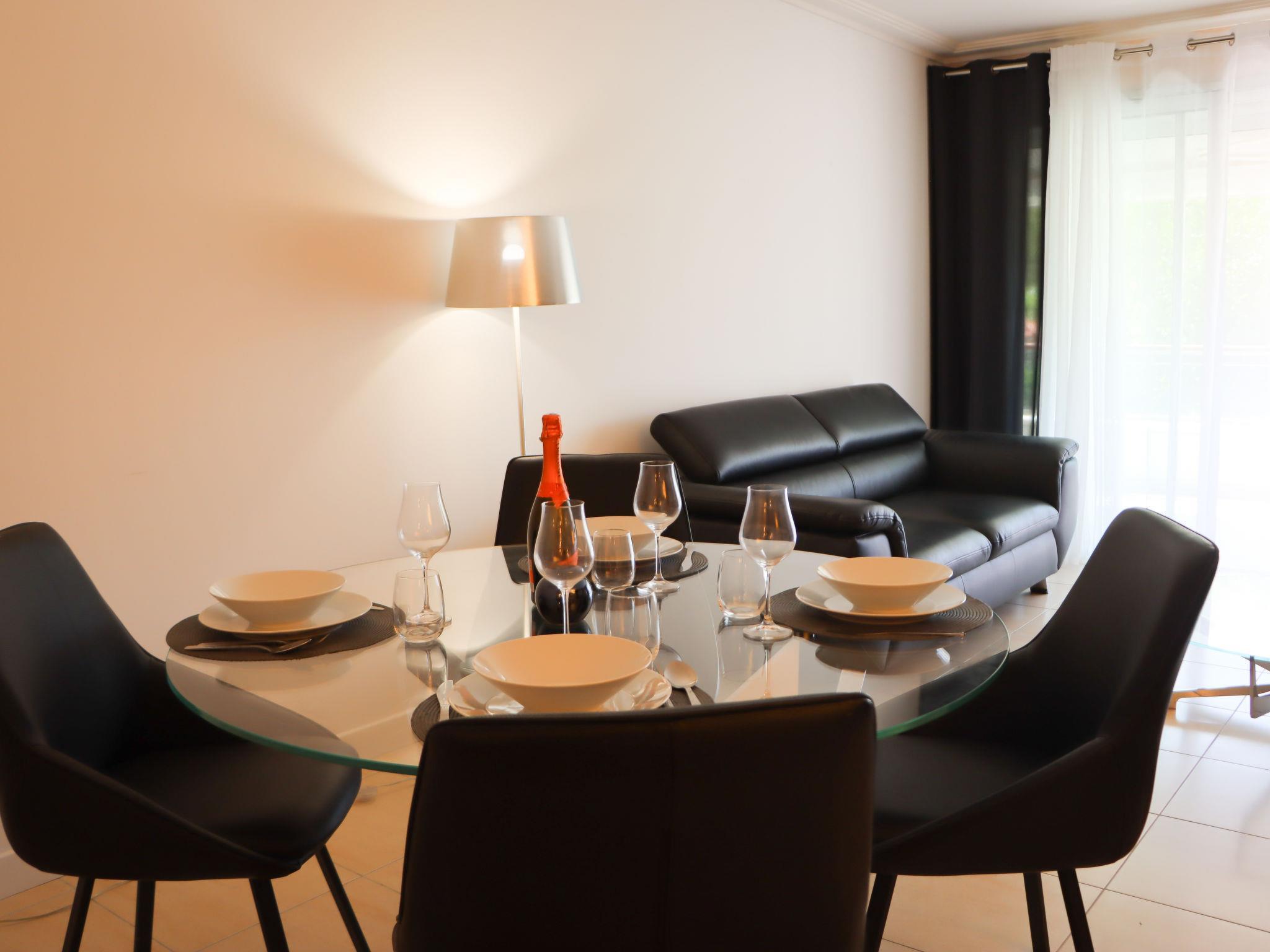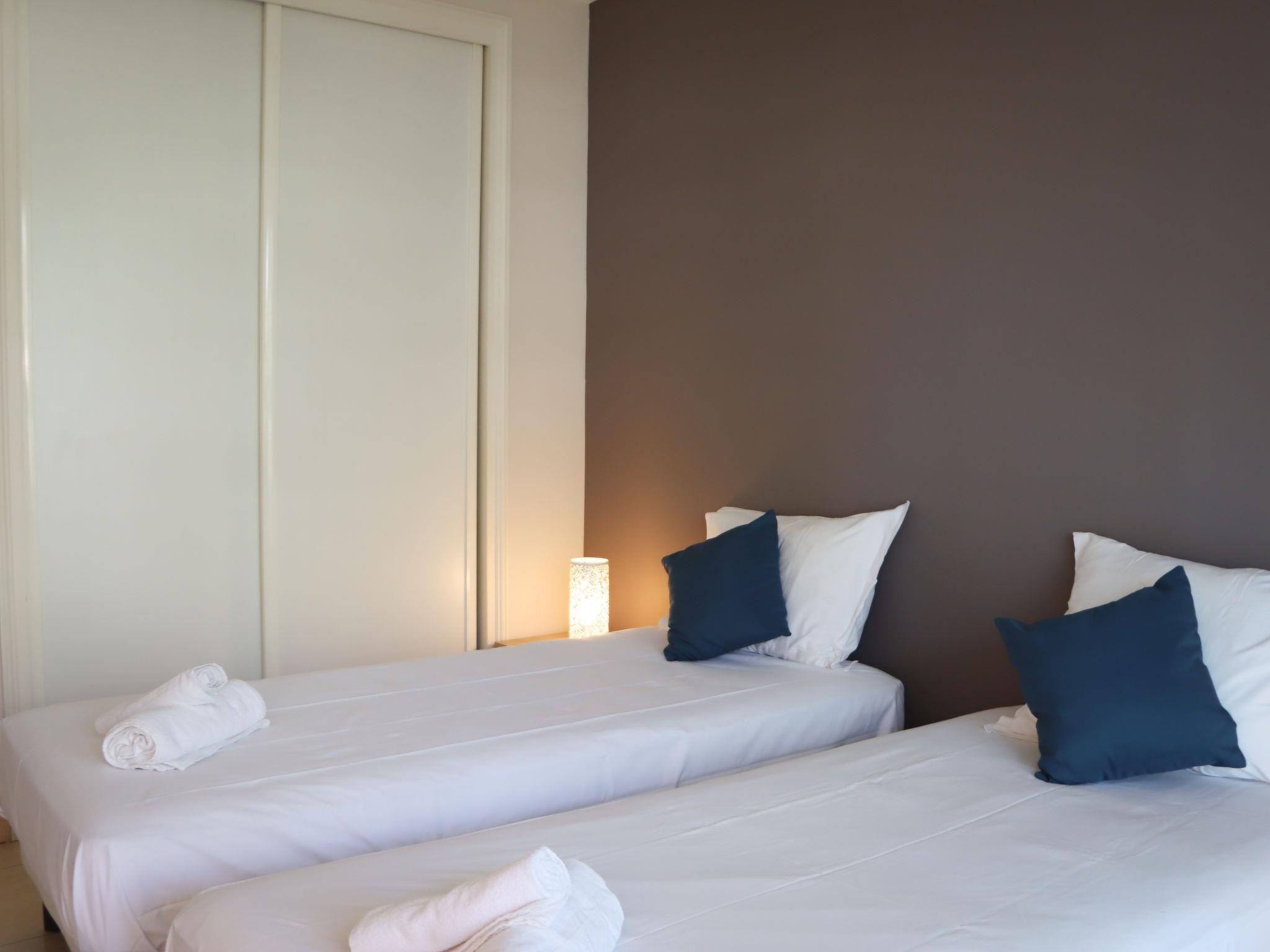 4-room apartment 114 m2 on 2nd floor. Comfortable furnishings: living/dining room with TV (flat screen), air conditioning. Exit to the terrace. 1 room with 1 french bed (160 cm, length 200 cm), air conditioning. Exit to the terrace. 1 room with 2 beds (80 cm, length 190 cm), air conditioning. Exit to the terrace. 1 room with 1 french bed (160 cm, length 200 cm), bathroom and air conditioning. Exit to the terrace. Kitchen (oven, dishwasher, 4 ceramic glass hob hotplates, toaster, kettle, microwave, freezer, electric coffee machine, Capsules for coffee machine (Senseo) extra). Shower/WC, sep. WC. Air-conditioning, forced-air heating. Terrace 30 m2, west facing position terrace 15 m2, east facing position. Terrace furniture. View of the garden. Facilities: washing machine, hair dryer. Internet (WiFi, free). Garage space n 15. Please note: non-smokers only. Smoke alarm. Offer by a private individual according to Art. 155, IV of CGI. 06029031071WF