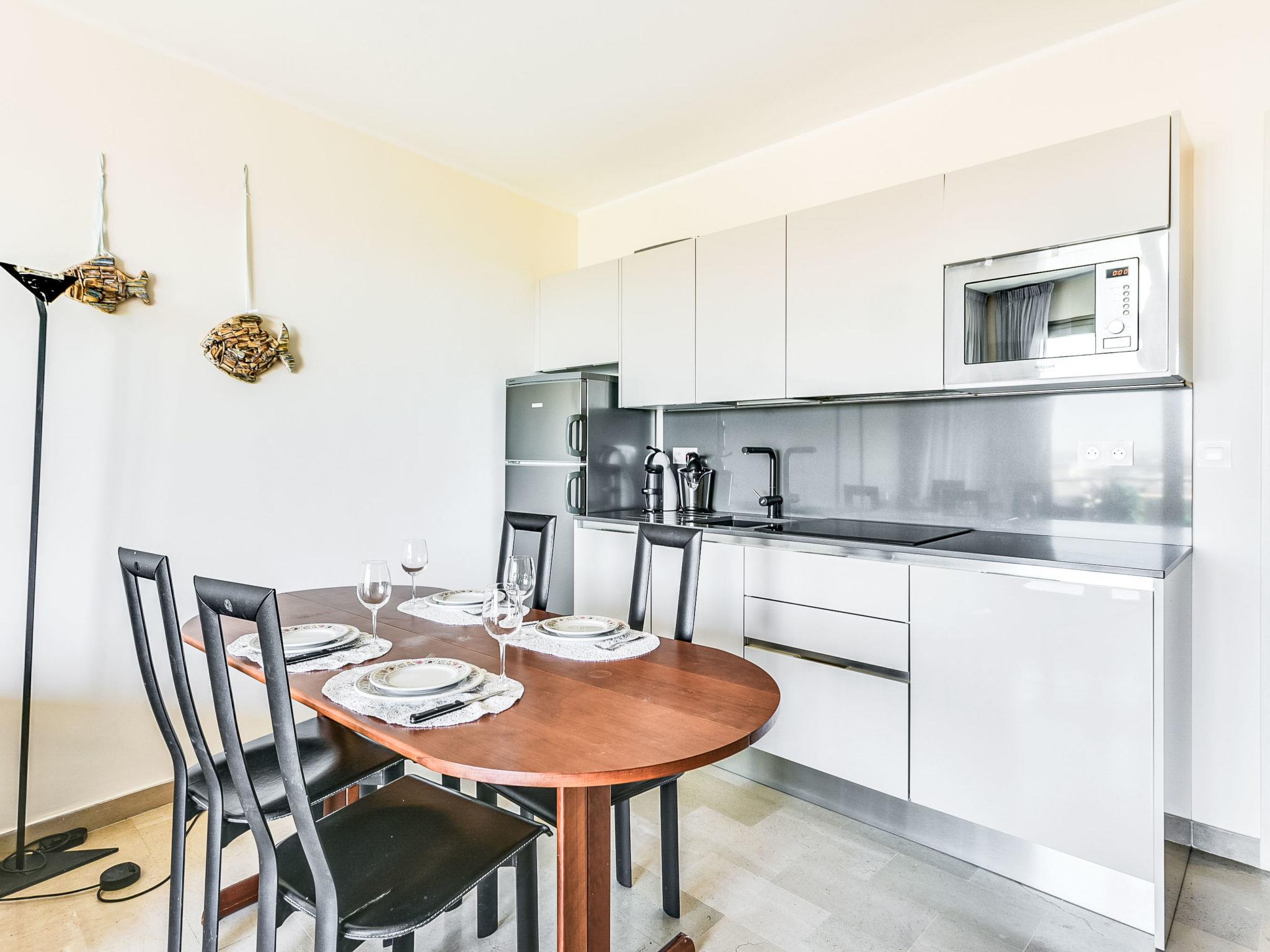 4-room maisonette 90 m2 on 7th floor. Fully, very comfortable and beautiful furnishings: living/dining room with TV (flat screen). Exit to the terrace. 1 room with 1 french bed (160 cm, length 200 cm). Exit to the terrace. 1 room with 1 french bed (140 cm, length 190 cm). Open kitchen (dishwasher, 4 induction hot plates, microwave, electric coffee machine). Bath/bidet/WC. Electric heating, air-conditioning. Upper floor: (spiral staircase) living/dining room. Exit to the terrace. Shower/WC. Terrace 12 m2, large terrace 40 m2. Terrace furniture. Very beautiful view of the sea. Facilities: washing machine. Internet (WiFi, free). Garage, height 180 cm, width 250 cm. Please note: smoke alarm. Please note : the garage is for small cars. 06029008918SB