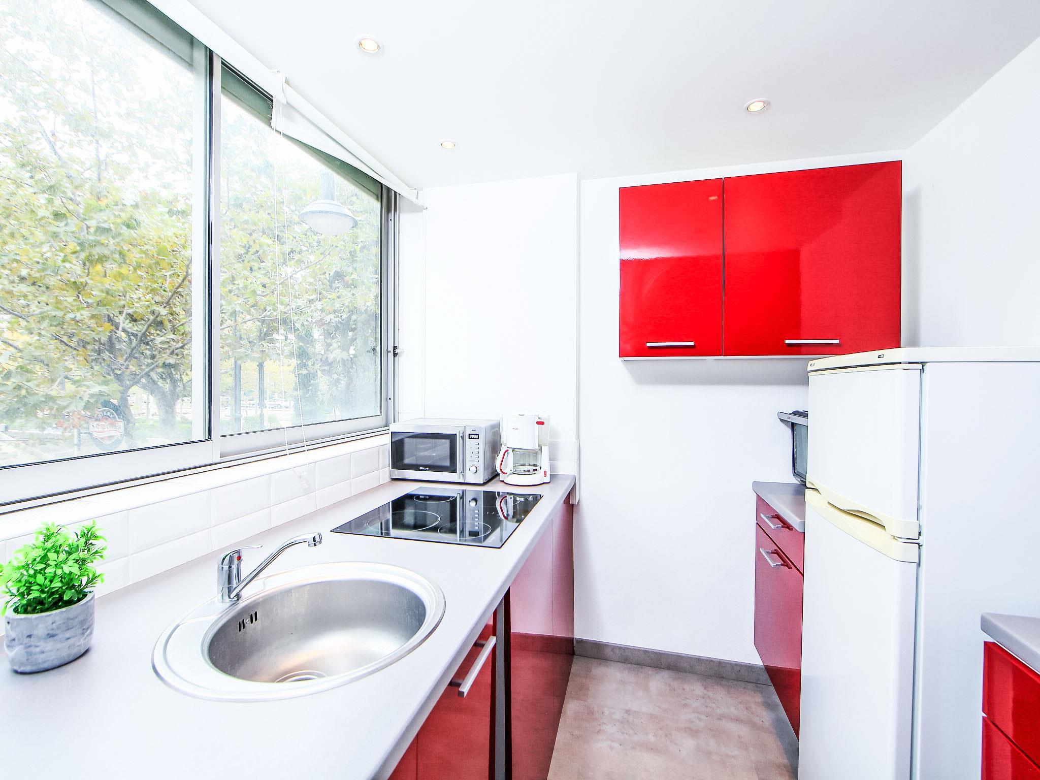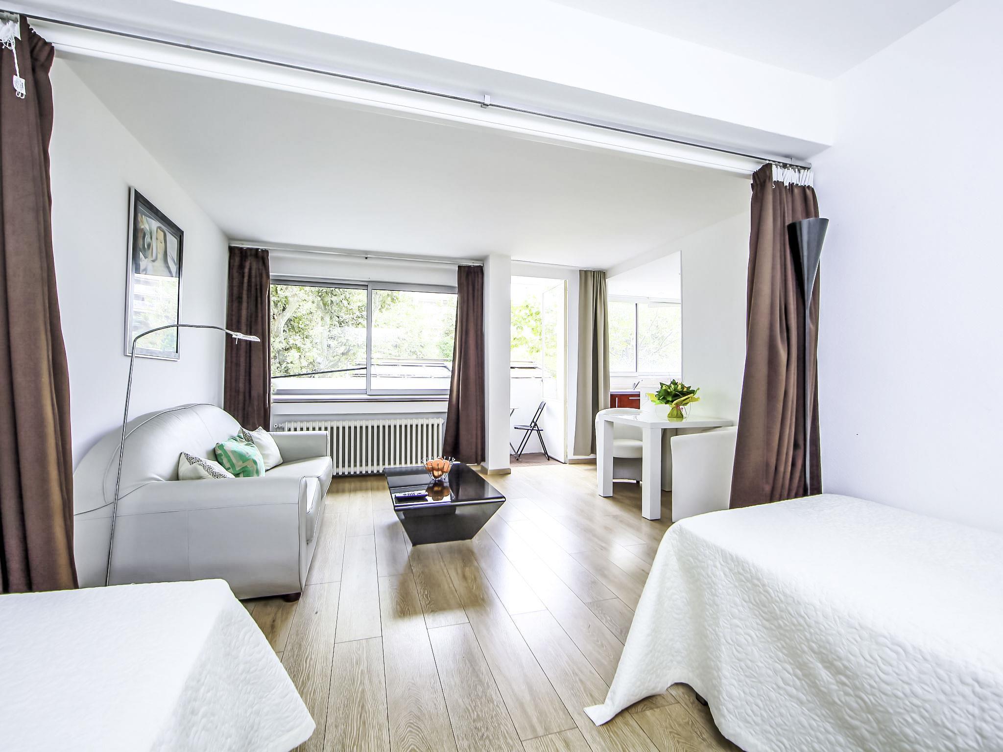 1-room apartment 35 m2 on 1st floor. Partly renovated in 2015, practical and comfortable furnishings: living/dining room with 1 double sofabed (140 cm, length 190 cm), TV and flat screen. Exit to the balcony. Kitchen (oven, dishwasher, 4 ceramic glass hob hotplates, microwave, electric coffee machine). Shower/WC. Air-conditioning, forced-air heating. Small balcony 4 m2. Facilities: washing machine, hair dryer. Internet (WiFi, free). Please note: smoke alarm. 06029000296SB