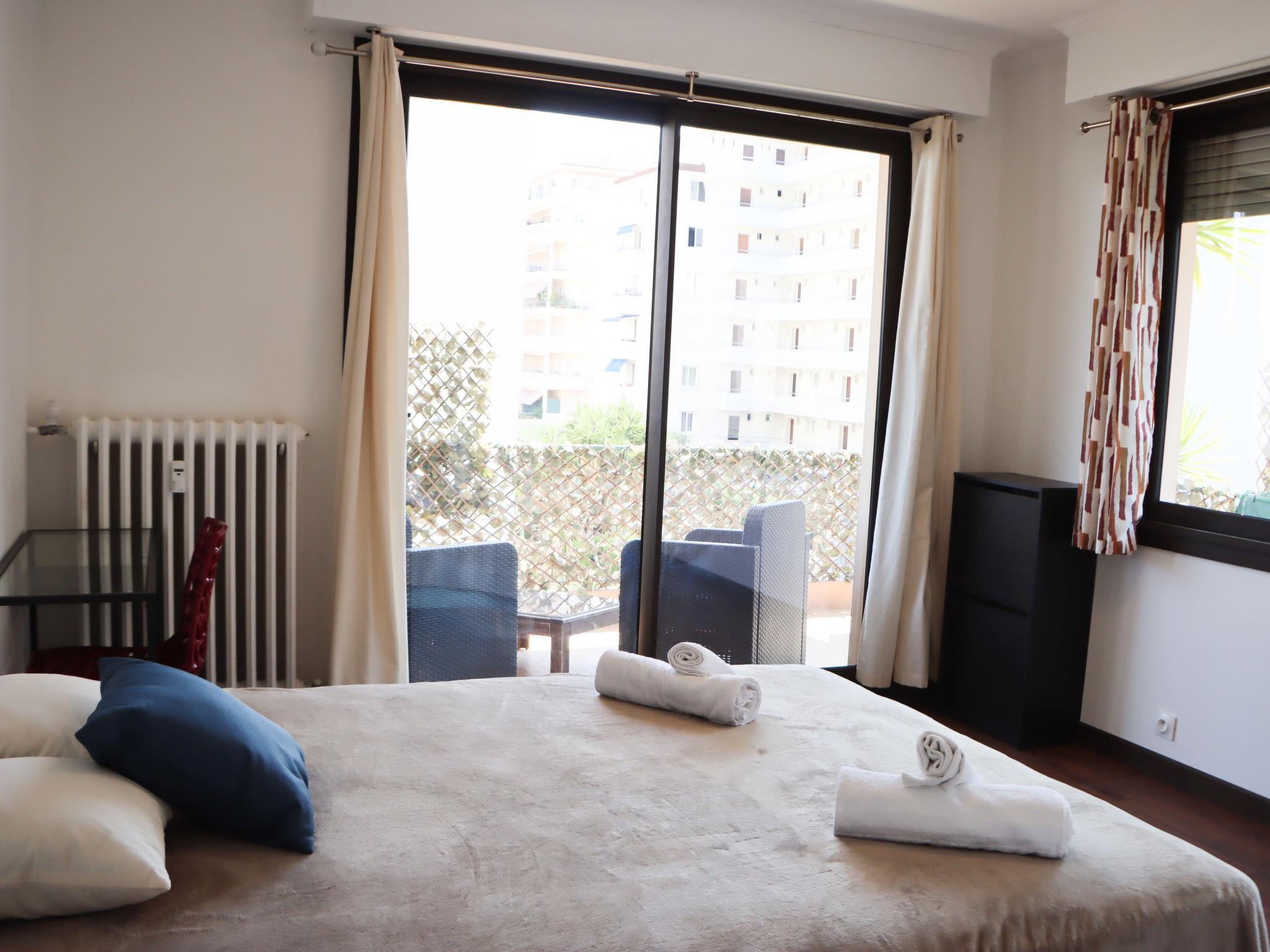 4-room apartment 100 m2 on 2nd floor. Comfortable furnishings: living/dining room with TV (flat screen). Exit to the terrace. 2 rooms, each room with 1 french bed (140 cm, length 190 cm). Exit to the terrace. 1 room with 1 french bed (160 cm, length 200 cm). Kitchen (oven, dishwasher, 3 induction hot plates, toaster, kettle, microwave, electric coffee machine, Capsules for coffee machine (Nespresso) extra). Bath/shower, sep. WC. Terrace 15 m2, south facing position terrace 20 m2, east facing position. Terrace furniture. Facilities: washing machine, hair dryer. Internet (WiFi, free). Please note: TV only FR. Smoke alarm. Offer by a private individual according to Art. 155, IV of CGI. 06030 000623 PQ