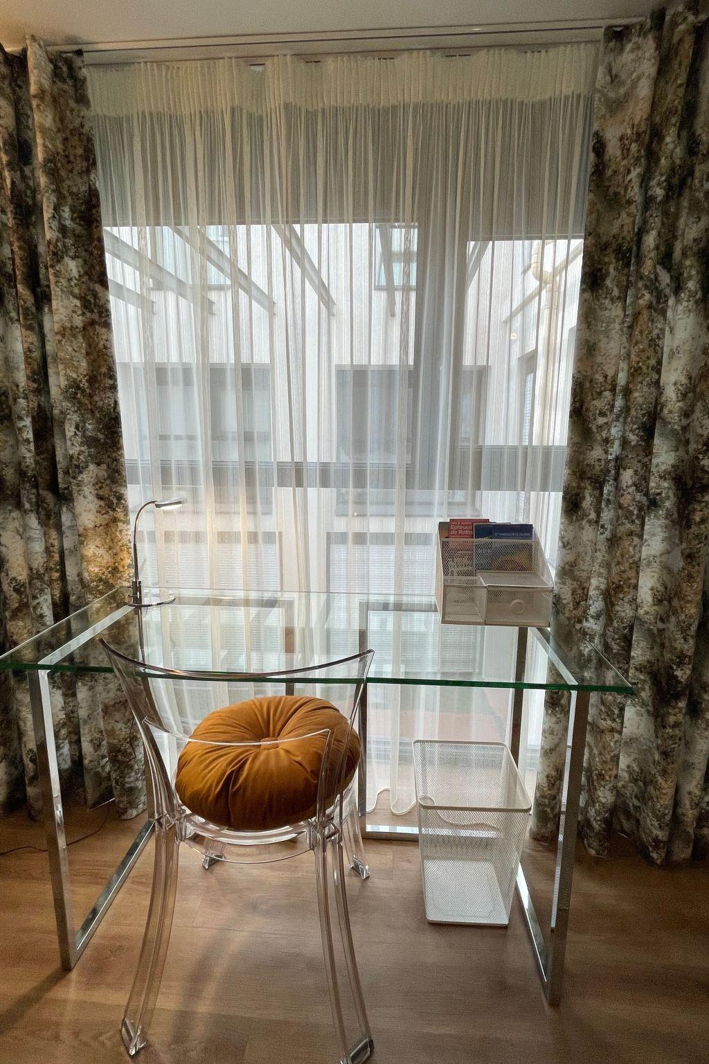 **The outdoor area radiates tranquillity: the view from the floor-to-ceiling windows falls onto the leafy inner courtyard, which provides a peaceful retreat. Access to the flat is via an imposing marble staircase. The issue of parking has also been resolved: There are two modern, clean multi-storey car parks just a few metres away, as well as free street parking nearby, should luck be on your side.