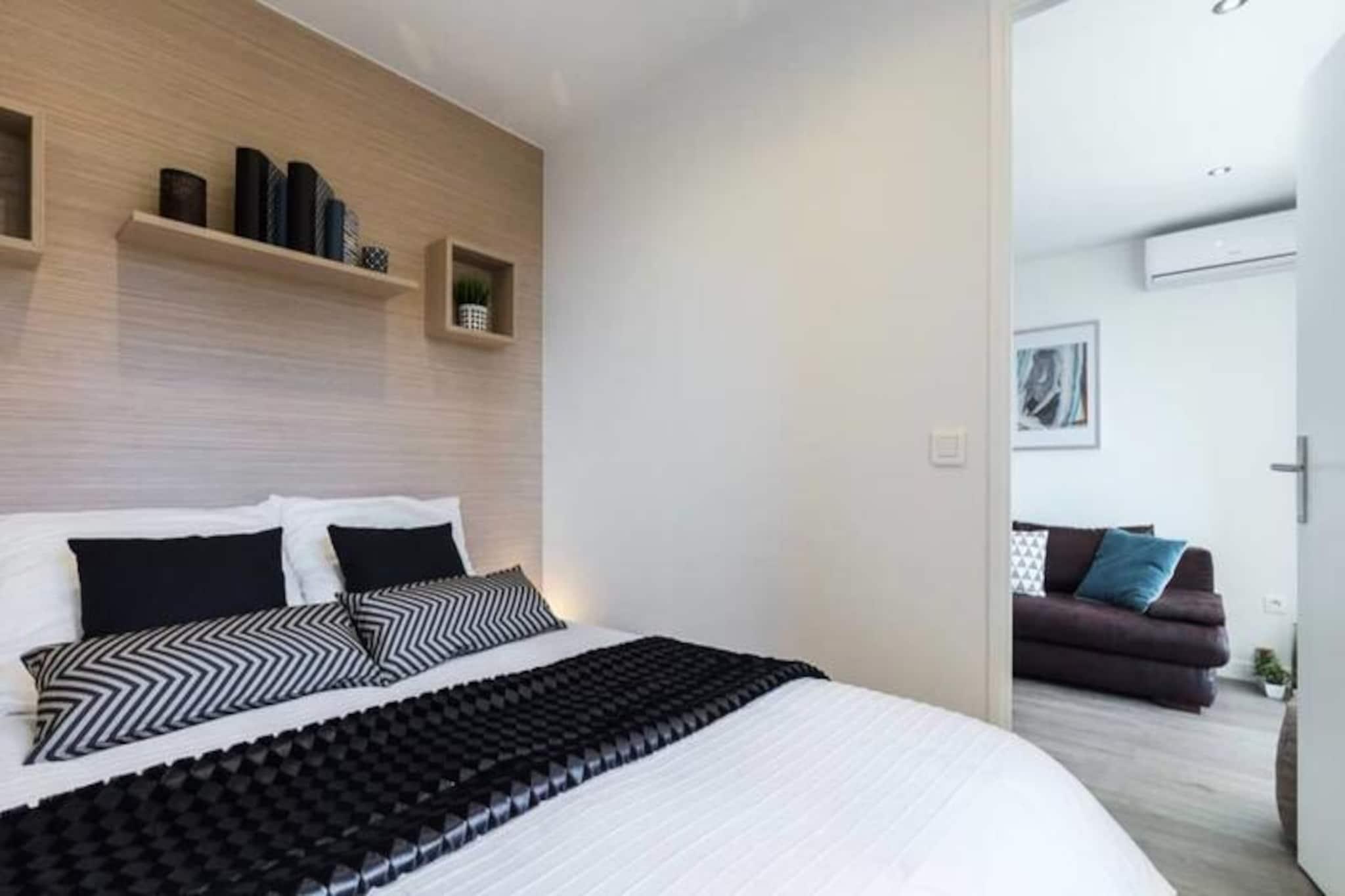 Vågn op til den blide lyd af middelhavsbølger og sol dig i den varme glød fra Côte d'Azur-solen i denne smukt renoverede etværelseslejlighed i Cannes. Med sit moderne design, havudsigt og adgang til en funklende fælles swimmingpool inviterer denne ejendom dig til at opleve den franske riviera med stil. Uanset om du nipper til kaffe på den solrige terrasse eller nyder en forfriskende dukkert, føles hvert øjeblik her som en luksuriøs flugt. Indenfor er lejligheden omhyggeligt designet til komfort og bekvemmelighed. Den lyse opholdsstue, oplyst af store karnapvinduer, har et Smart TV og en sovesofa til to ekstra gæster. Det åbne køkken, udstyret med moderne apparater, herunder en opvaskemaskine, gør madlavning til en leg. Det hyggelige soveværelse med sin bløde dobbeltseng åbner også direkte ud til terrassen og tilbyder en problemfri inde-udendørs opholdsoplevelse. Et elegant brusebad og separat toilet fuldender rummet og sikrer, at dit ophold bliver lige så behageligt, som det er mindeværdigt. Træd udenfor, og du vil finde dig selv perfekt placeret til at udforske Cannes. De ikoniske strande ved La Croisette, det pulserende bycentrum og den historiske charme ved Le Suquet er alle inden for rækkevidde. Gå en tur langs promenaden, nyd gourmetmad, eller tag en kort togtur for at opdage den franske rivieras perler. For filmentusiaster er Palais des Festivals et must-see, mens shoppere vil nyde de nærliggende butikker og markeder. Med sikker parkering, højhastigheds-Wi-Fi og concierge-service til din rådighed er denne lejlighed mere end bare et sted at bo - det er din port til Cannes' glamour og skønhed. Uanset om du er her for afslapning eller eventyr, lover dette tilflugtssted ved havet en uforglemmelig ferie.