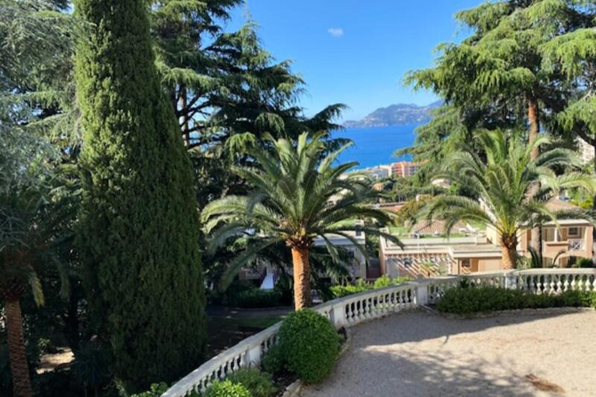 Beliggende i "La Croix des Gardes"-kvarteret i Cannes La Bocca, kun 2 km fra centrum og Croisette, tilbyder denne bolig en charmerende og hyggelig ramme for familier. Beliggende i en 5 hektar stor eksotisk park med palmer og århundredgamle træer, tilbyder boligen en grøn oase med panoramaudsigt over havet fra terrassen ved swimmingpoolen. Nærliggende attraktioner omfatter den glamourøse Croisette, berømt for sine luksusbutikker, restauranter og Palais des Festivals, hjemsted for filmfestivalen i Cannes. Den gamle bydel i Le Suquet byder på maleriske gader og en fantastisk udsigt, mens Marché Forville byder på friske råvarer og lokale delikatesser. Vandski er tilgængelig 800 meter væk (mod ekstra gebyr). Indkvarteringen inkluderer en stue, to soveværelser, et køkkenområde, to badeværelser og et toilet og kan rumme op til syv personer. Nyd roen og den fantastiske udsigt over havet og den frodige vegetation fra denne rummelige og lyse lejlighed. For nemheds skyld tilbyder boligen også parkering, Wi-Fi-adgang (ekstra gebyr) og forskellige valgfrie tjenester såsom babysæt og sengetøj (ekstra gebyr). De pulserende omgivelser og smukke omgivelser gør dette til en ideel destination for en mindeværdig ferie i Cannes.