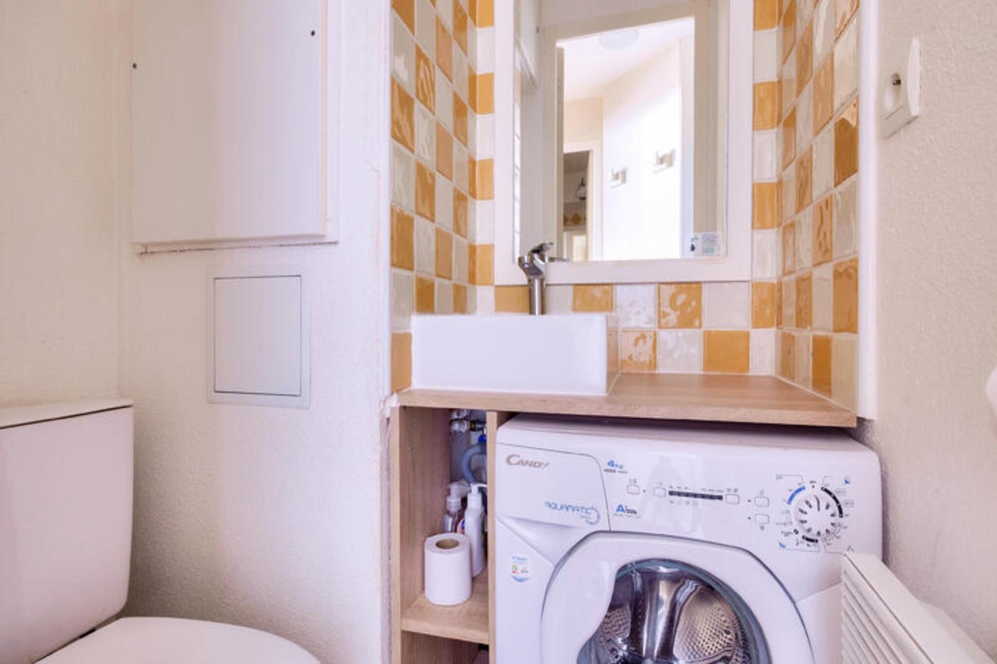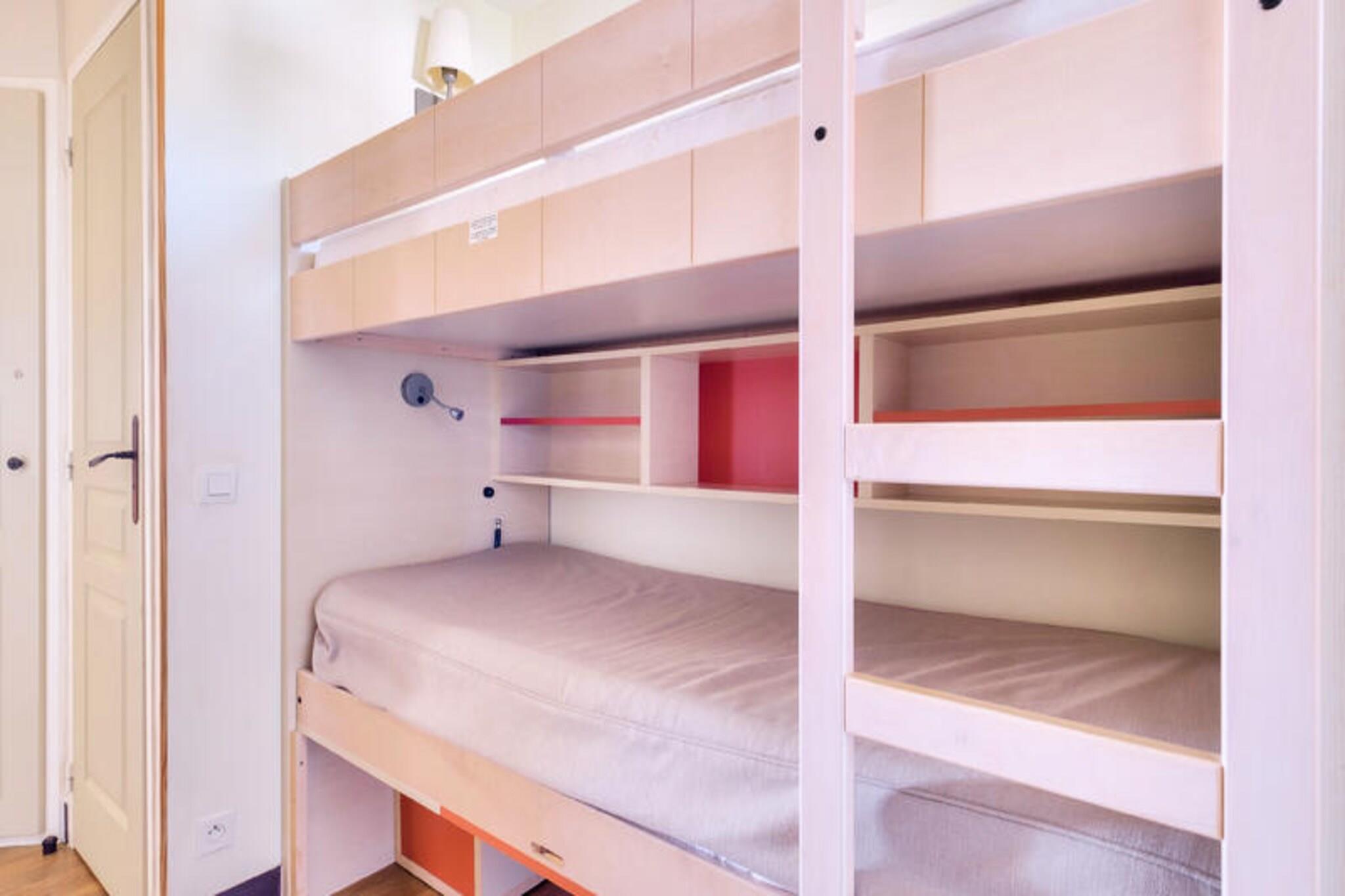 En ejendom, der tilbyder et afslappende tilflugtssted, denne feriebolig er perfekt til familier eller små grupper, der komfortabelt kan rumme op til seks gæster. Rummet omfatter et soveværelse med dobbeltseng, et kabineområde med køjesenge og en stue med en trillesovesofa. Lejligheden med aircondition har en overdækket balkon mod sydøst, som giver en fantastisk havudsigt. Gæsterne kan nyde gratis aktiviteter såsom bordtennis og adgang til et legeområde. Yderligere faciliteter omfatter en infinity-swimmingpool (åben sæsonbestemt) og tennisbaner, mens nærliggende aktiviteter såsom vandski og golf er tilgængelige mod et ekstra gebyr. Beliggende i det maleriske "La Croix des Gardes"-distrikt, er denne bolig omgivet af en frodig fem hektar stor park med palmer og århundredgammelt grønt. Kun 2 km fra Cannes' travle centrum og den ikoniske Croisette tilbyder det en rolig base for at udforske. Sandstranden ligger 800 meter væk, hvilket gør den ideel til udflugter ved havet. Mens ejendommen er godt forbundet til offentlig transport, anbefales det at have et køretøj for nemheds skyld. Placeringen giver nem adgang til nærliggende attraktioner, hvilket sikrer en blanding af afslapning og udforskning. Lejligheden er udstyret med et halvåbent køkken med moderne apparater, ideelt til at tilberede måltider under dit ophold. Yderligere bekvemmeligheder inkluderer Wi-Fi-adgang, en overdækket parkeringsplads og valgfri babysæt til familier. Gæster kan også benytte sig af tjenester som leje af sengetøj og slutrengøring for en problemfri ferie. Bemærk, at kæledyr er velkomne mod et ekstra gebyr, hvilket øger fleksibiliteten af ??dit ophold i denne velholdte og fuldt udstyrede bolig.