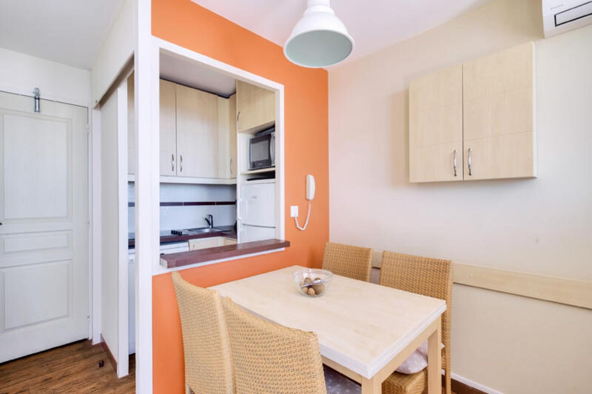 Beliggende i det rolige "La Croix des Gardes"-distrikt i Cannes La Bocca, tilbyder denne charmerende etværelses lejlighed det perfekte tilflugtssted midt i frodige omgivelser. Ejendommen ligger i en fem hektar stor park med palmer og århundredgammelt grønt og kombinerer ro med tilgængelighed, kun 2 km fra det pulserende bycentrum og Croisette. Fra dens sydøstvendte balkon kan du nyde en flot udsigt over Middelhavet, suppleret af den fantastiske terrasse med infinity-pool, der er ideel til afslapning. Denne 34 kvadratmeter store lejlighed ligger på 4. sal i en sikker bolig med elevator. Indenfor inkluderer det airconditionerede opholdsrum et halvåbent køkken, en komfortabel stue med en sovesofa, et hyggeligt soveværelse med en dobbeltseng, et komplet badeværelse og et separat toilet. Den overdækkede altan giver et roligt rum til morgenkaffe eller aftenvin. Boligen har rekreative faciliteter såsom et legeområde, tennisbane og bordtennisbord. Stranden ligger 800 meter væk, ideel til solbadning eller vandsport. Udforsk Cannes' butikker, fine restauranter og kulturelle vartegn for et uforglemmeligt ophold.
