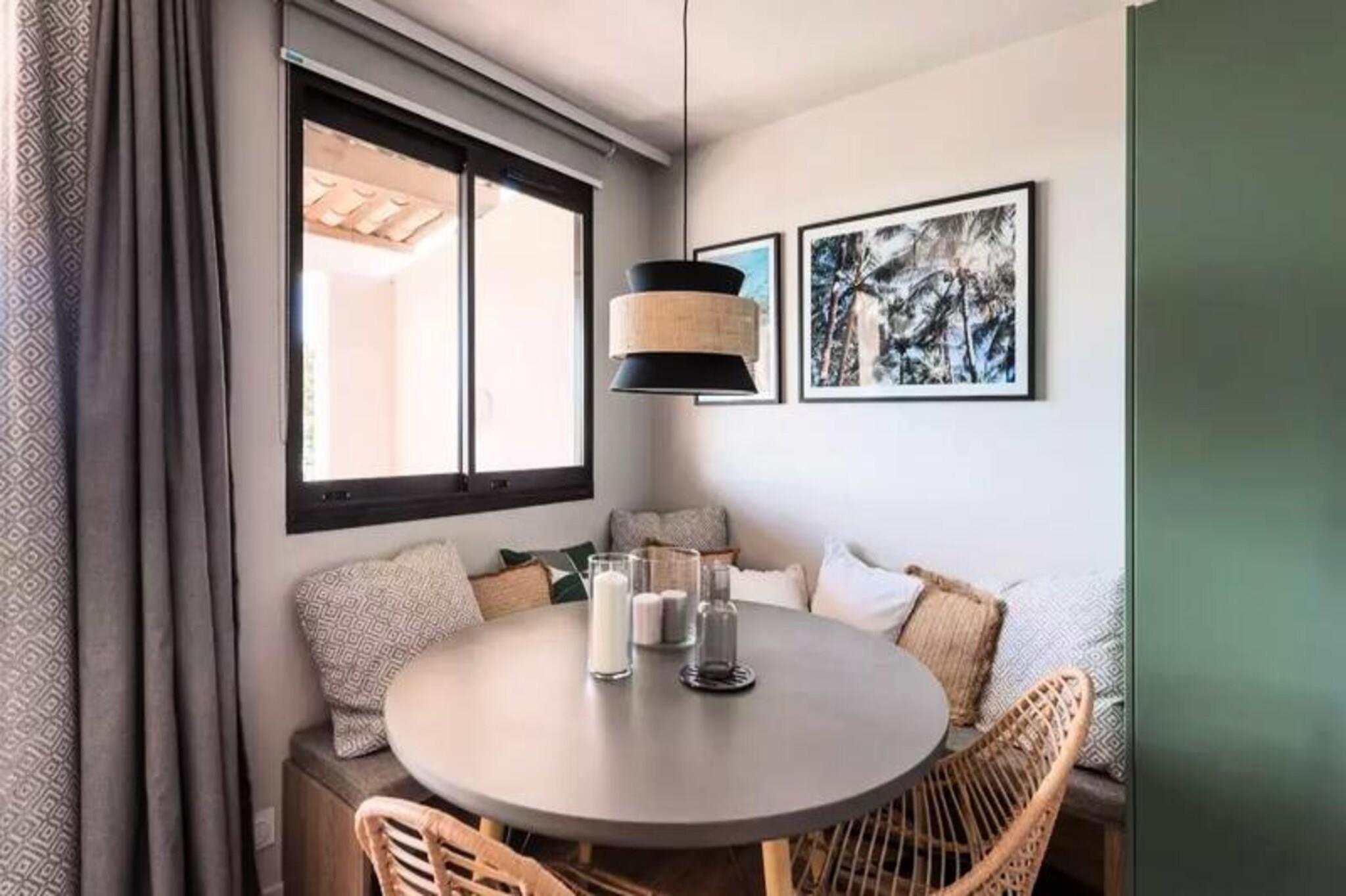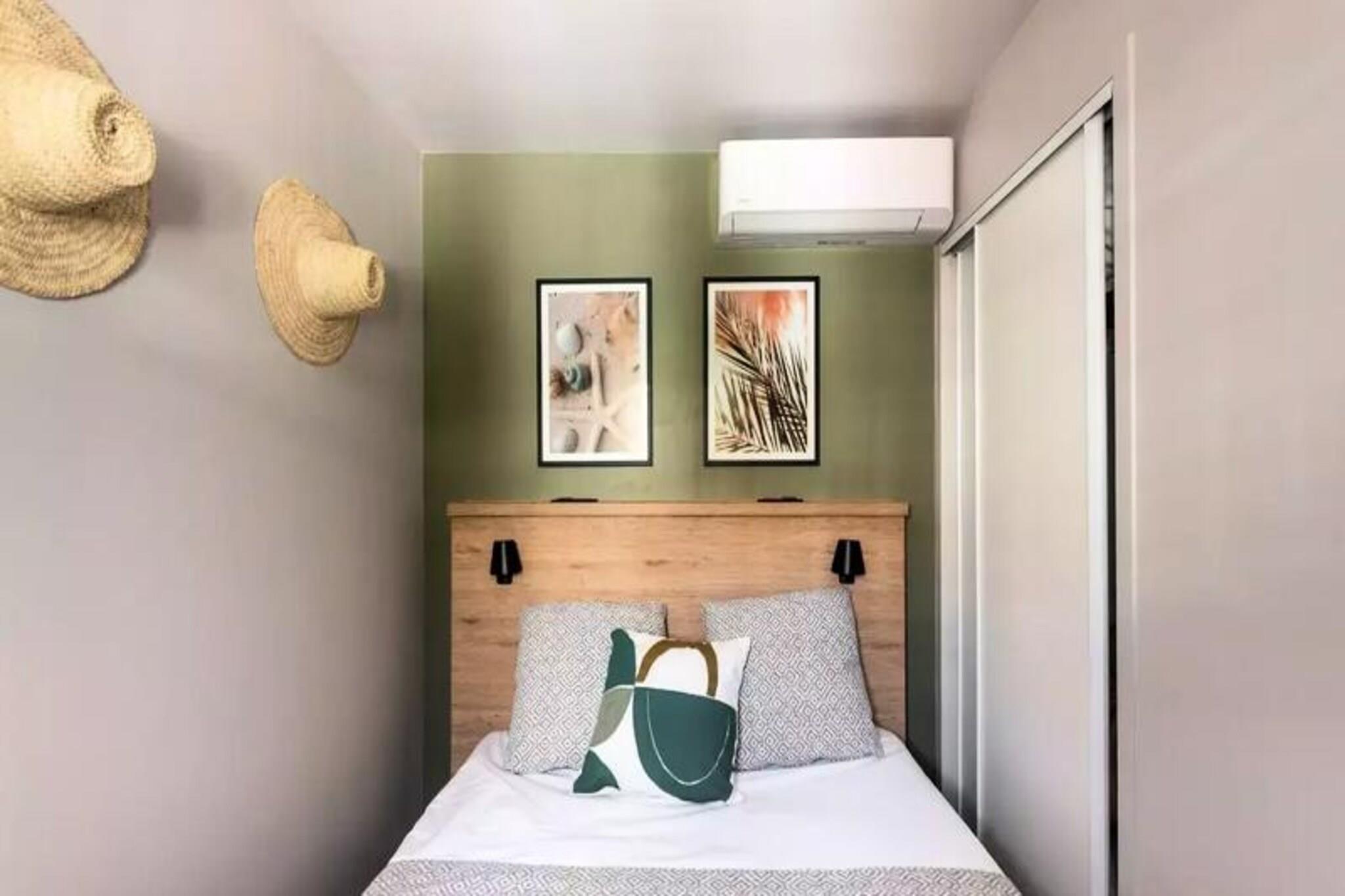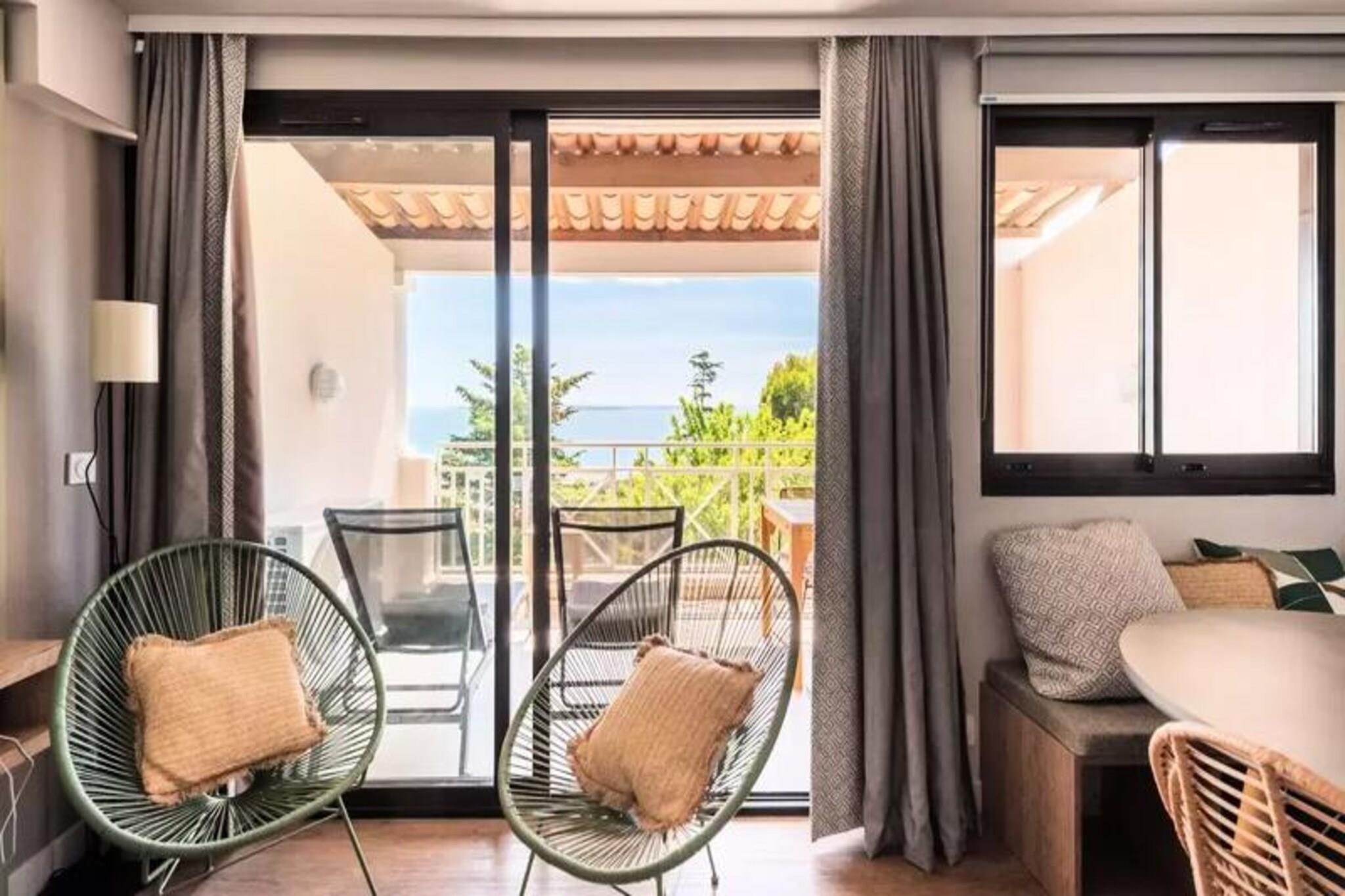 Denne charmerende bolig er beliggende i det fredelige "La Croix des Gardes"-distrikt i Cannes, kun 2 km fra den pulserende bymidte og den ikoniske Croisette. Omgivet af en frodig 5-hektar stor park fyldt med palmer og århundredgammelt grønt, tilbyder det et fredfyldt tilflugtssted med en fantastisk panoramaudsigt over Middelhavet fra terrassen ved infinity-poolen. Ideel til familier, har boligen en række faciliteter, herunder et legeområde, bordtennis og tennisbaner, alt sammen inden for ejendommen. For vandentusiaster er vandski tilgængeligt kun 800 meter væk, mens en 18-hullers golfbane ligger en kort 20-minutters kørsel fra boligen. Selve lejligheden er elegant designet og byder på aircondition, Wi-Fi og en rummelig sydøstvendt terrasse, hvor du kan slappe af og nyde en betagende udsigt over det gamle Cannes, havet og Lérins-øerne. Det omfatter en smagfuldt indrettet stue med sovesofa, et fuldt udstyret køkken, et hyggeligt soveværelse med dobbeltseng og et kabineområde med køjesenge til børn. Et badeværelse med bruser og separat toilet fuldender layoutet. For ekstra bekvemmelighed er der parkering på stedet. Stranden ligger kun 800 meter væk, så du nemt kan nyde Middelhavets sol og sand. Nærliggende attraktioner omfatter den glamourøse Croisette, Palais des Festivals og den berømte gamle bydel i Cannes. For en mere afslappet oplevelse er Lérins-øerne, kendt for deres naturlige skønhed, let tilgængelige med båd. Med sin førsteklasses beliggenhed og familievenlige faciliteter tilbyder denne bolig en ideel base for din Cannes-ferie.