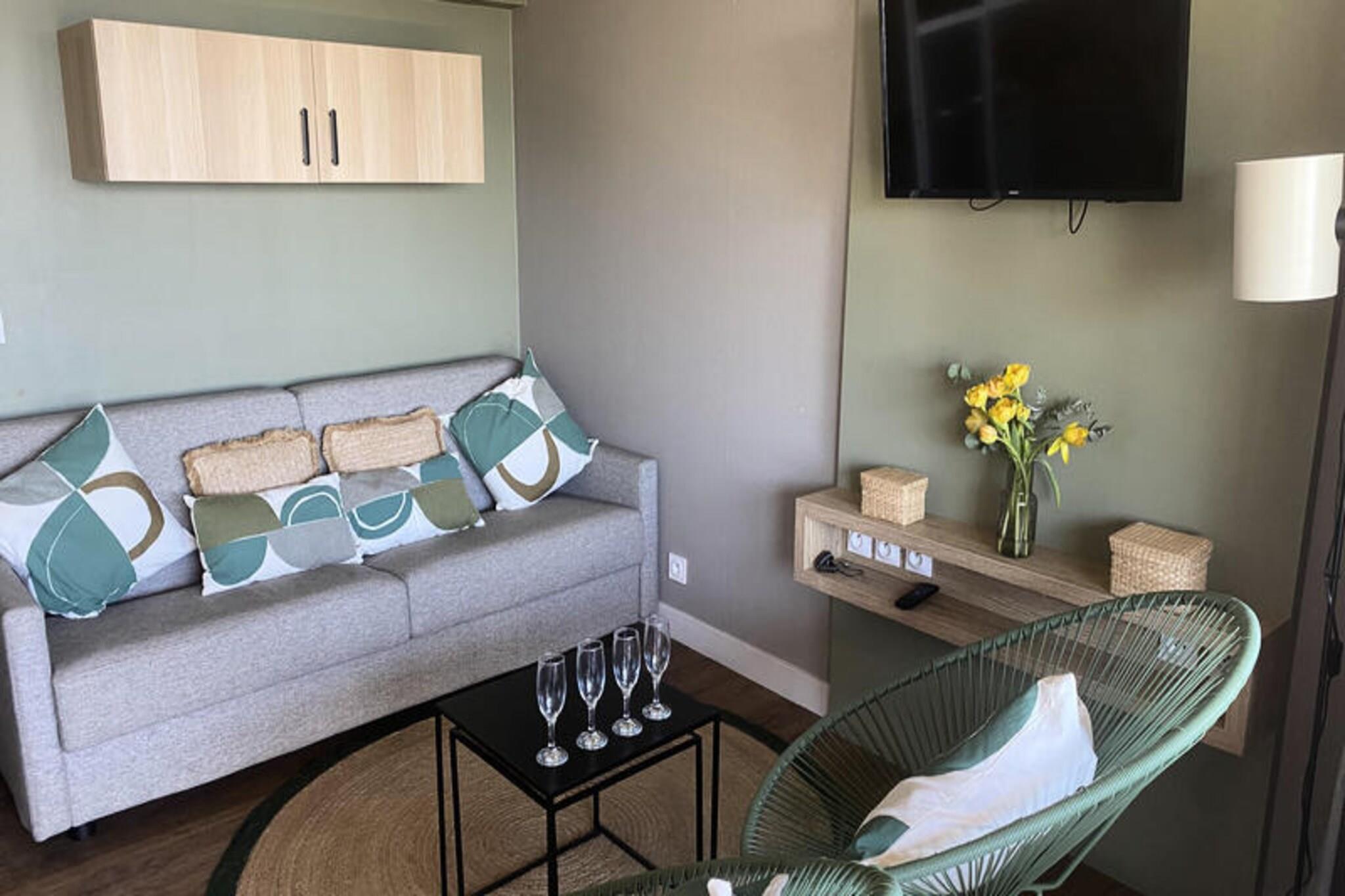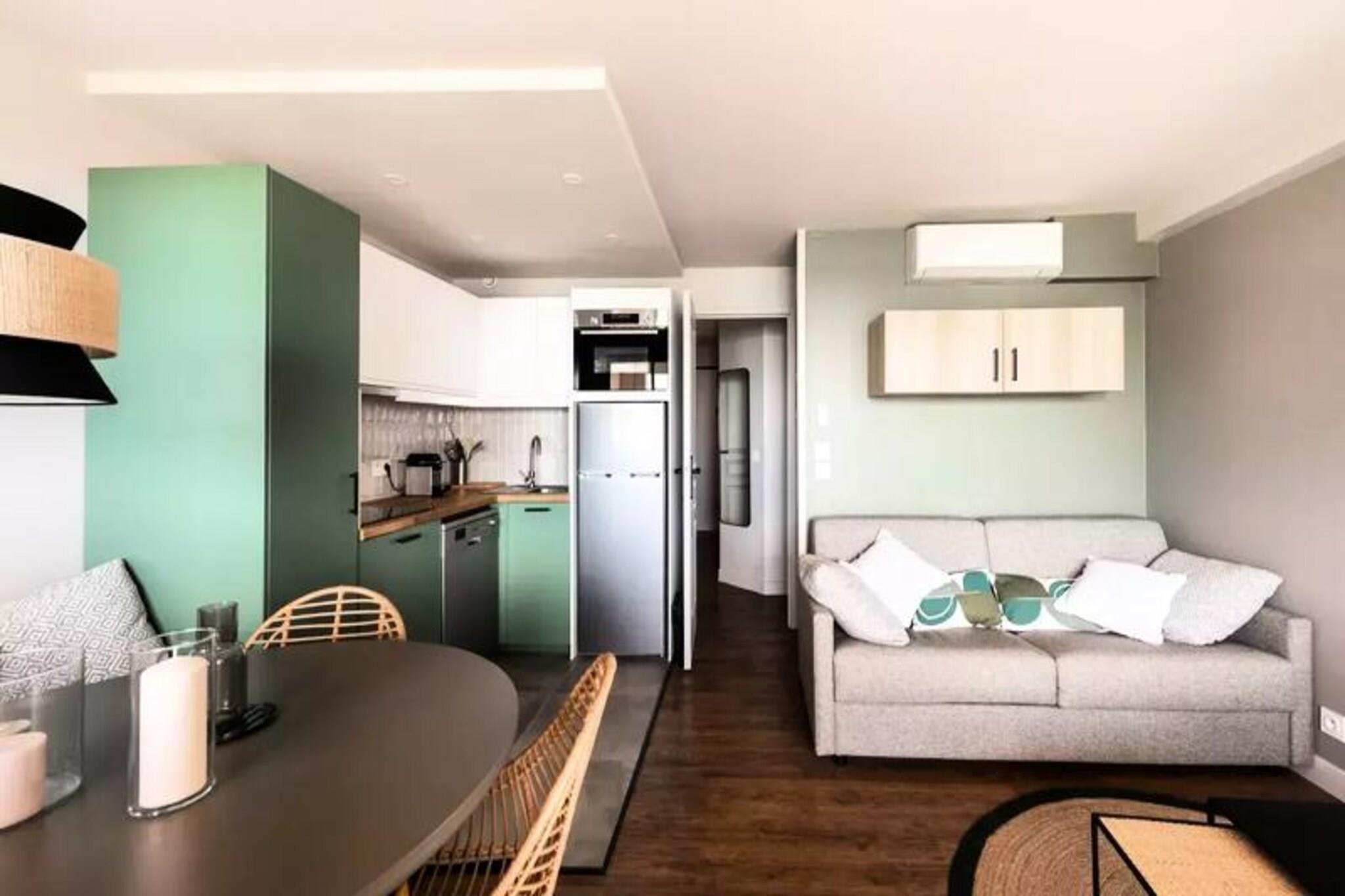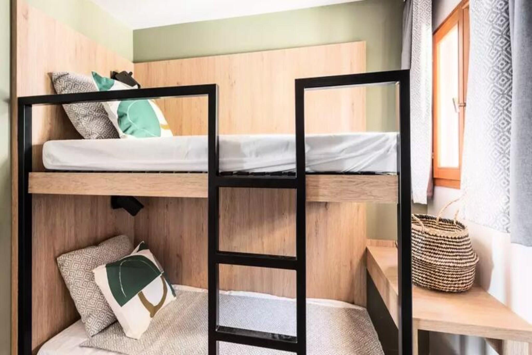 Denne charmerende bolig er beliggende i det fredelige "La Croix des Gardes"-distrikt i Cannes, kun 2 km fra den pulserende bymidte og den ikoniske Croisette. Omgivet af en frodig 5-hektar stor park fyldt med palmer og århundredgammelt grønt, tilbyder det et fredfyldt tilflugtssted med en fantastisk panoramaudsigt over Middelhavet fra terrassen ved infinity-poolen. Ideel til familier, har boligen en række faciliteter, herunder et legeområde, bordtennis og tennisbaner, alt sammen inden for ejendommen. For vandentusiaster er vandski tilgængeligt kun 800 meter væk, mens en 18-hullers golfbane ligger en kort 20-minutters kørsel fra boligen. Selve lejligheden er elegant designet og byder på aircondition, Wi-Fi og en rummelig sydøstvendt terrasse, hvor du kan slappe af og nyde en betagende udsigt over det gamle Cannes, havet og Lérins-øerne. Det omfatter en smagfuldt indrettet stue med sovesofa, et fuldt udstyret køkken, et hyggeligt soveværelse med dobbeltseng og et kabineområde med køjesenge til børn. Et badeværelse med bruser og separat toilet fuldender layoutet. For ekstra bekvemmelighed er der parkering på stedet. Stranden ligger kun 800 meter væk, så du nemt kan nyde Middelhavets sol og sand. Nærliggende attraktioner omfatter den glamourøse Croisette, Palais des Festivals og den berømte gamle bydel i Cannes. For en mere afslappet oplevelse er Lérins-øerne, kendt for deres naturlige skønhed, let tilgængelige med båd. Med sin førsteklasses beliggenhed og familievenlige faciliteter tilbyder denne bolig en ideel base for din Cannes-ferie.