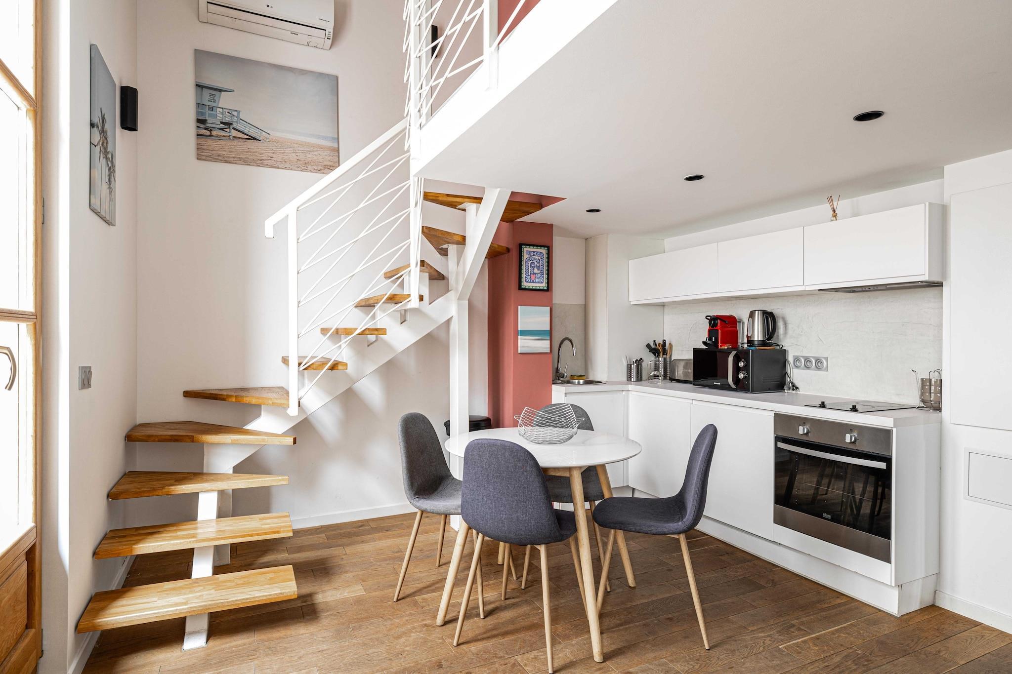 In the heart of Cannes, this bright duplex located in the medieval district of Le Suquet stands out with its stunning terrace. Just a 100-meter walk from the famous Palais des Festivals, the location is ideal for experiencing the glamour of Cannes. The charm of the cobbled streets and medieval buildings of Le Suquet creates a unique atmosphere.