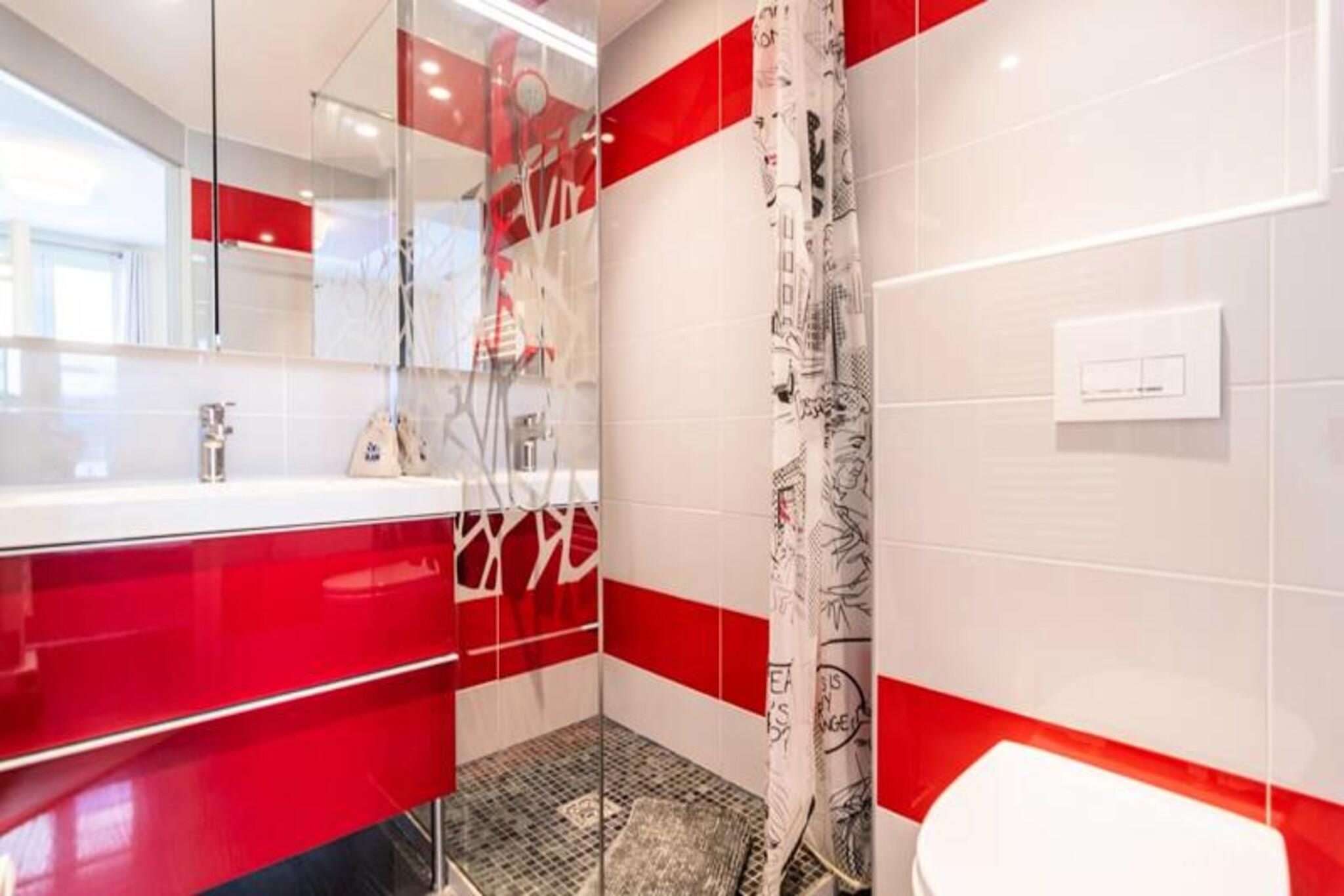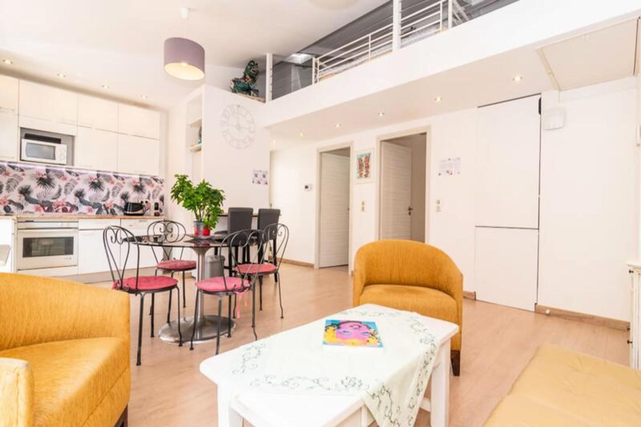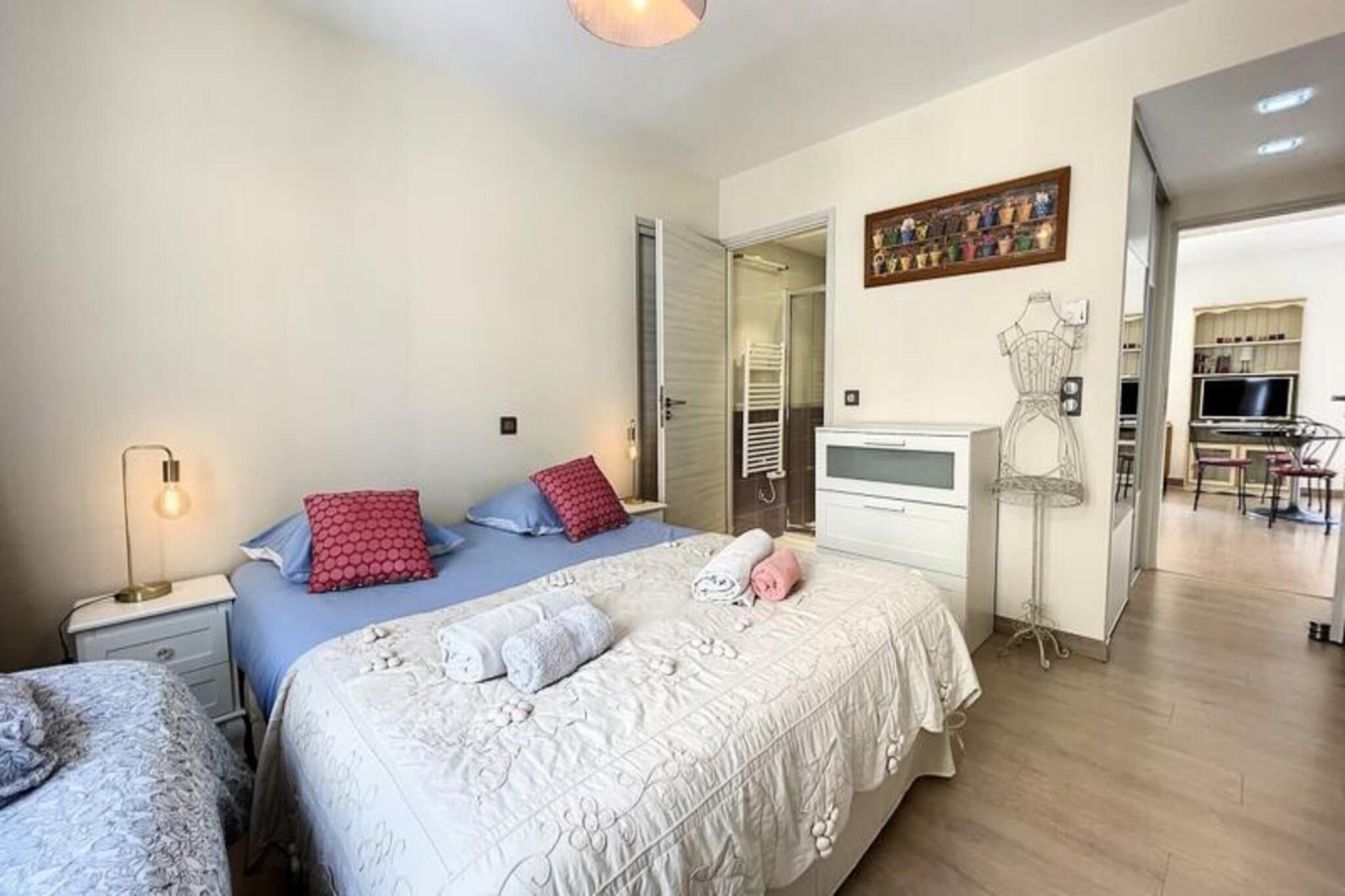 Ejendom sammen med en charmerende blanding af moderne og klassiske funktioner, denne rummelige lejlighed på 80 m² kan rumme op til 7 gæster. Det tilbyder en stor stue i katedralstil med åbent køkken, fuldt udstyret med opvaskemaskine, ovn, køleskab, mikroovn, kaffemaskine og kedel. Stuen åbner ud til to sydvendte altaner, og en komfortabel 3-personers lædersofa tilføjer den afslappende stemning. To generøst store soveværelser (ca. 15m² hver) har hver et tilstødende brusebad, det ene med et kontorområde. Yderligere faciliteter omfatter vendbart aircondition, WiFi og et LCD-tv. Beliggende i et roligt, men alligevel kommercielt område, er lejligheden kun få minutter fra byens centrum, let tilgængelig til fods, offentlig transport (direkte bus til Hôtel de Ville, 2 minutter væk), eller bil. Gratis boligparkering er tilgængelig omkring ejendommen, hvilket giver nem adgang til området. Yderligere funktioner inkluderer en mezzanin, der kan rumme en ekstra person, som tilbyder ekstra opbevaringsplads og et toilet for ekstra komfort. Der kræves et depositum på EURO1000 for reservationen, og gæster opfordres til at tage sig af lejligheden under deres ophold.