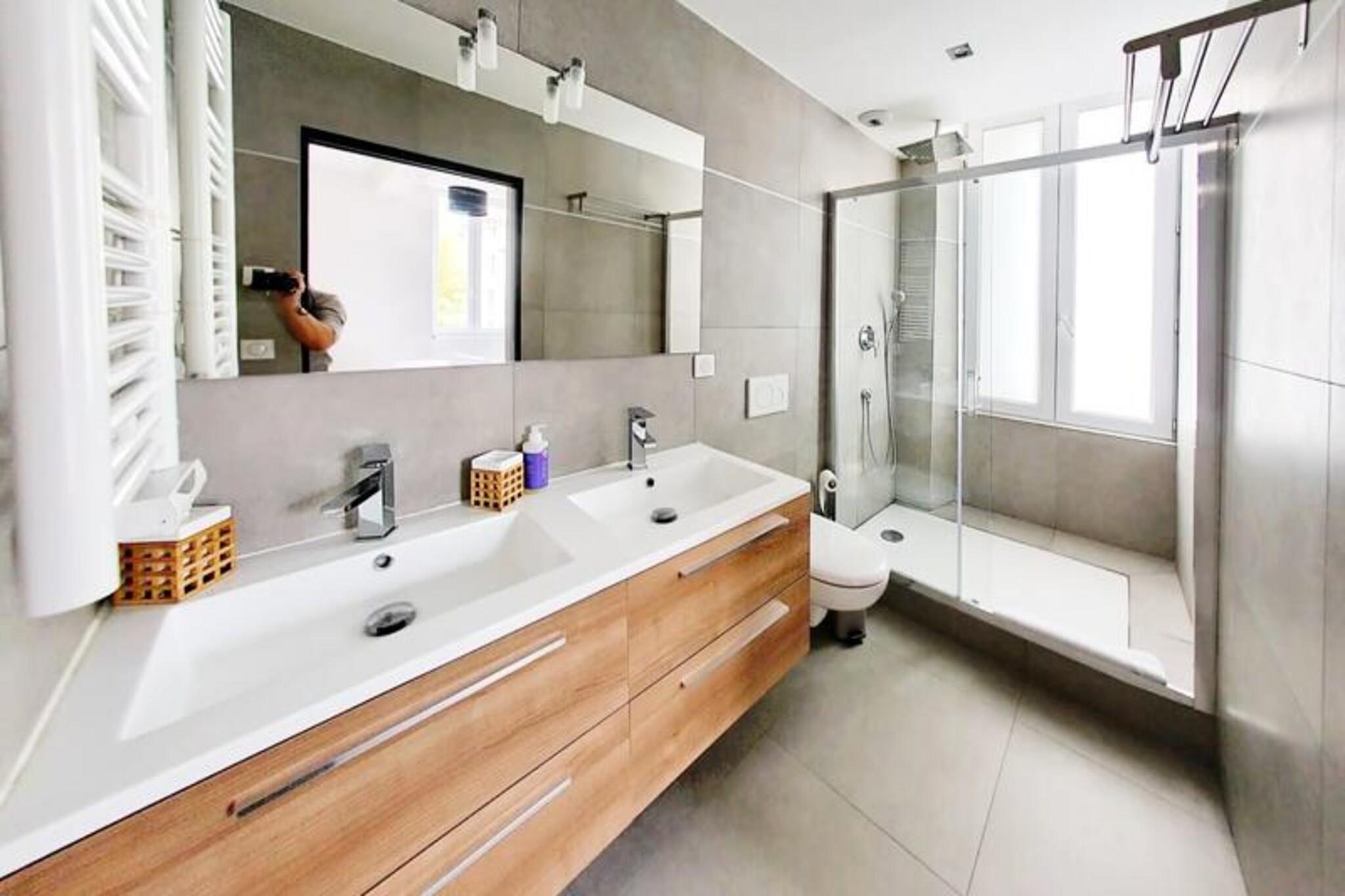 Denne fuldt udstyrede, moderne 3-værelses lejlighed tilbyder de perfekte rammer for både feriegæster og konferencedeltagere. Beliggende i hjertet af Cannes, den 60 m² store lejlighed er for nylig blevet renoveret og kan komfortabelt rumme op til 6 gæster. Lejligheden har to soveværelser, der hver tilbyder fleksibiliteten til at vælge enten en dobbeltseng eller to enkeltsenge (efter anmodning). Det ene soveværelse har eget badeværelse med italiensk bruser, toilet og hårtørrer, mens det andet private badeværelse også har italiensk bruser og separat toilet. Den rummelige opholdsstue omfatter en avanceret konvertibel sofa, ideel til en afslappende nats søvn, et LCD-tv og Wi-Fi i hele lejligheden. Det amerikanske køkken er fuldt udstyret med moderne apparater, herunder køleskab og fryser, mikroovn, espressomaskine, kedel, vaskemaskine, tørretumbler og opvaskemaskine, hvilket gør det til et praktisk sted at tilberede måltider. Beliggende kun få minutter fra Palais des Festivals et des Congrès, den berømte Croisette og stranden, tilbyder denne lejlighed nem adgang til det bedste, Cannes har at tilbyde. Nyd den livlige atmosfære på Gambetta provencalske marked og de travle shoppinggader, herunder Rue d'Antibes og Rue Hoche, alle inden for gåafstand. Derudover er togstationen i nærheden, hvilket gør det bekvemt for at udforske regionen. Parkering er tilgængelig mod et ekstra gebyr, og der kræves et refunderbart depositum. Uanset om det er til forretning eller ferie, tilbyder denne lejlighed alt hvad du behøver for et behageligt og mindeværdigt ophold.
