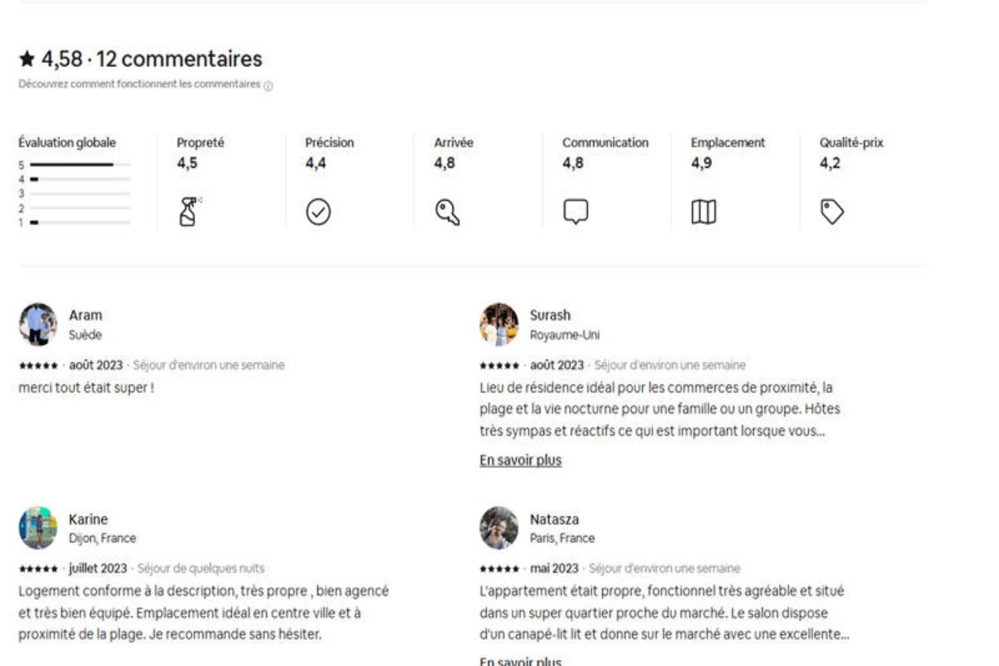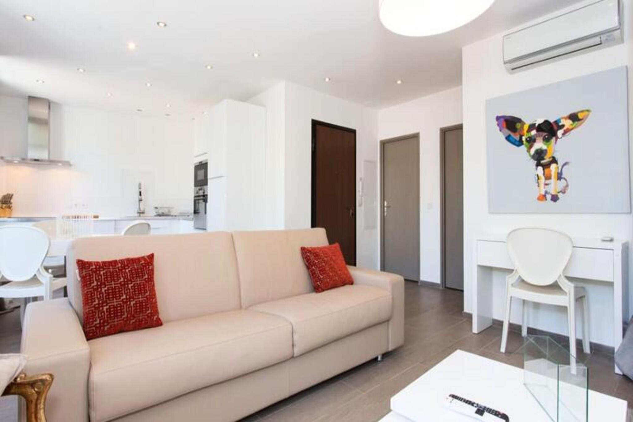 Indvendigt har det rummelige hovedværelse en komfortabel to-personers sovesofa med premium Bultex-sengetøj (160x200), et stort LCD-tv med internationale kanaler og et åbent køkken. Det fuldt udstyrede køkken omfatter en kaffemaskine, indbygget køleskab, brødrister, vaskemaskine, kedel, kogeplader, mikroovn, emhætte, opvaskemaskine, ovn og service til seks. Et rundt spisebord med seks stole fuldender opholdsrummet. Denne smukt renoverede 3-værelses lejlighed, der spænder over cirka 60 m², tilbyder et moderne og raffineret rum, der er ideelt for både feriegæster og konferencedeltagere. Beliggende i det pulserende hjerte af Cannes, kombinerer det moderne komfort med en førsteklasses beliggenhed nær byens bedste attraktioner. Lejligheden er beliggende på første sal i en charmerende bygning med udsigt over det travle provencalske marked på Place Gambetta, omgivet af butikker og lokale faciliteter. Kun 150 meter fra SNCF-togstationen, 200 meter fra den berømte Croisette og omkring 500 meter fra Palais des Festivals, placerer det dig i centrum af Cannes' dynamiske liv. At bo her betyder, at du har nem adgang til en række attraktioner, herunder sandstrandene langs Croisette, luksusbutikker på Rue d'Antibes og det pulserende Gambetta-marked, perfekt til at prøve lokale råvarer. Offentlige transportforbindelser er tæt på, med tog- og busstationerne kun en kort gåtur væk. Denne lejlighed tilbyder en blanding af stil, bekvemmelighed og adgang til al den charme, Cannes har at byde på.