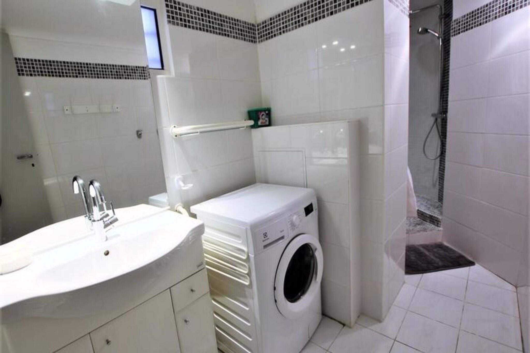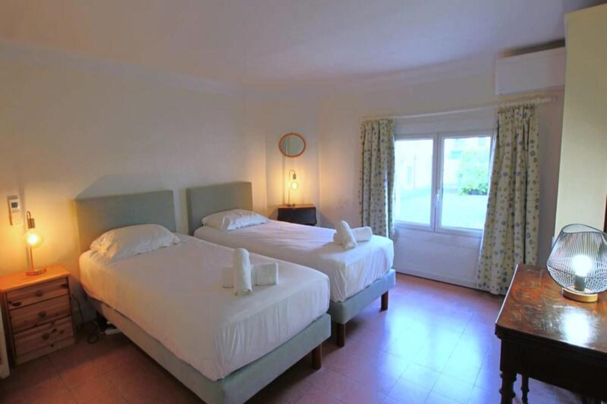 Denne rummelige lejlighed med aircondition på 145 m² har en førsteklasses beliggenhed kun 6 minutter fra byens centrum og 2 minutter fra stranden. Med privat adgang til havet, strandene og nærliggende restauranter giver lejligheden en perfekt ramme for et afslappet og bekvemt ophold. Med tre soveværelser, to badeværelser og en stor stue, der kan rumme op til seks gæster, er den designet til komfort og stil. Stuen åbner ud til en møbleret terrasse med en storslået havudsigt, med spisebord, lounge sofa og liggestole til at nyde landskabet. Lejligheden er veludstyret med moderne bekvemmeligheder, herunder et fuldt udstyret køkken, TV, Wi-Fi, vaskemaskine og opvaskemaskine. De tre soveværelser består af et havvendt dobbeltværelse, et værelse med to enkeltsenge og et andet værelse med to enkeltsenge. Yderligere faciliteter omfatter et brusebad, et badeværelse med toilet og et separat toilet. Gæsterne kan slappe af i den private have, som også byder på havudsigt, eller nyde direkte adgang til alléen ved havet og strandene. Nærliggende attraktioner omfatter Forville-markedet, hvor du kan udforske friske råvarer, fisk og skaldyr og lokale specialiteter, og den historiske Le Suquet, Cannes' gamle bydel. Den pulserende Rue d'Antibes, kendt for sine indkøbsmuligheder og restauranter, ligger kun en kort gåtur væk, og Palais des Festivals er også inden for gåafstand. Lejlighedens beliggenhed giver nem adgang til Croisette, luksusbutikker og de smukke Cannes-strande, hvilket gør den til en ideel base for at udforske byen og videre.