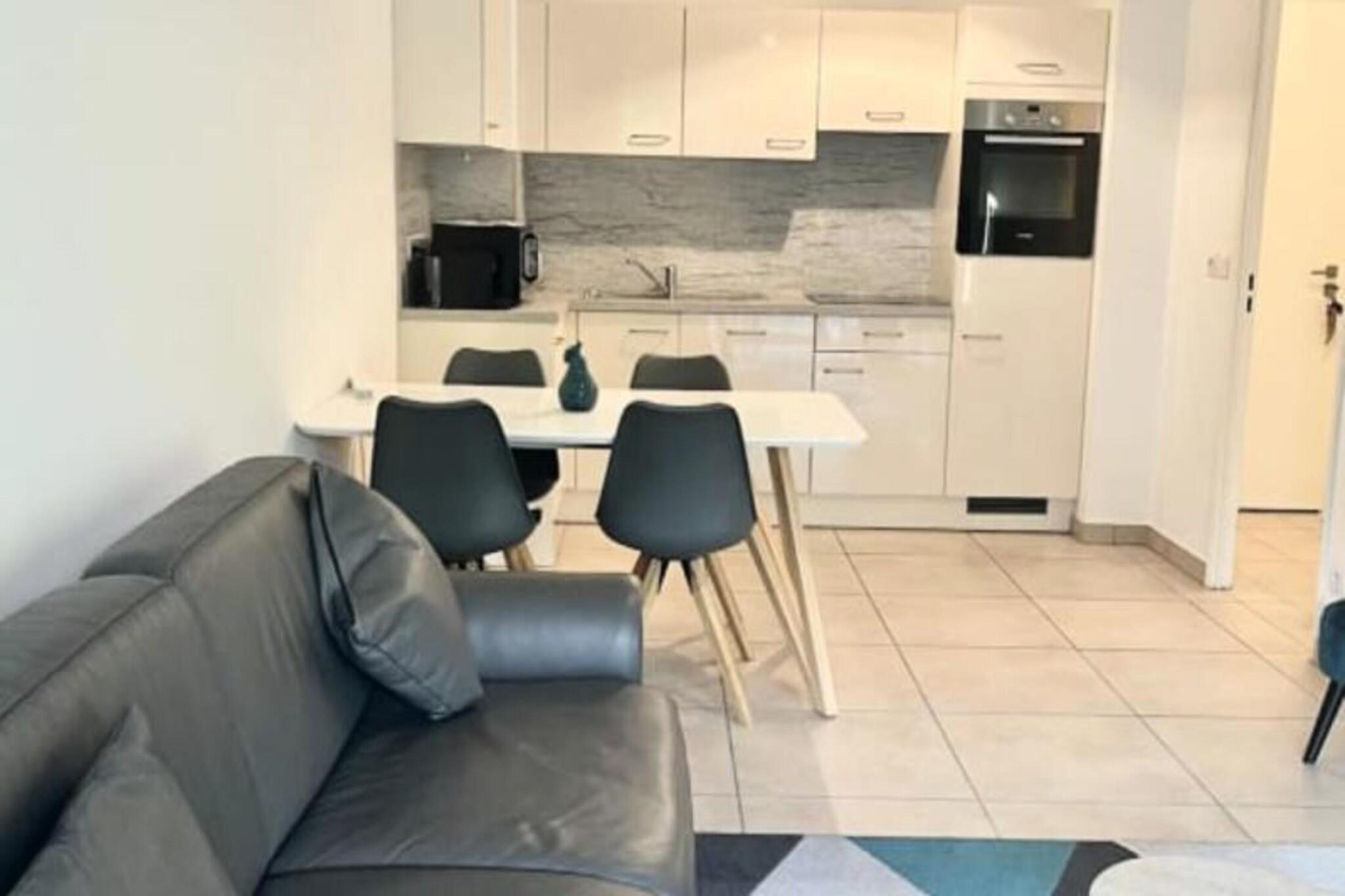 Ejendom, med sin ideelle blanding af komfort og bekvemmelighed, tilbyder en rummelig 2-værelses lejlighed perfekt til både forretnings- og familieophold. Indkvarteringen kan komfortabelt huse op til 4 personer, med en 160x200 cm seng i soveværelset og en sovesofa (140x200 cm) i stuen. Gæsterne kan nyde den private, ikke oversete terrasse, der har udsigt over boligens park. Lejligheden er fuldt udstyret med moderne bekvemmeligheder, herunder aircondition, Wi-Fi og adgang til en swimmingpool på taget (sæsonbestemt, maj til september). En underjordisk sikker parkeringsplads er også til rådighed for nemheds skyld. Bemærk venligst, at kæledyr ikke er tilladt, og fester er forbudt på stedet. Beliggende i det rolige, sikre Oxford-distrikt i Cannes, tilbyder lejligheden et roligt tilflugtssted, mens den ligger i kort afstand fra byens centrum. Det er ideelt beliggende med nem adgang til de pulserende områder i Cannes, såsom La Croisette (2,1 km) og Rue d'Antibes (1,7 km). Gæsterne kan udforske berømte steder som Le Suquet (2,3 km) og nyde lokale butikker, restauranter og faciliteter i nærheden. Lejligheden kan prale af et fuldt udstyret åbent køkken med moderne apparater, herunder en vaskemaskine, opvaskemaskine, kapselkaffemaskine og alle nødvendige køkkenredskaber. Der er også en lys stue med spisebord og tv. Badeværelset er udstyret med bruser, håndvask og spejl, og der er separat toilet.
