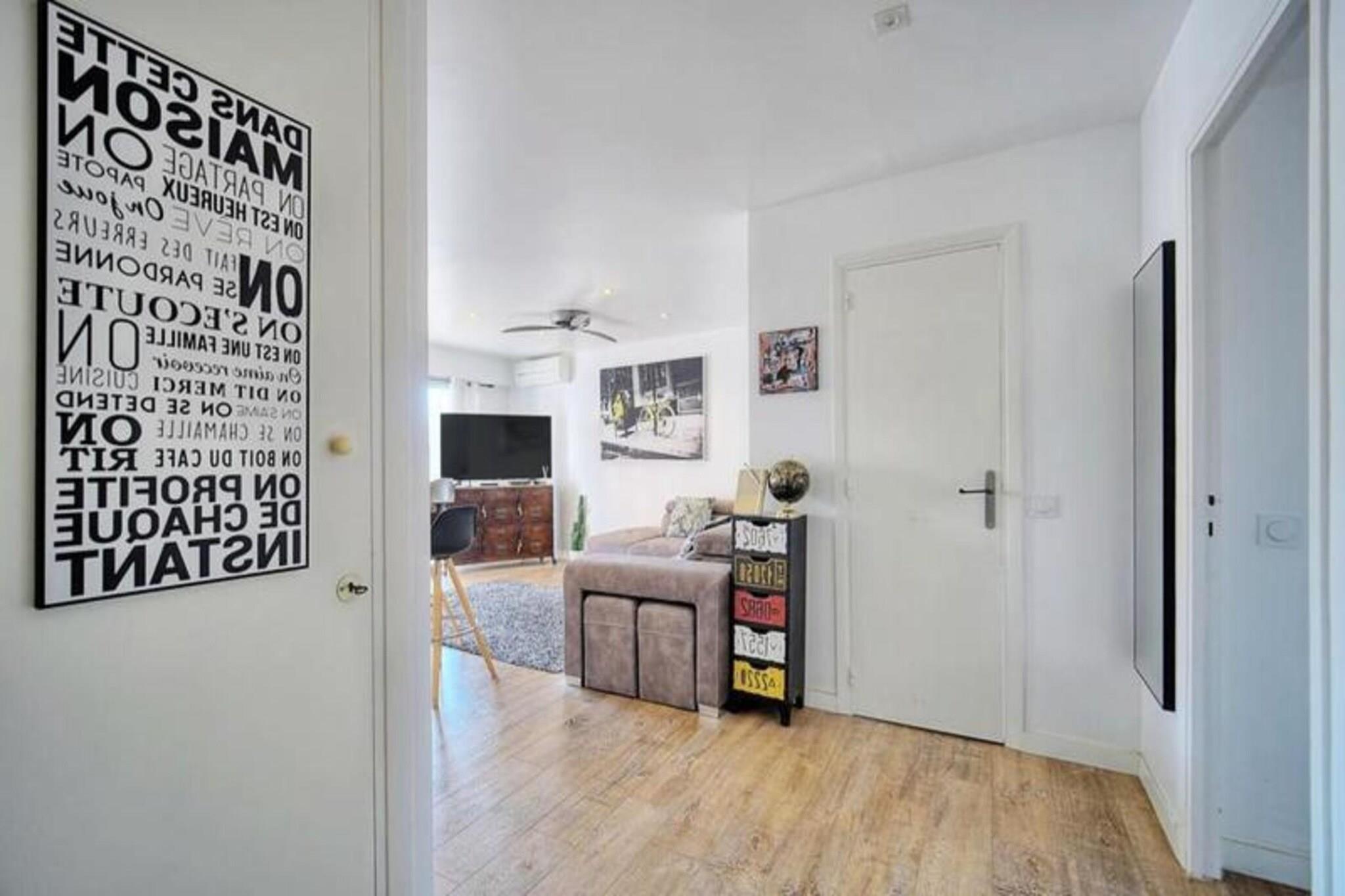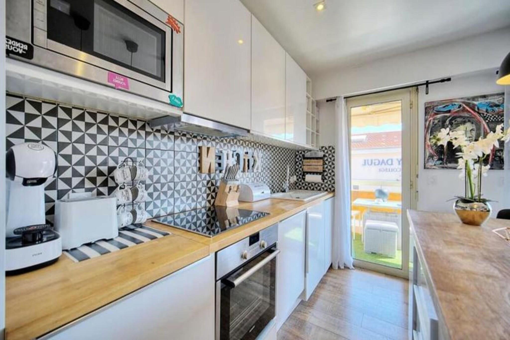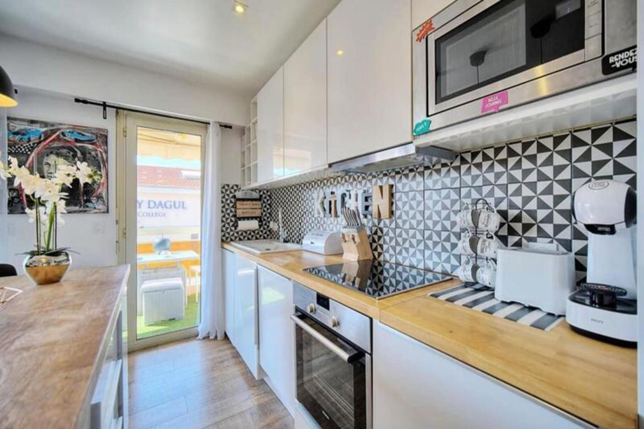 Denne charmerende 44 m² store lejlighed, beliggende i hjertet af Cannes, tilbyder en perfekt blanding af komfort og bekvemmelighed. Beliggende i det fredelige Montfleury-distrikt giver det et roligt tilflugtssted, mens det kun er få skridt væk fra alle væsentlige faciliteter, herunder et supermarked, apotek, bageri og caféer. Lejligheden ligger på tredje sal i en fire-etagers bygning med elevator og har en sydvendt balkon, der bidrager til dens appel. Indenfor finder du et fuldt udstyret køkken med moderne apparater, herunder en Nespresso kaffemaskine, opvaskemaskine og vaskemaskine, samt en rummelig stue med en sovesofa. Opholdsstuen har aircondition og tilbyder fiberinternet og et tv til din underholdning. Soveværelset har en komfortabel dobbeltseng, rigelig opbevaring og aircondition, hvilket sikrer en god nats søvn. Lejligheden har også et velindrettet badeværelse med badekar, vask, håndklædetørrer og et separat toilet for ekstra privatliv. Den 10 m² store balkon er ideel til at nyde et måltid eller bare slappe af med et bord og en udendørs sofa til at slappe af i solen. Gæster kan også nyde godt af en udpeget parkeringsplads i bygningen for ekstra bekvemmelighed. Palais des Festivals ligger blot 20 minutters gang derfra, mens togstationen og Rue d'Antibes ligger inden for 10 minutter til fods. De smukke strande ligger kun 10 minutters gang fra lejligheden, hvilket gør det nemt at nyde Cannes' berømte kystlinje.