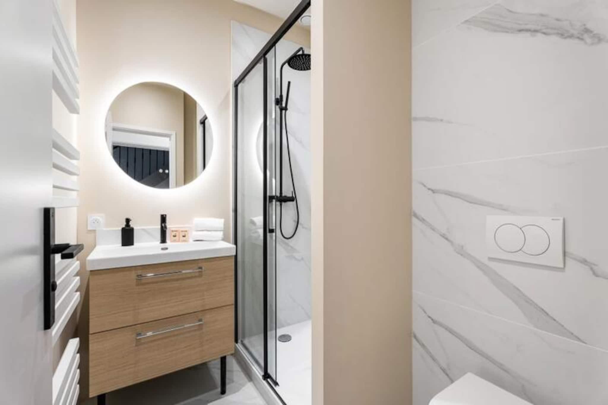 Træd ind i hjertet af Cannes og oplev denne smukt renoverede lejlighed på 104 m², et roligt tilflugtssted kun få øjeblikke fra det pulserende byliv og de gyldne strande. Uanset om du planlægger en ferie med familie eller venner, tilbyder denne stilfulde og rummelige ejendom den perfekte blanding af komfort og bekvemmelighed for at gøre dit ophold uforglemmeligt. Lejligheden er designet af en indretningsarkitekt og udstråler elegance og modernitet. Den hyggelige stue inviterer dig til at slappe af, mens spiseområdet er perfekt til at dele måltider sammen. Et højdepunkt på ejendommen er hjemmebiografen, komplet med et komfortabelt loungeområde og et bordfodboldbord, der sikrer underholdning for alle aldre. Det fuldt udstyrede køkken har alt hvad du behøver, fra en kaffemaskine til en opvaskemaskine, hvilket gør det nemt at tilberede dine yndlingsretter. Med to soveværelser med bløde dobbeltsenge og et elegant badeværelse med bruser er hver eneste detalje omhyggeligt overvejet for din komfort. Den lille møblerede terrasse giver et fredeligt sted at nyde din morgenkaffe eller en aftenaperitif. Lejligheden ligger i et roligt kvarter, kun 15 minutters gang fra togstationen og stranden, og 18 minutters gang fra det ikoniske Palais des Festivals. I nærheden finder du et udvalg af anerkendte restauranter, herunder La Palme d'Or og Café Hoche, samt kulturelle perler som Villa Montrose og Musée des Explorations de la Monde. For ekstra bekvemmelighed er der lokale buslinjer kun et minut væk, og Nice Côte d'Azur Lufthavn ligger 30 minutters kørsel derfra. Med sengelinned i hotelkvalitet, naturlige toiletartikler og en dedikeret concierge-service sikrer denne ejendom en problemfri og luksuriøs oplevelse. Uanset om du er her for filmfestivalen eller en afslappende ferie ved kysten, er denne lejlighed i Cannes din port til den franske rivieras charme og elegance.