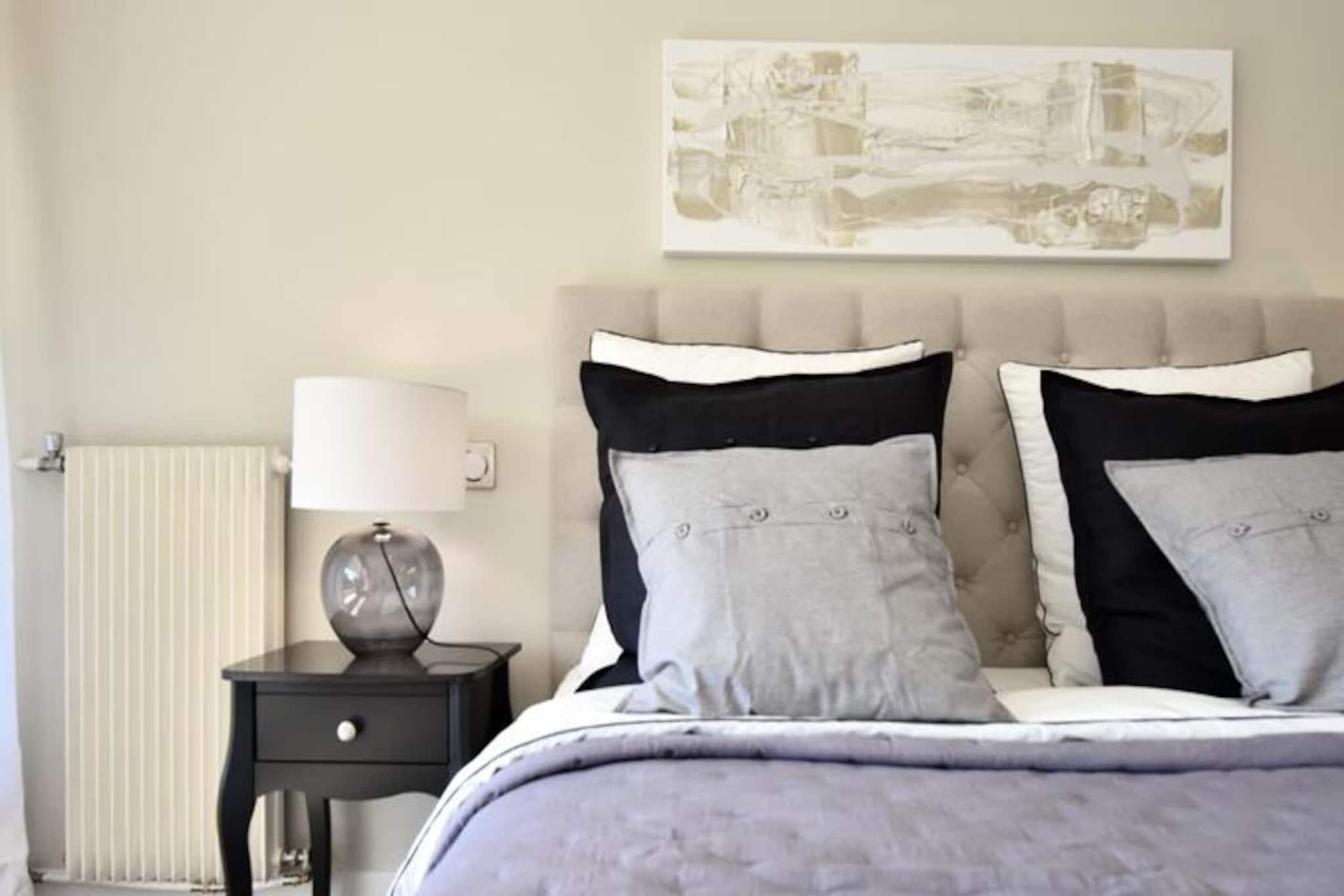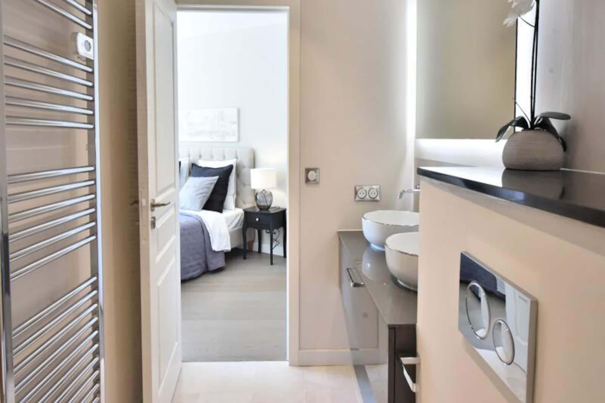 Træd ind i en verden af ??elegance og komfort med denne smukt renoverede lejlighed i hjertet af Cannes. Denne lyse og luftige perle, designet af dygtige indretningsarkitekter, tilbyder en perfekt blanding af moderne sofistikering og middelhavscharm. Uanset om du besøger lejligheden i forbindelse med forretning eller fritid, lover dens førsteklasses beliggenhed og gennemtænkte faciliteter et uforglemmeligt ophold. Forestil dig at vågne op til det blide sollys, der strømmer ind gennem store karnappvinduer, nyde morgenmaden på den store terrasse og slentre til den ikoniske Croisetten kun få minutter væk. Dette er din indgang til det bedste af Cannes. \n\nIndenfor kan lejligheden prale af to rolige soveværelser, der begge er udstyret med en queensize-seng og rigelig opbevaringsplads. Det første soveværelse har et eget badeværelse med bruser og direkte adgang til terrassen, perfekt til at nyde solrige morgener. Det andet soveværelse tilbyder lige så stor komfort, da dets badeværelse med bruser er bekvemt placeret i nærheden. Den åbne opholdsstue er et sandt højdepunkt med en hyggelig stue med smart-tv, spiseplads til fire personer og et fuldt udstyret køkken med ovn og opvaskemaskine. Højhastigheds-Wi-Fi og reversibel aircondition sikrer din komfort året rundt. \n\nTræd udenfor og udforsk det pulserende Montfleury-distrikt, hvor charmerende lokale butikker som bagerier, vinforretninger og blomsterhandlere skaber en indbydende landsbyatmosfære. Rue d'Antibes, byens centrum, ligger kun 5 minutters gang væk, mens den glamourøse Croisette og dens strande kan nås på 10 minutter. For dem, der ankommer med tog eller fly, er ejendommen bekvemt placeret i nærheden af ??Cannes togstation og Nice Côte d'Azur Lufthavn. \n\nMed sin sikre bolig, store fælles parkeringsplads og concierge-service klar til at hjælpe, er denne lejlighed det ideelle valg til et problemfrit og luksuriøst ophold i Cannes. Uanset om du er her for filmfestivalen, en romantisk getaway eller en afslappende ferie, er denne ejendom dit perfekte tilflugtssted.