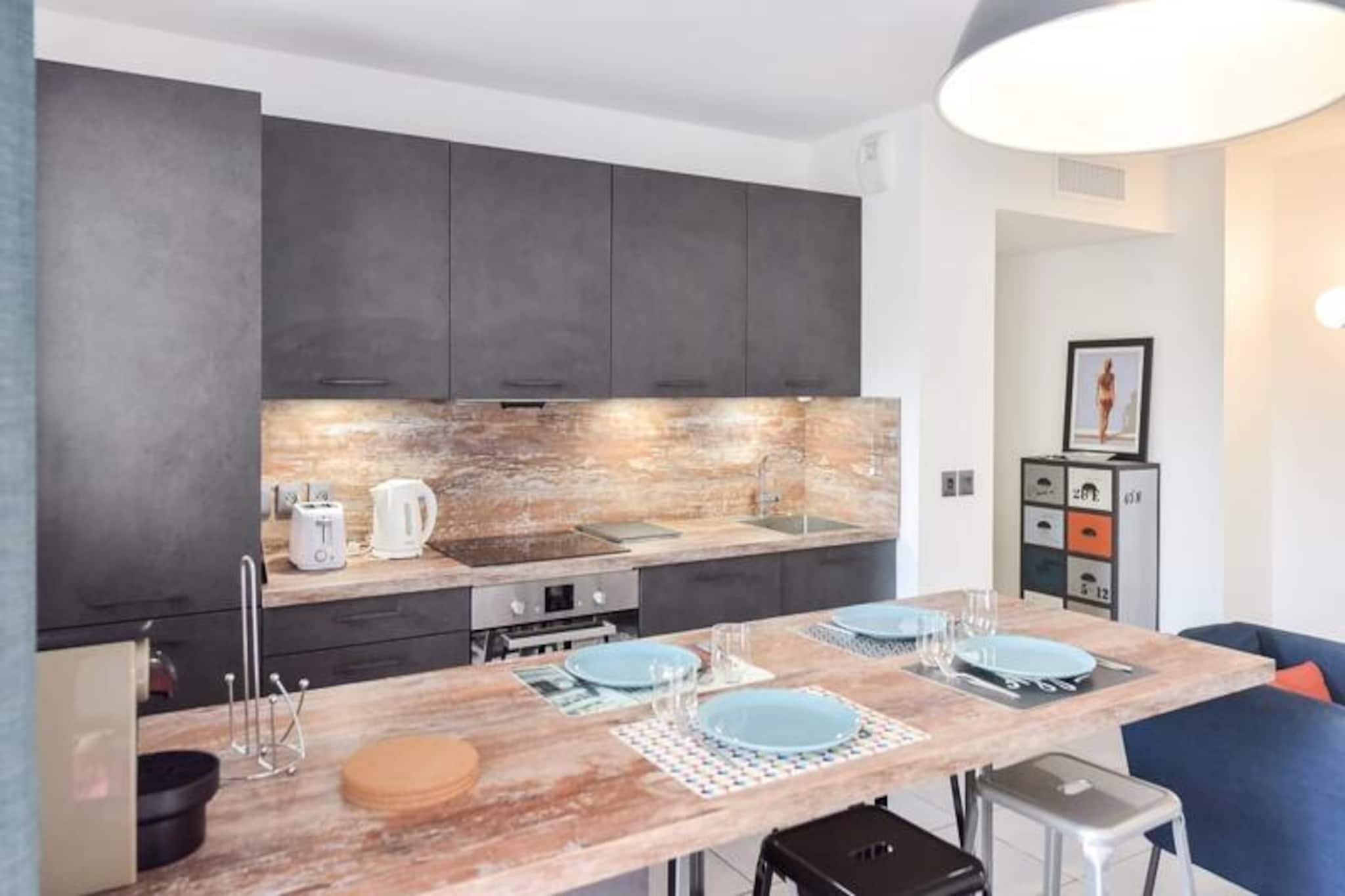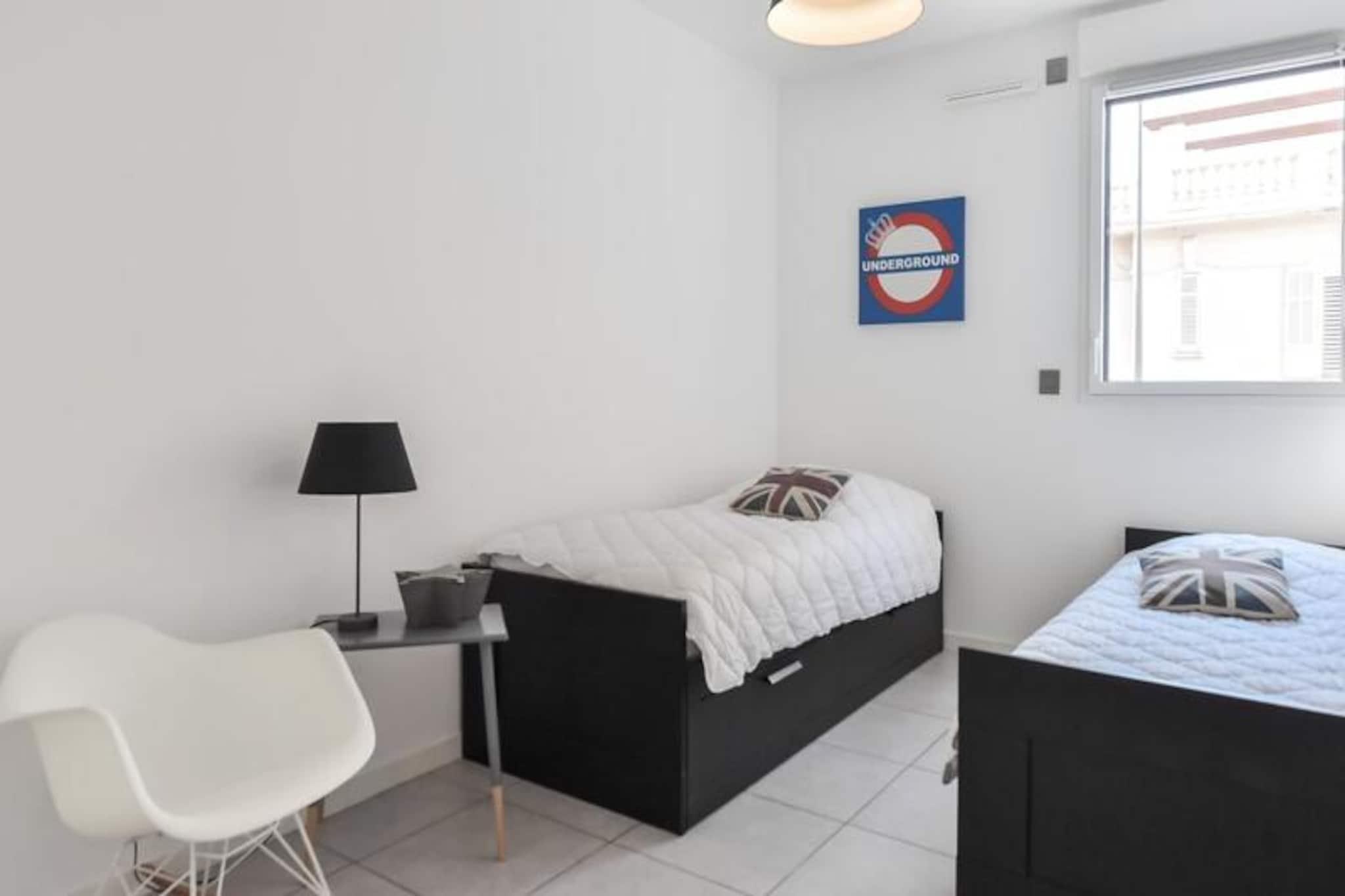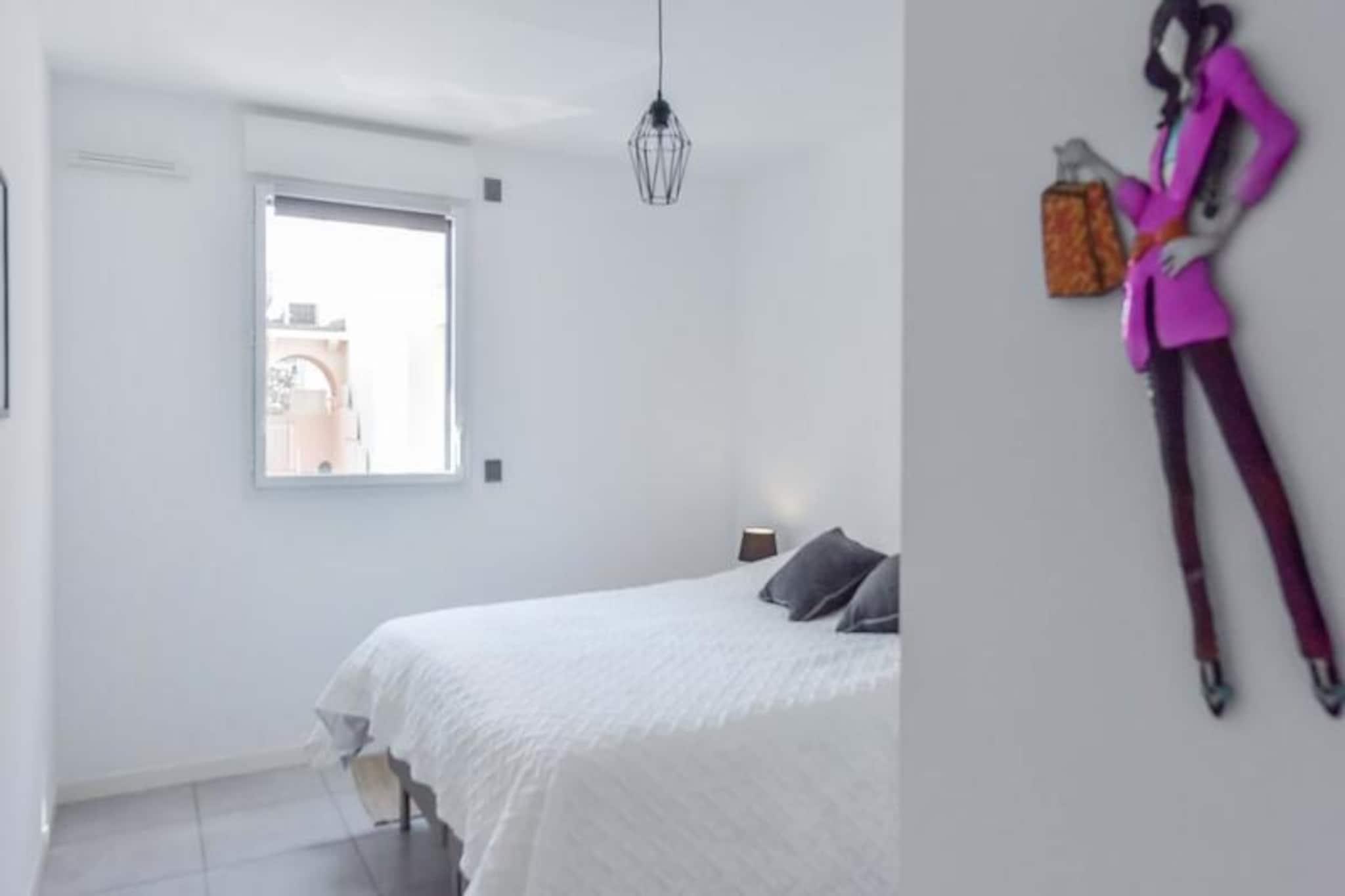 I det pulserende Palm Beach-distrikt i Cannes tilbyder denne moderne lejlighed på 65 m² en rolig tilflugtssted kun få øjeblikke fra de glitrende strande og charmerende lokale butikker. Forestil dig at vågne op til den blide middelhavsbrise, træde ud på din private balkon og planlægge en dag fyldt med solrige eventyr langs den ikoniske Croisetten eller slappe af i Jardin des Hespérides. Denne bolig kombinerer det bedste af kystcharme og moderne komfort, hvilket gør den til et ideelt valg til din næste ferie. Lejligheden har et gennemtænkt designet interiør med to rummelige soveværelser, det ene med en luksuriøs dobbeltseng og det andet med to enkeltsenge, hvilket sikrer afslappende nætter for alle gæster. Den åbne opholdsstue inkluderer et fuldt udstyret køkken og en hyggelig stue med et smart-tv, perfekt til at slappe af efter en dag med udforskning. Med aircondition, termoruder og højhastigheds-Wi-Fi er hver eneste detalje nøje udvalgt for din bekvemmelighed. Bygningen er fuldt tilgængelig for personer med nedsat mobilitet, herunder trinfri adgang til poolen, hvilket gør den imødekommende for alle. Kun en kort gåtur ned ad Rue Ricord Laty finder du Mouré Rouge-stranden, lokale bagerier, butikker og essentielle faciliteter såsom et apotek og et supermarked. Den nærliggende Croisette inviterer dig til at nyde sin glamourøse atmosfære, mens Palais des Festivals og Cannes centrum kun ligger ti minutters kørsel væk. For dem, der ønsker at udforske yderligere, tilbyder togstationen nem adgang til den fantastiske franske riviera. Uanset om du er her for at nyde solen, udforske Cannes' pulserende gader eller blot slappe af i trygge og stilfulde omgivelser, tilbyder denne lejlighed den perfekte base for at skabe uforglemmelige minder ved Middelhavet.