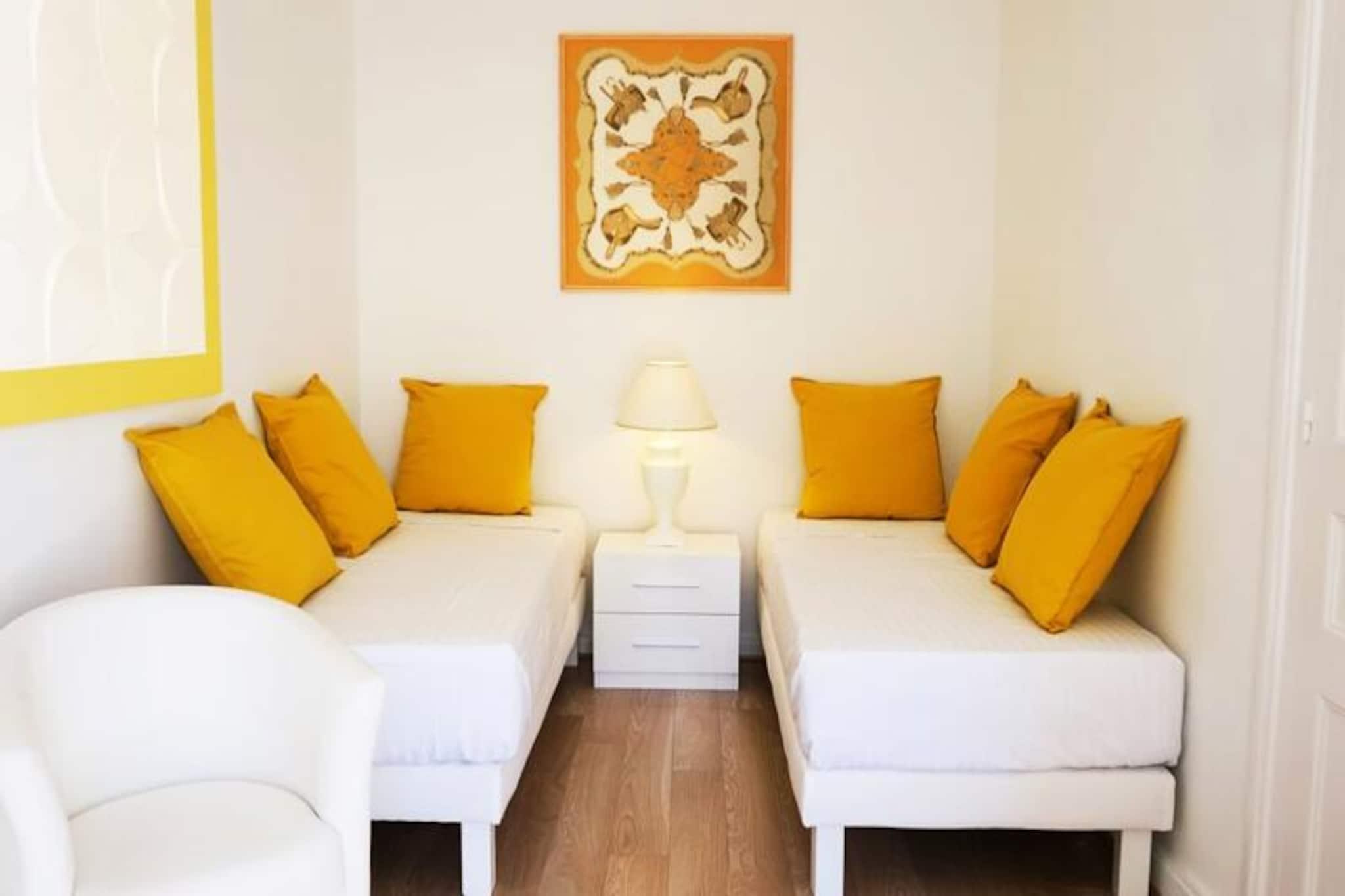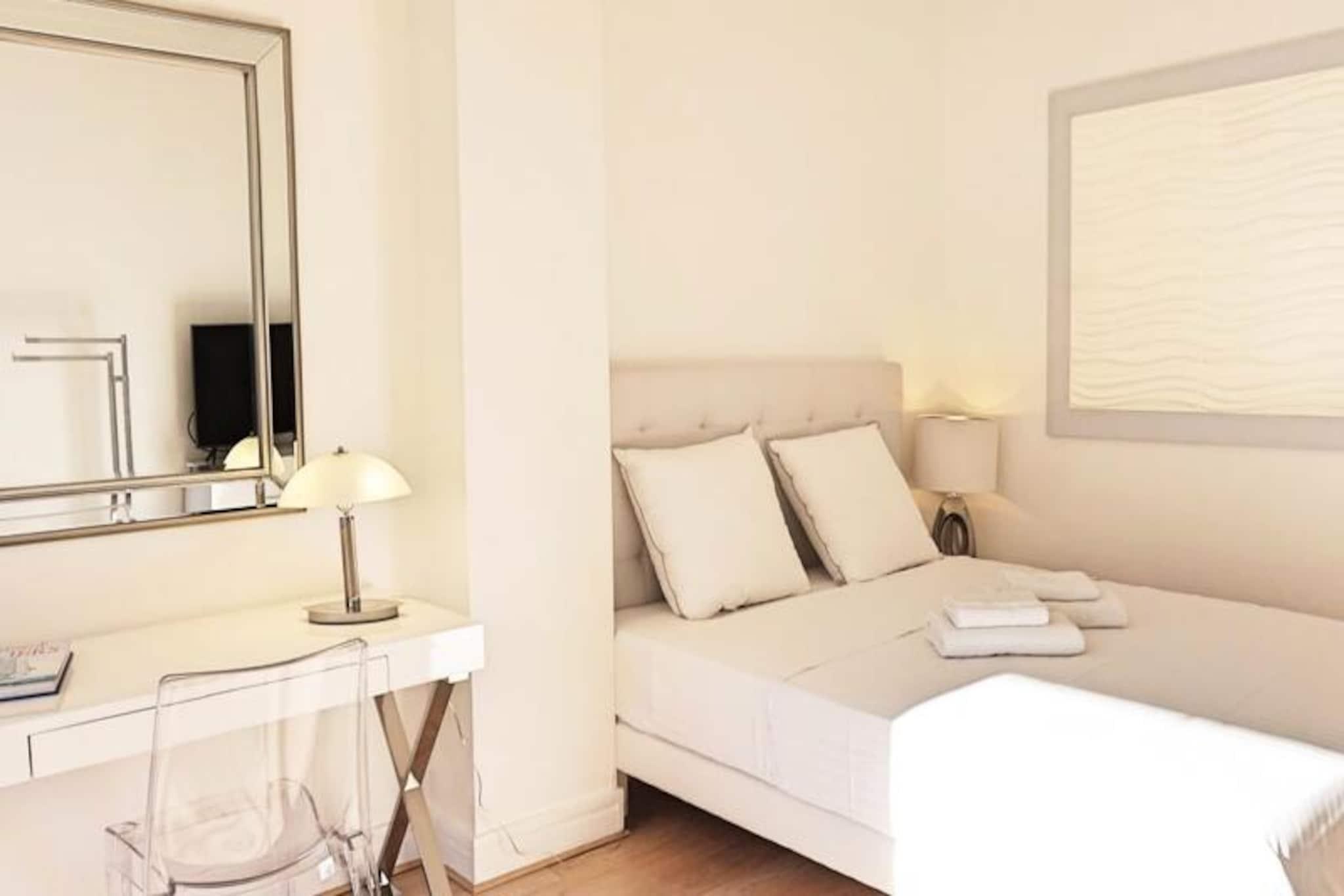 I hjertet af Cannes' gyldne plads tilbyder denne elegante lejlighed med to soveværelser på Rue du Commandant André en blanding af elegance og bekvemmelighed, perfekt til et mindeværdigt ophold på den franske riviera. Kun få skridt fra det glitrende Middelhav, den travle Croisette og den fashionable Rue d'Antibes, placerer denne ejendom dig midt blandt byens fineste attraktioner. Uanset om du er her for en glamourøs begivenhed i Palais des Festivals eller en afslappet ferie ved havet, sikrer denne beliggenhed, at du altid er i centrum af begivenhederne. Lejligheden strækker sig over hele 70 m² og er omhyggeligt designet til at rumme op til fem gæster. Stuen med komfortabel lounge, fladskærms-tv og sovesofa tilbyder et indbydende sted at slappe af. Soveværelset har en blød queensize-seng og eget tv, mens det andet soveværelse har to hyggelige enkeltsenge. Et fuldt udstyret, rummeligt køkken med spiseplads til fem inviterer dig til at nyde hjemmelavede måltider, og den reversible aircondition sikrer komfort året rundt. Bemærk venligst, at bygningen ikke har elevator, og lejligheden ligger på tredje og øverste sal og tilbyder et fredeligt tilflugtssted over de livlige gader nedenfor. Gå udenfor, og du vil være omgivet af Cannes' pulserende energi. Gå en tur langs den ikoniske Croisetten, shop i eksklusive butikker på Rue d'Antibes, eller nyd et måltid på en af ??de trendy restauranter lige uden for døren. Palais des Festivals ligger kun fem minutters gang væk, mens den nærliggende togstation gør det nemt at udforske den franske riviera. Med gratis gadeparkering og en række gennemtænkte faciliteter, herunder højhastigheds-Wi-Fi, sengelinned og concierge-service, er denne lejlighed den ideelle base for dit riviera-eventyr. Oplev Cannes' charme og sofistikering fra denne exceptionelle ejendom.