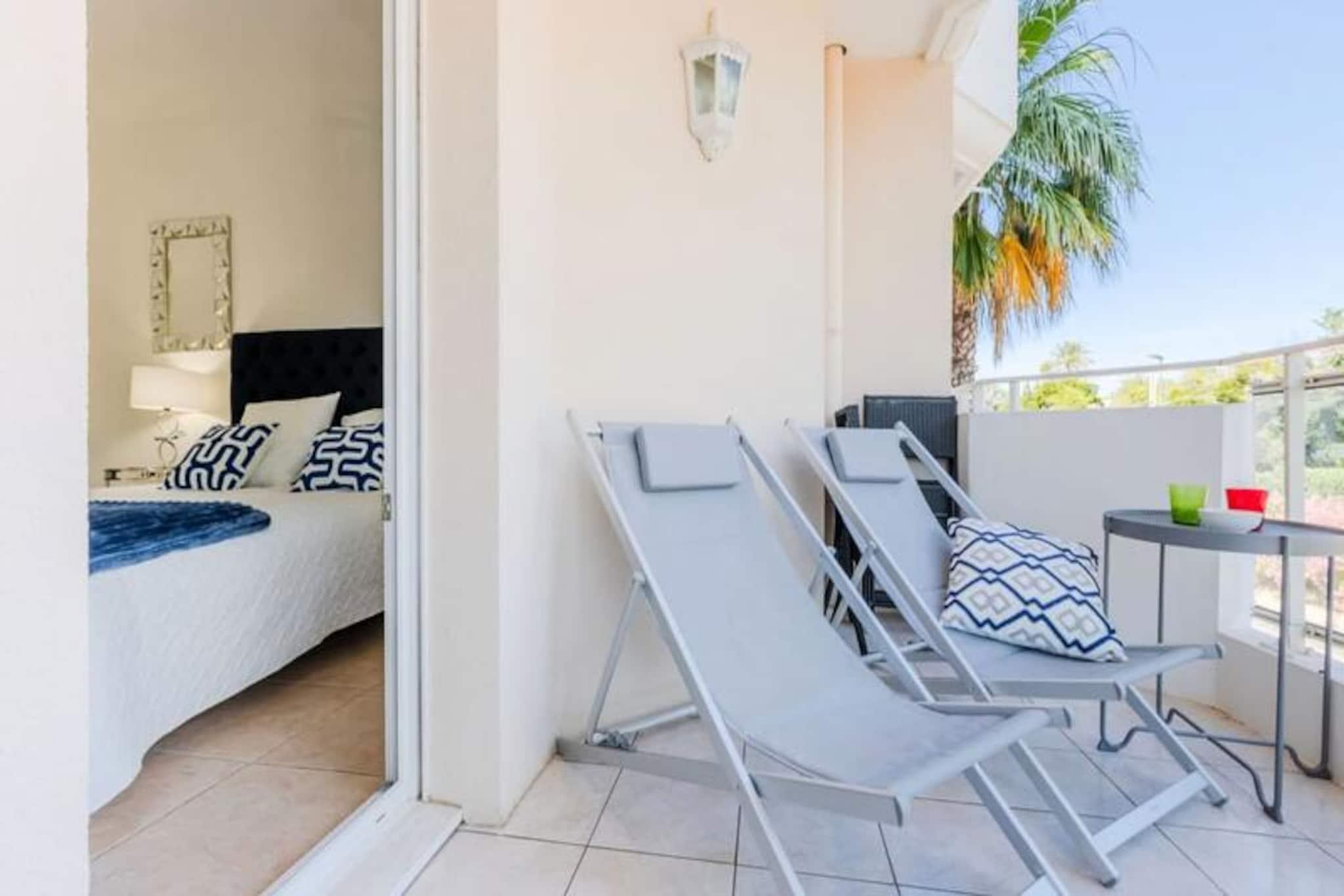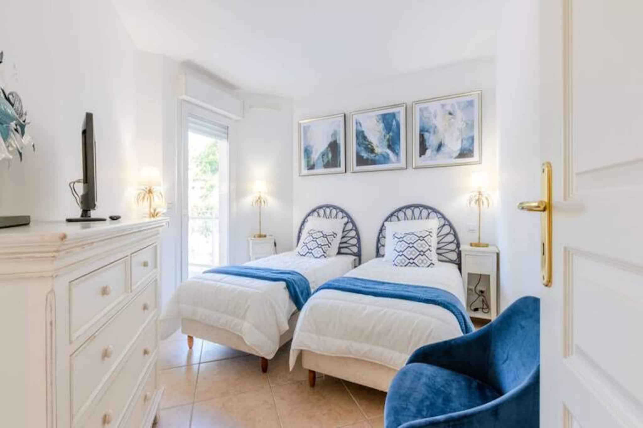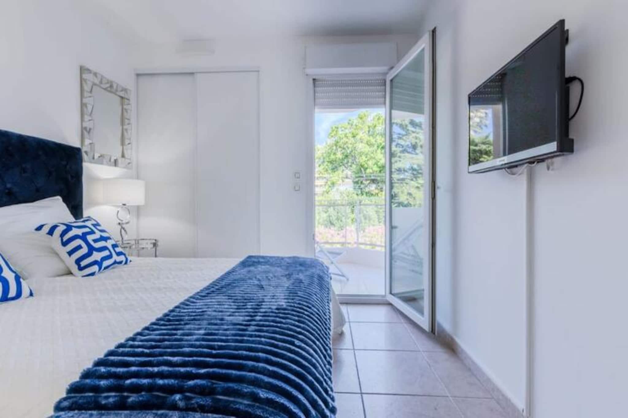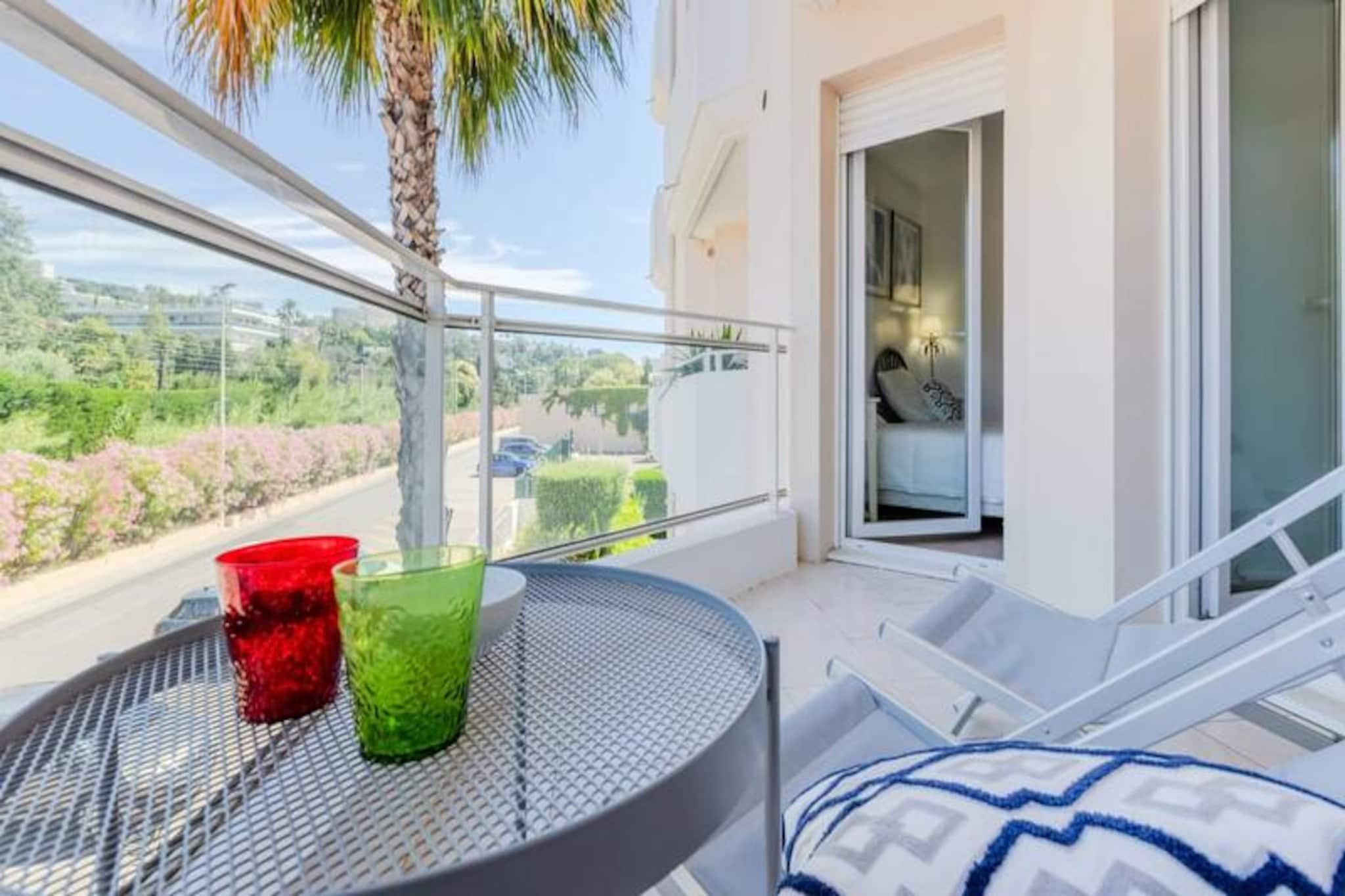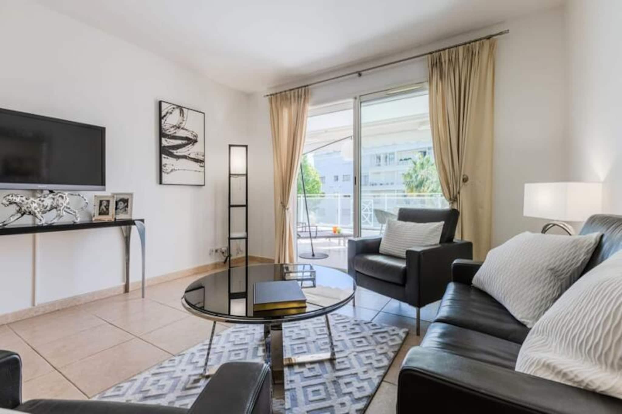 I hjertet af det prestigefyldte Palm Beach-distrikt inviterer denne elegante lejlighed på 65 m² dig til at opleve charmen ved den franske riviera. Fra det øjeblik du ankommer, sætter den rolige atmosfære i denne sikre, eksklusive bolig med en funklende swimmingpool og frodige omgivelser tonen for en virkelig afslappende ferie. Uanset om du nipper til kaffe på en af ??de to private terrasser eller nyder den delvise havudsigt, føles hvert øjeblik her som et tilflugtssted i luksus. \n\nTræd indenfor for at opdage et smukt renoveret rum designet til både komfort og stil. Den lyse stue åbner ud til en møbleret terrasse, perfekt til at slappe af i solen eller nyde spisning under åben himmel. Det åbne køkken, komplet med en morgenmadsbar og spiseplads til fire, sikrer, at hvert måltid føles specielt. De to soveværelser tilbyder en rolig tilflugtssted: det ene med to enkeltsenge, rigelig opbevaringsplads og adgang til terrassen, og det andet med en queensize-seng, et stort klædeskab og egen terrasseadgang. Et moderne badeværelse og separat toilet fuldender lejligheden, mens faciliteter som aircondition, Wi-Fi og smart-tv'er på alle værelser sikrer et problemfrit ophold.\n\nBare en kort gåtur væk finder du den gyldne sandstrand på Mouré Rouge-stranden og den pulserende atmosfære på La Croisette. Udforsk den charmerende landsby Palm Beach for friske croissanter, lokale delikatesser og butikker, eller begiv dig videre til det ikoniske Palais des Festivals og den travle Rue d'Antibes. Med privat parkering og concierge-service til din rådighed er denne lejlighed den perfekte base for at udforske Cannes og den franske riviera. Uanset om du er her for strandene, glamouren eller roen, lover denne ejendom en uforglemmelig ferie.